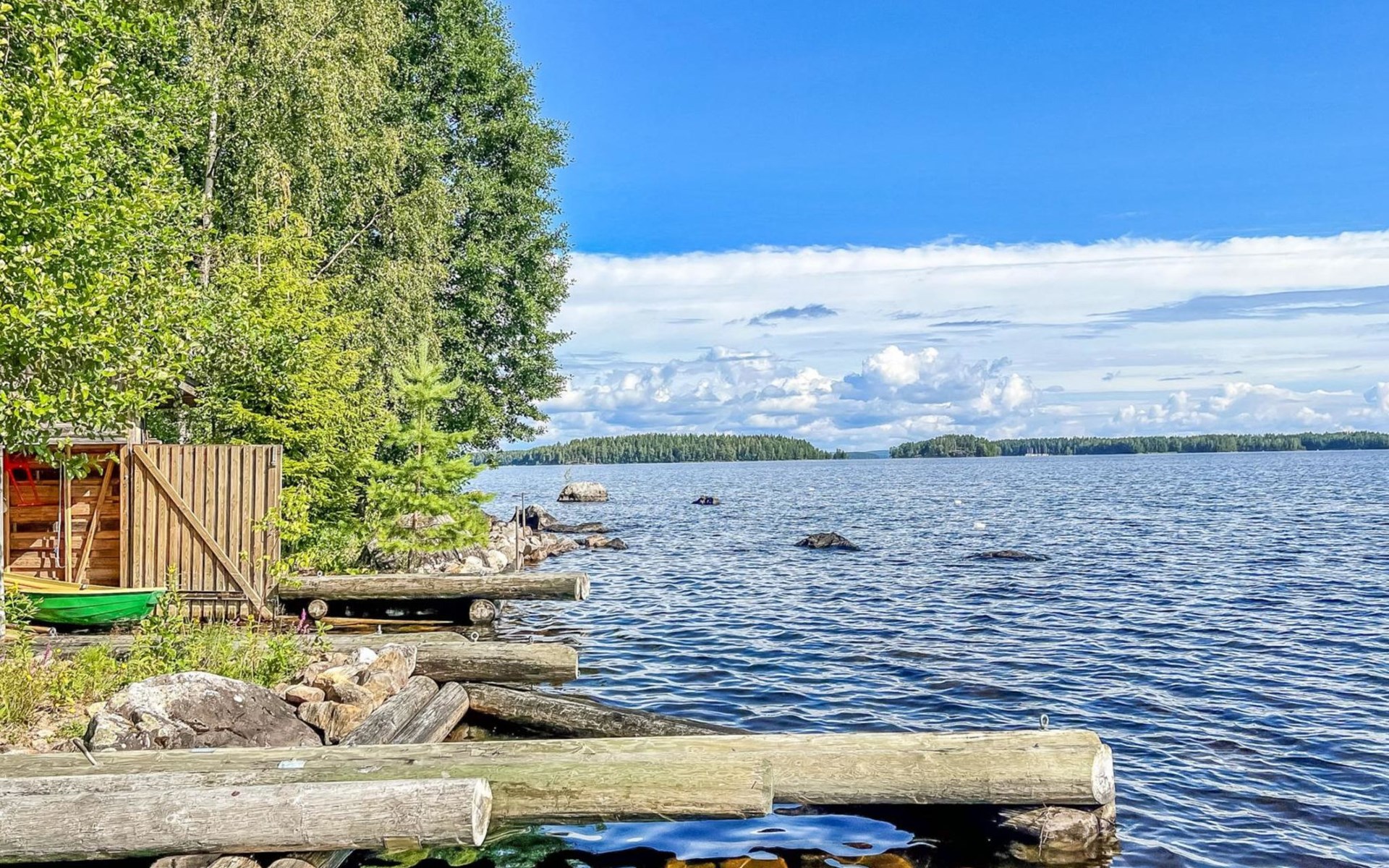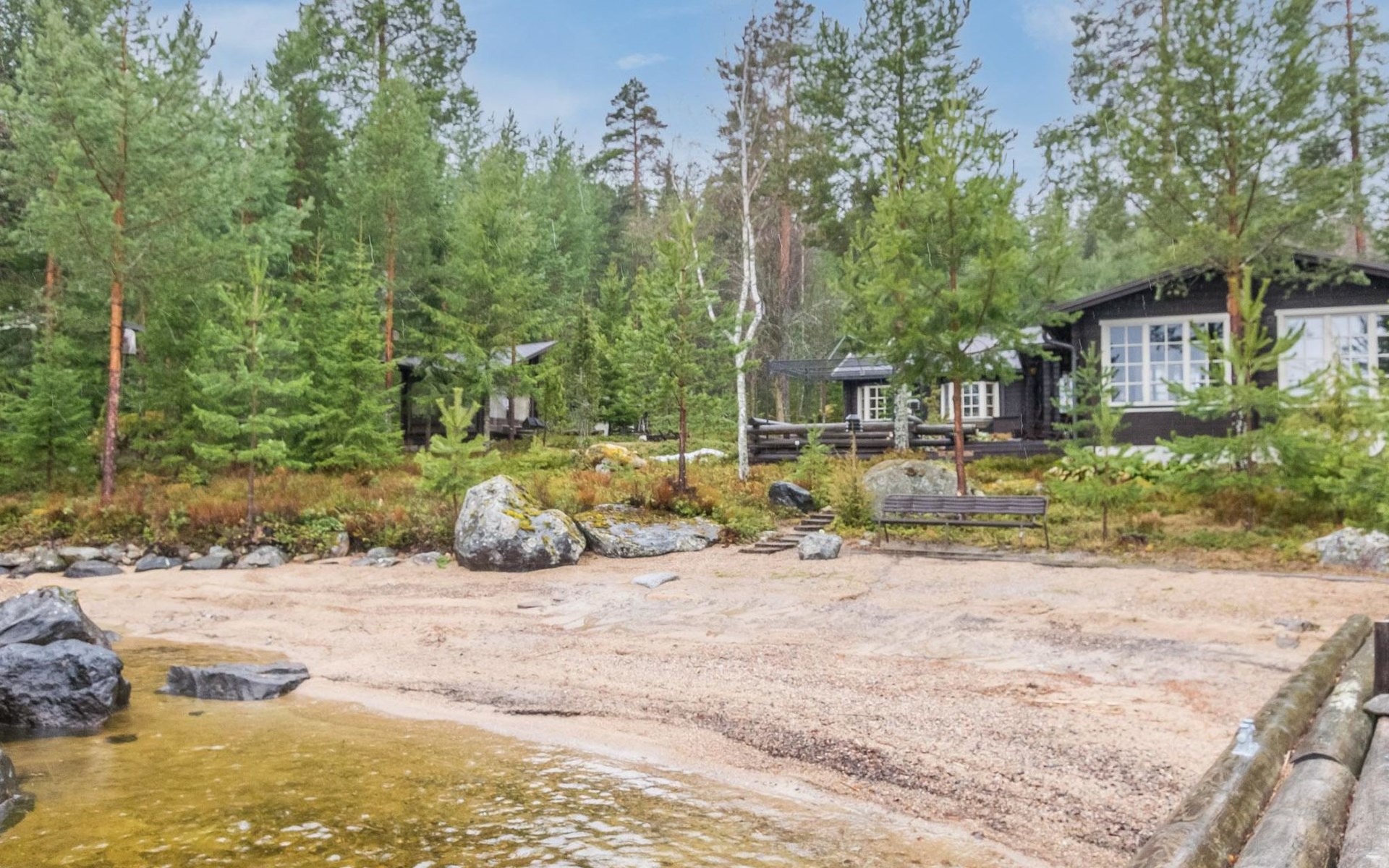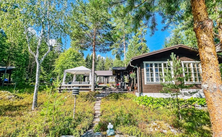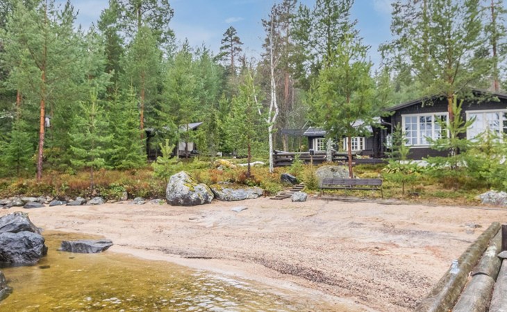 The cottage is 175 km from Helsinki, 72 km from Lahti and 20 km from the Padasjoki church village to the cottage yard. The lake is about 25 m from the cottage. The beach is shallow with natural sand. There is a sturdy pier on the shore, suitable for a large boat. The water depth at the end of the pier is about 1-1.5 m.