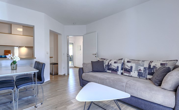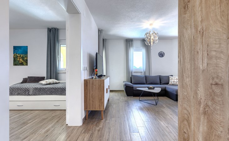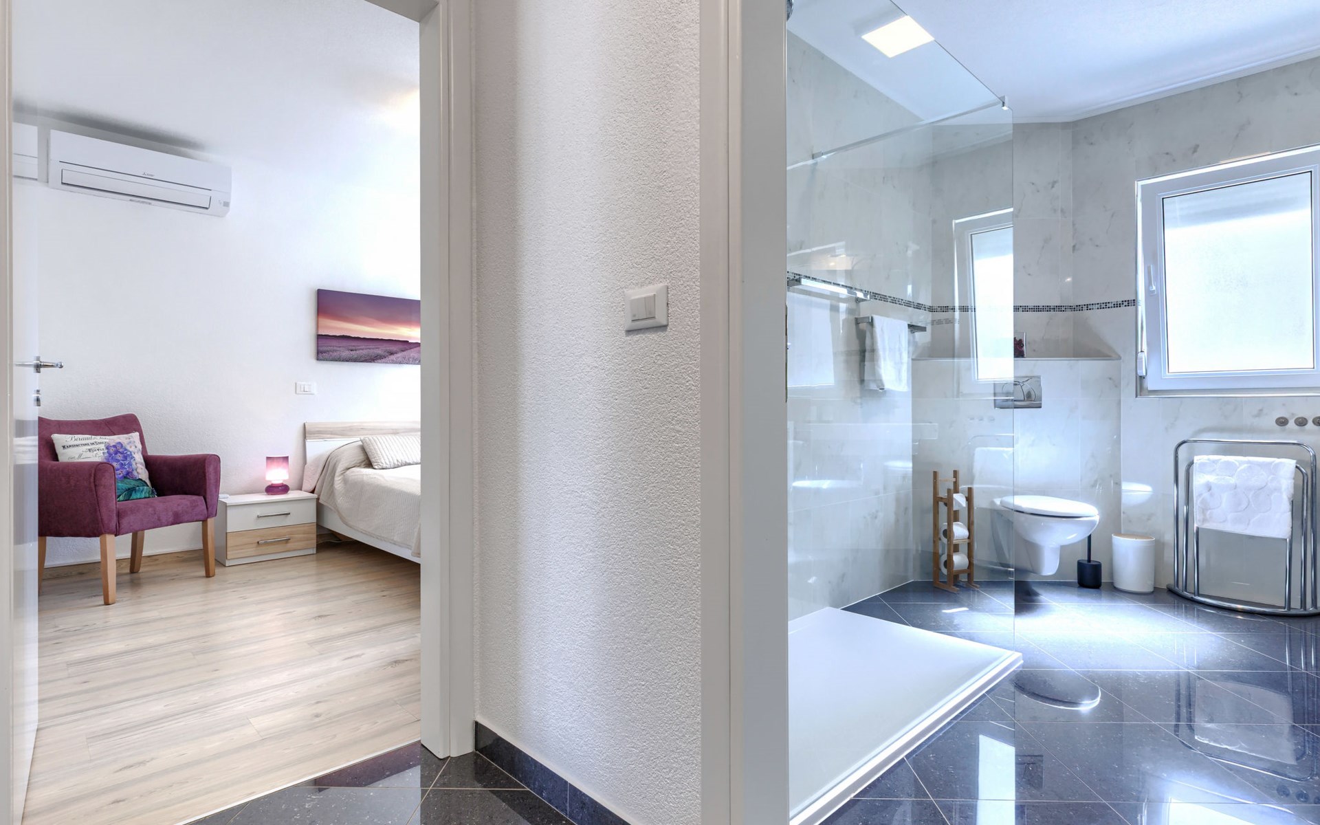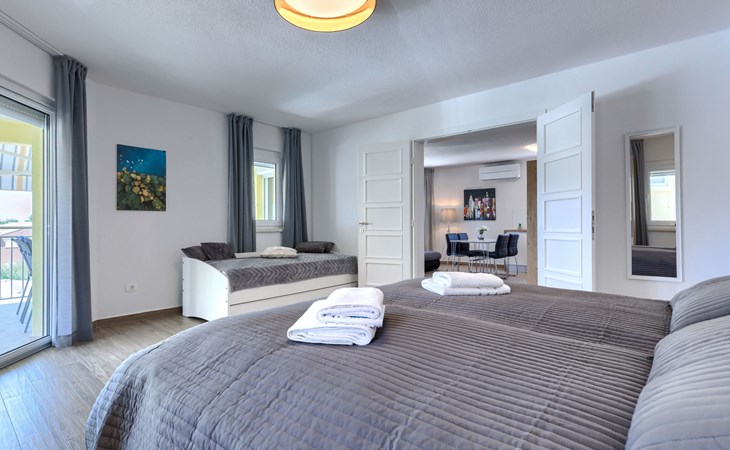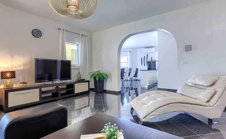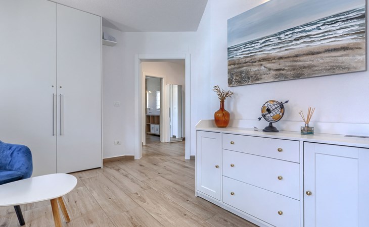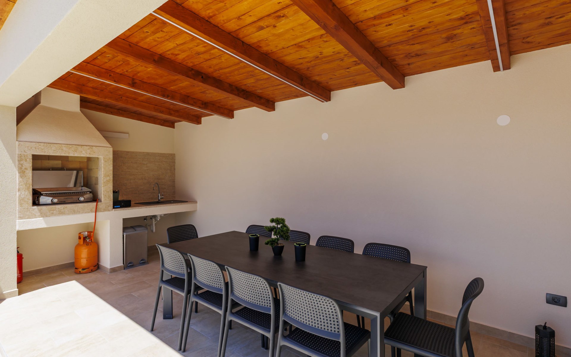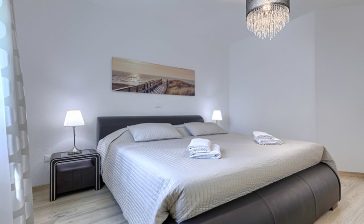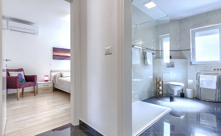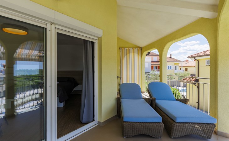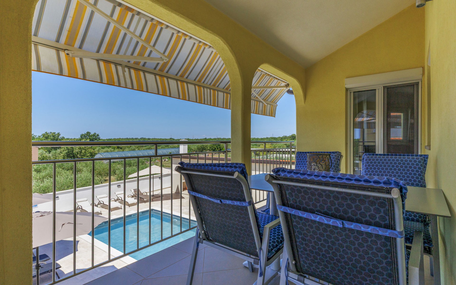 Beautiful single-family house "Villa Lucia", 2 storeys. In the hamlet Srbarica 3 km from the centre of Umag, in a sunny position, 2.5 km from the sea, 2.5 km from the beach, in a cul-de-sac. Private: property 850 m2 (fenced), garden with lawn, swimming pool angular (9 x 4 m, depth 145 cm, seasonal availability: 01.May. - 15.Oct.) with internal staircase. Outdoor shower, barbecue. In the house: internet access, washing machine. Parking (for 3 cars) at the house on the premises. Shop 1 km, supermarket 2 km, restaurant 500 m, bus stop 4.4 km, pebble beach 2.5 km, rocky beach 2.5 km, public bathing area 2.5 km. Golf course (18 hole) 10 km, tennis 3 km, walking paths from the house 500 m, cycle lane 550 m. Nearby attractions: aquapark 18 km, cave Mramornica 15 km. Please note: suitable for families. The owner does not accept any youth groups. Airfield 60 km from the property. The photograph shows a typical example. The house consists of 3 apartments rented as one unit: one apartment on the ground floor and two apartments on the first floor. The allowed number of people in and around the property / pool, grill and yard is 10 persons, outside visits prohibited.