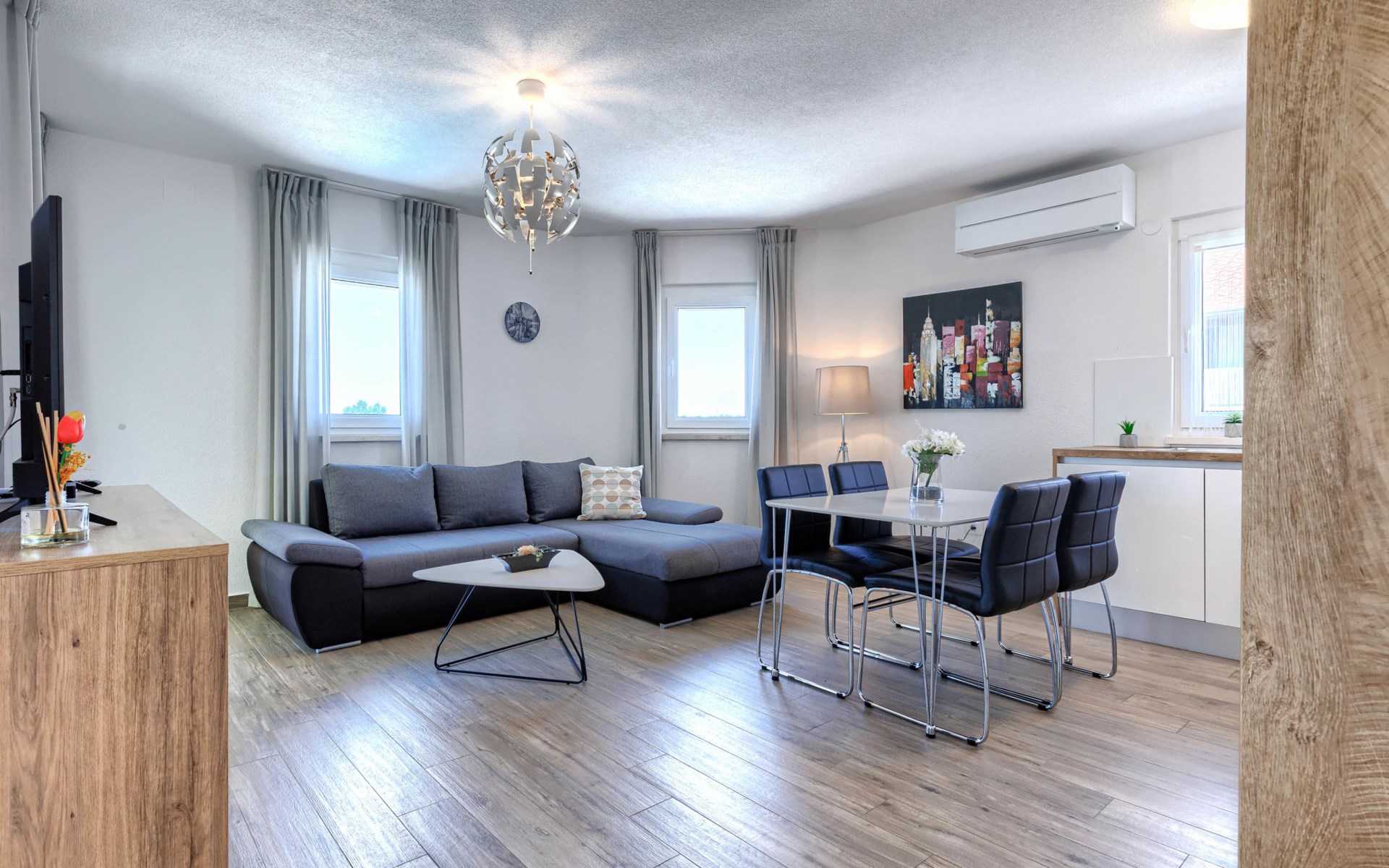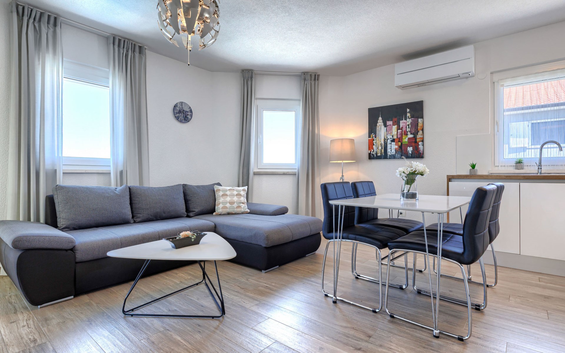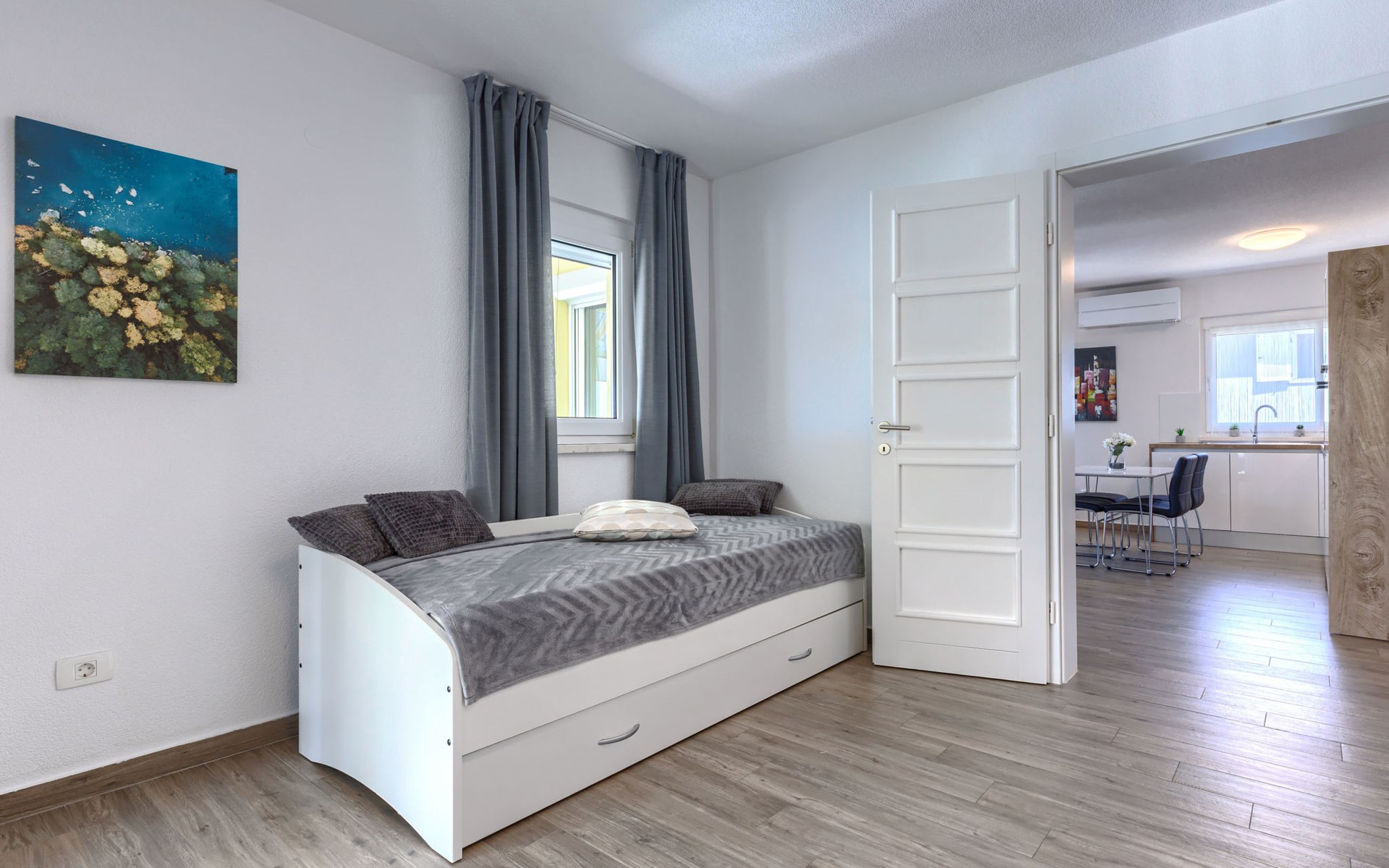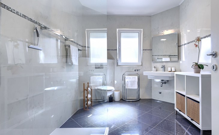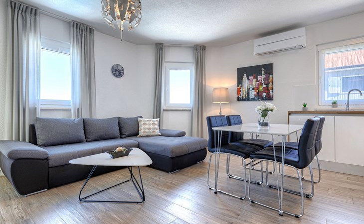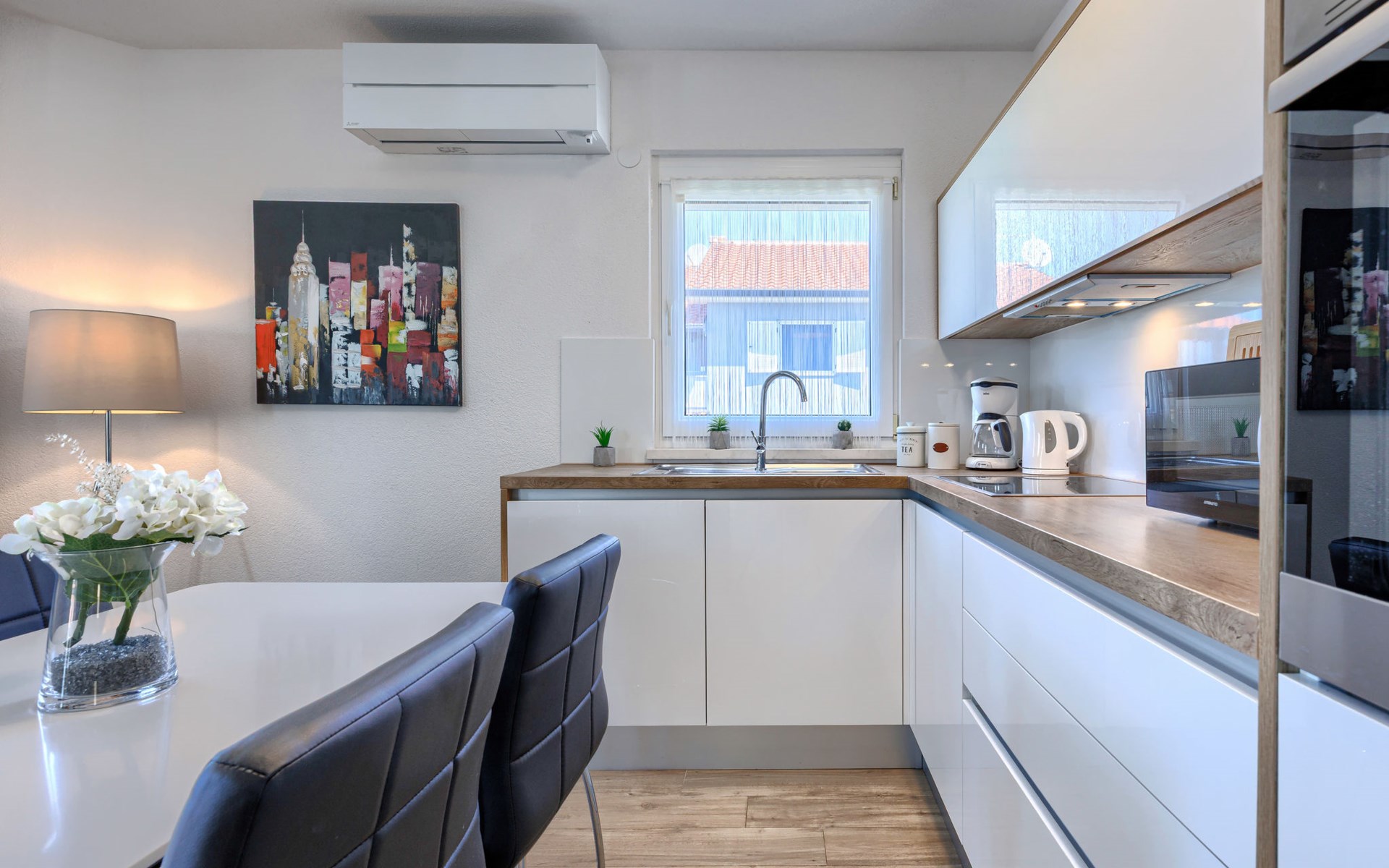 Beautiful single-family house "Villa Lucia", 2 storeys. In the hamlet Srbarica 3 km from the centre of Umag, in a sunny position, 2.5 km from the sea, 2.5 km from the beach, in a cul-de-sac. Private: property 850 m2 (fenced), garden with lawn, swimming pool angular (9 x 4 m, depth 145 cm, seasonal availability: 01.May. - 15.Oct.) with internal staircase. Outdoor shower, barbecue. In the house: internet access, washing machine. Parking (for 3 cars) at the house on the premises. Shop 1 km, supermarket 2 km, restaurant 500 m, bus stop 4.4 km, pebble beach 2.5 km, rocky beach 2.5 km, public bathing area 2.5 km. Golf course (18 hole) 10 km, tennis 3 km, walking paths from the house 500 m, cycle lane 550 m. Nearby attractions: aquapark 18 km, cave Mramornica 15 km. Please note: suitable for families. The owner does not accept any youth groups. Airfield 60 km from the property. The photograph shows a typical example. The house consists of 3 apartments rented as one unit: one apartment on the ground floor and two apartments on the first floor. The allowed number of people in and around the property / pool, grill and yard is 10 persons, outside visits prohibited.