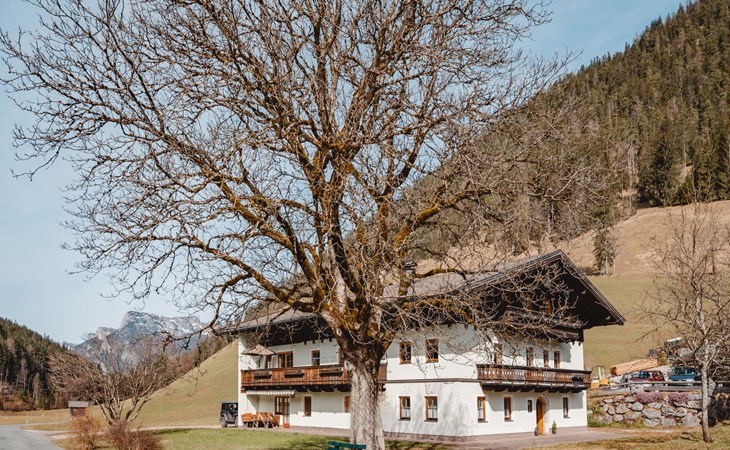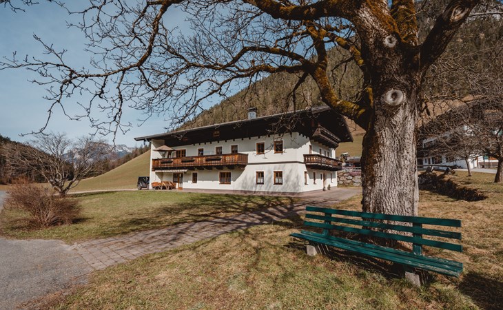 St. Martin bei Lofer: Fantastic, quiet location! Beautiful high valley hiking trails start from the house. Private spring 300 m away. The host owns an alpine hut in Leogang, ideal for hikes. Dogs are not allowed in the accommodations. Cosy, comfortable farmhouse "Weissbachergut", 2 storeys, surrounded by trees and meadows. In the resort 2.5 km from the centre of St. Martin bei Lofer, in a quiet, sunny position, 4.5 km from the skiing area. For shared use: garden. In the house: central heating system. In Winter: please take snow chains. Parking at the house. Shop 2.5 km, restaurant 2.5 km, bakery 2.5 km, café 2.5 km, bus stop 2 km. Golf course (18 hole) 41 km, gondola lift 4.5 km, skisport facilities 4.5 km, ski rental 4.5 km, ski school 4.5 km. Nearby attractions: Kneippanlage St. Martin 3 km, Festung Kniepass 12 km, Triassic Park 15 km. Well-known ski regions can easily be reached: Almbahn I 4 km, Steinplatte-Waidring 12 km, Leogang-Saalbach-Hintergelmm 25 km. Please note: the owner lives in the same residence.