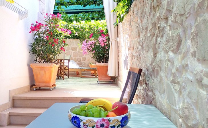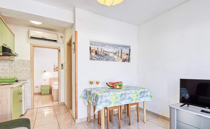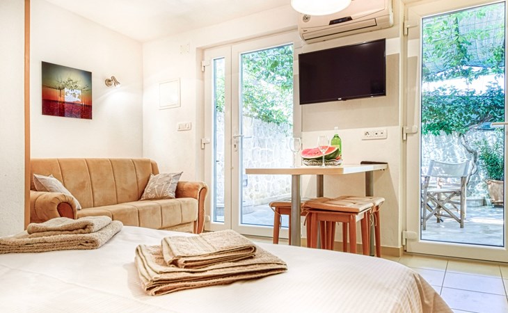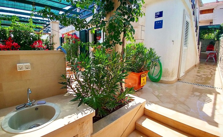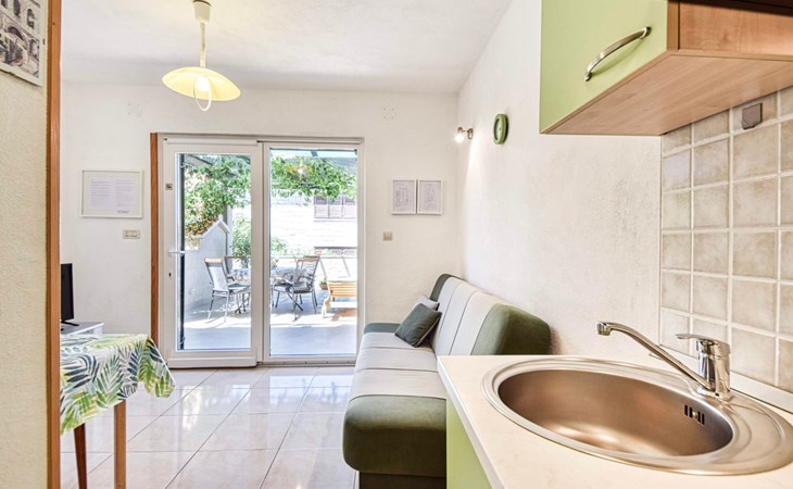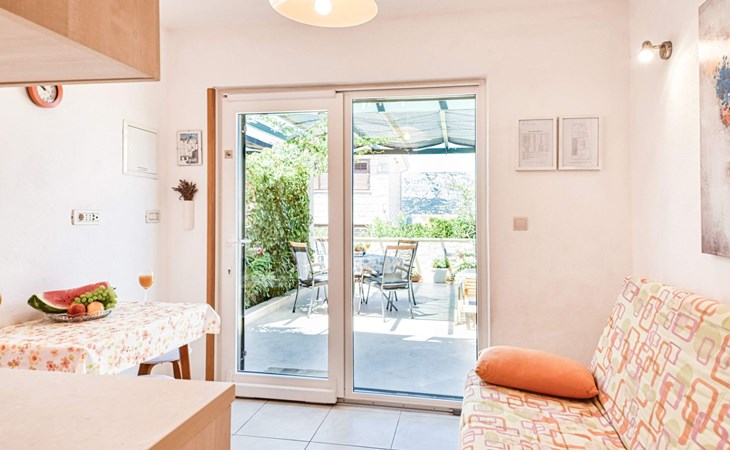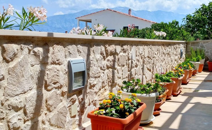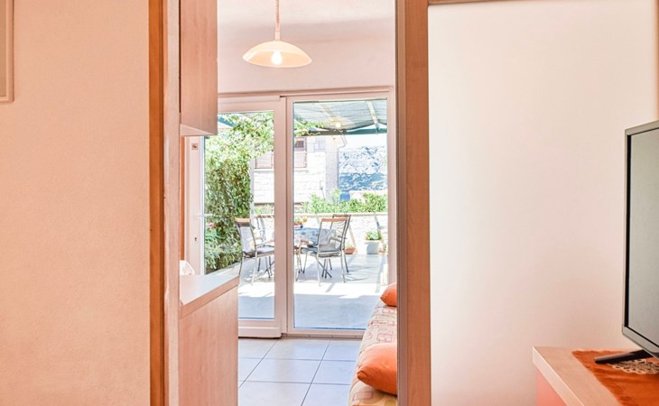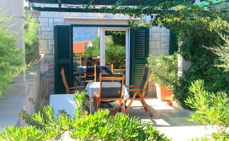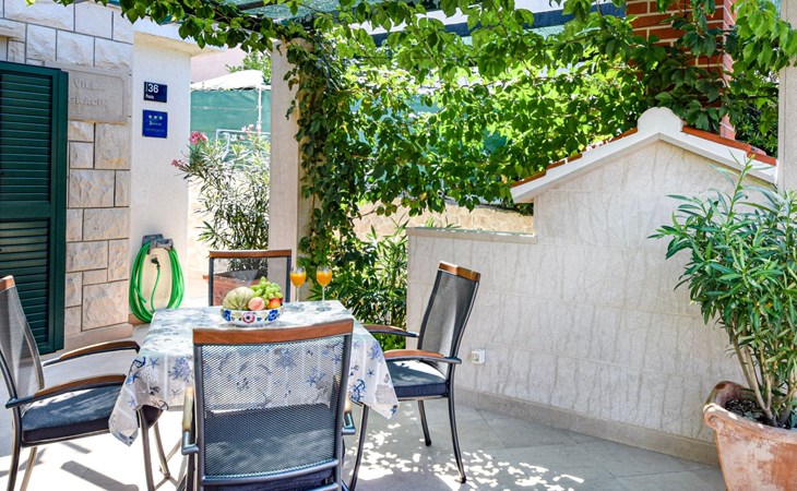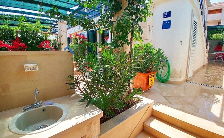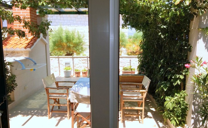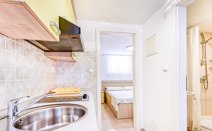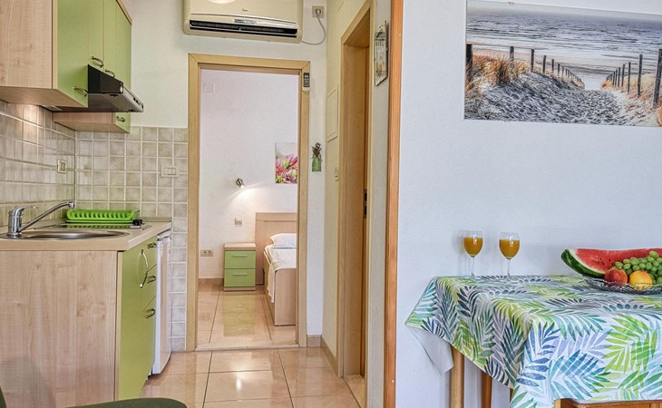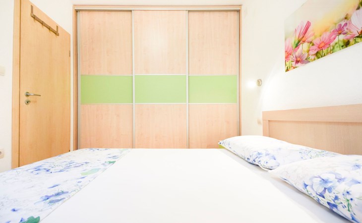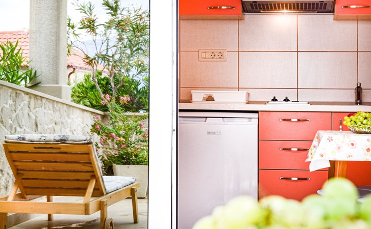 Each apartment has its own parking space in front of the house, separate entrance, shaded terrace with furniture, a bedroom with a double-bed, a kitchen with dining area and living room in one larger room, as well as bathroom with shower.