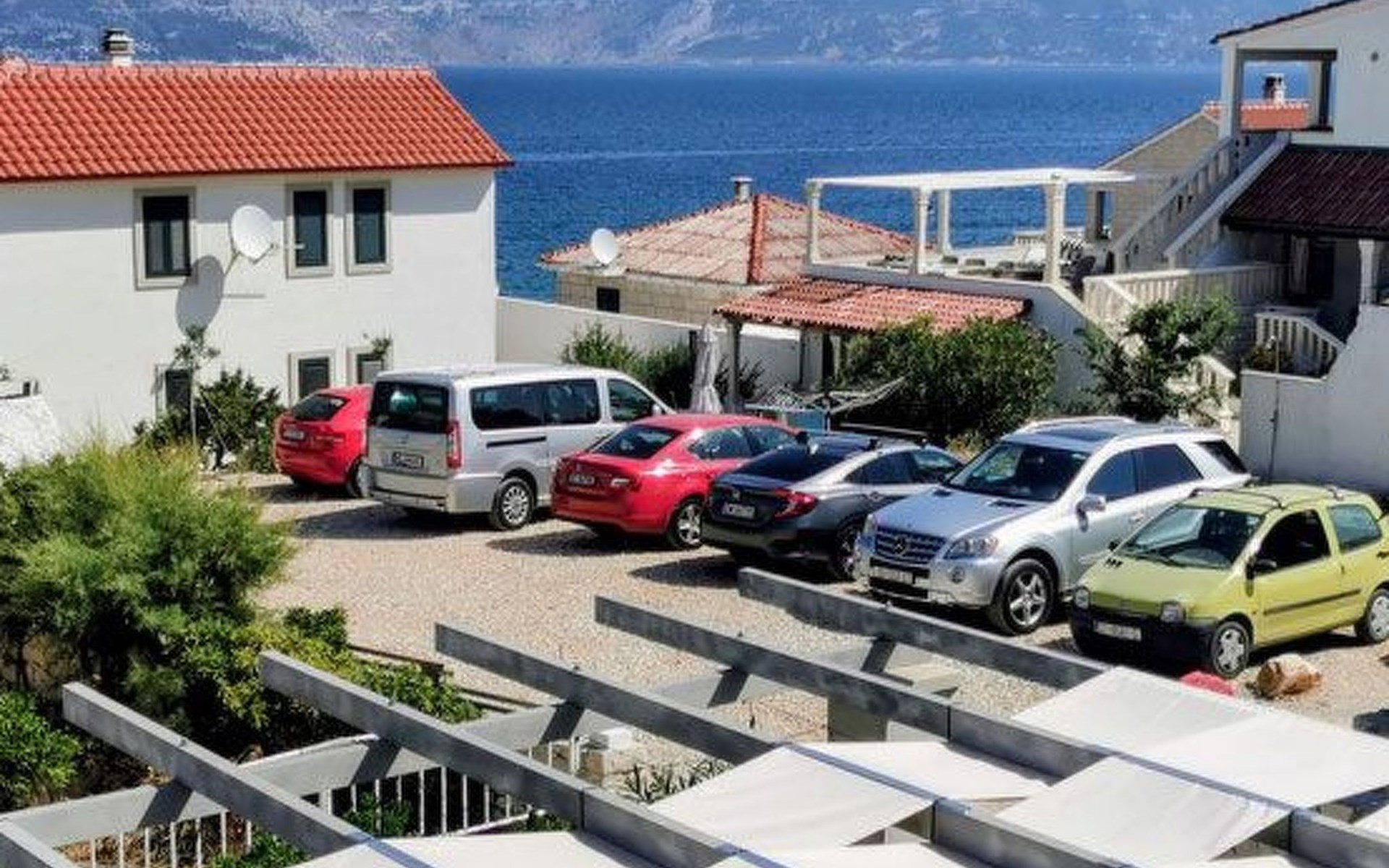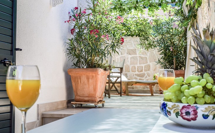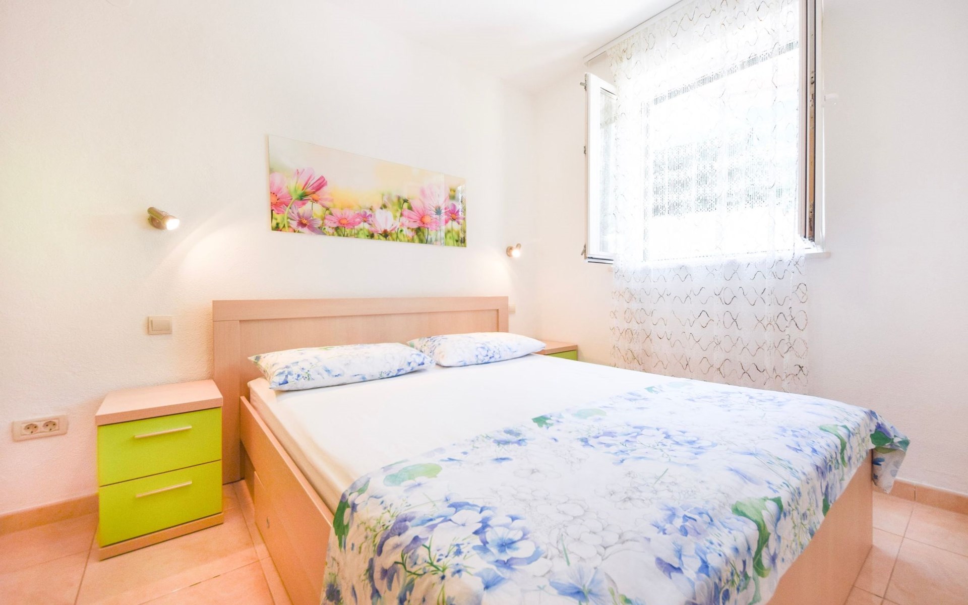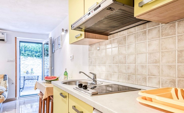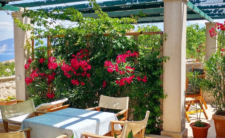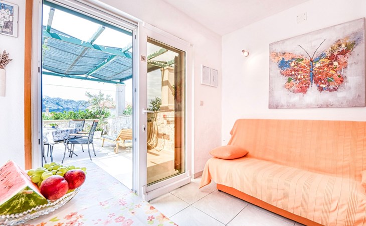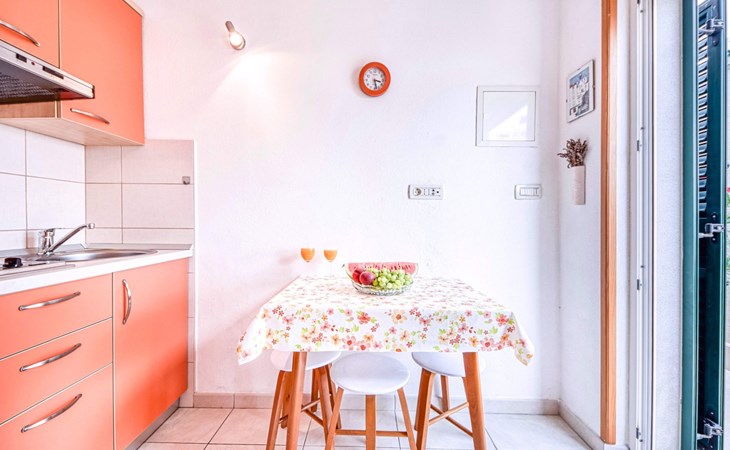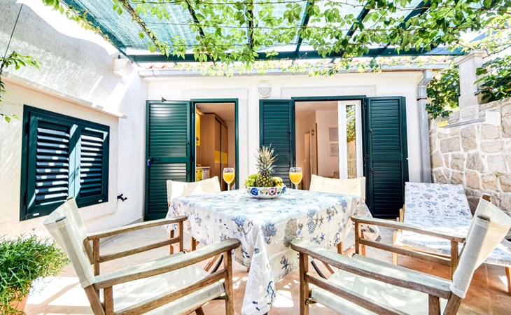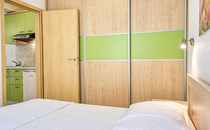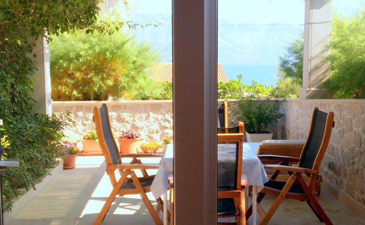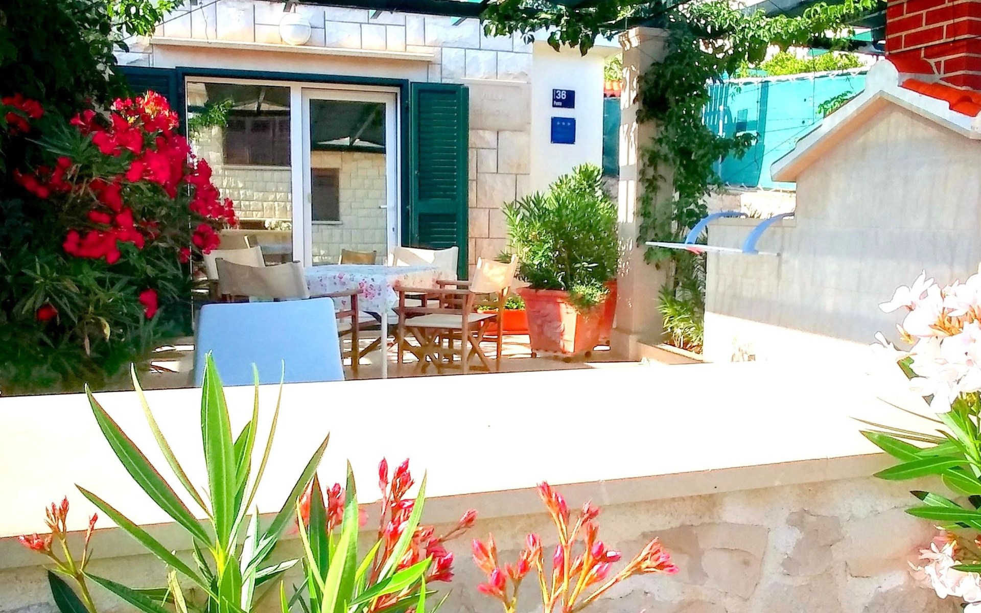 Each apartment has its own parking space in front of the house, separate entrance, shaded terrace with furniture, a bedroom with a double-bed, a kitchen with dining area and living room in one larger room, as well as bathroom with shower.