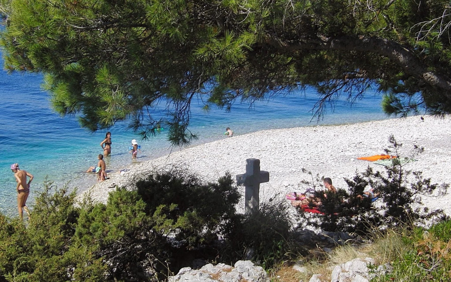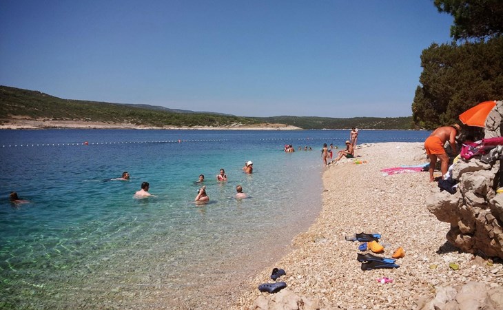 - shingle beach: 100 m