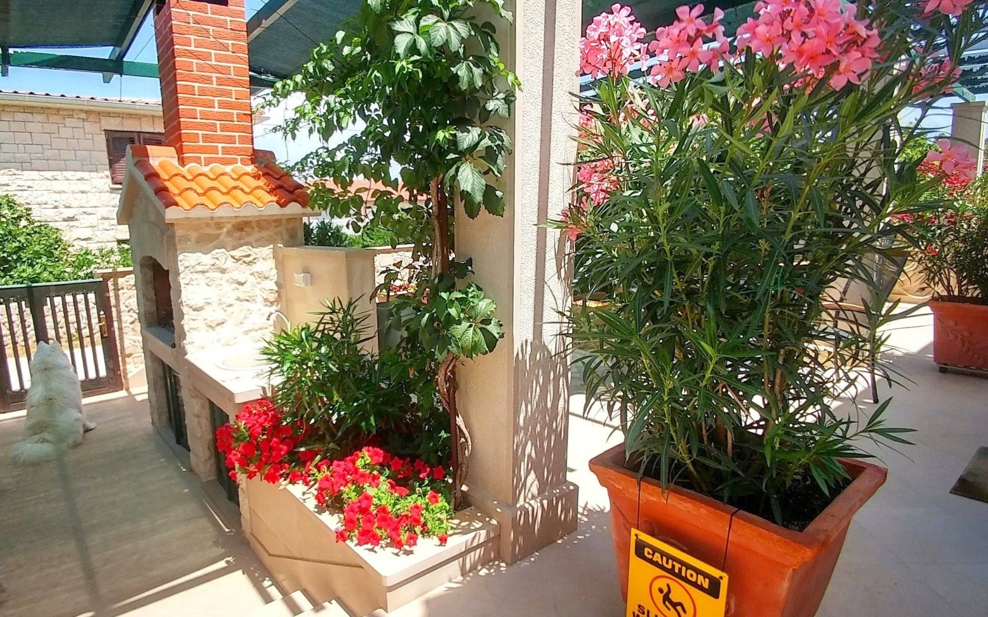 - dog-proof by a fence (completely fenced in)