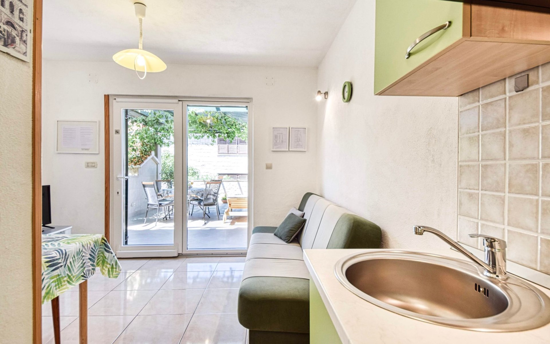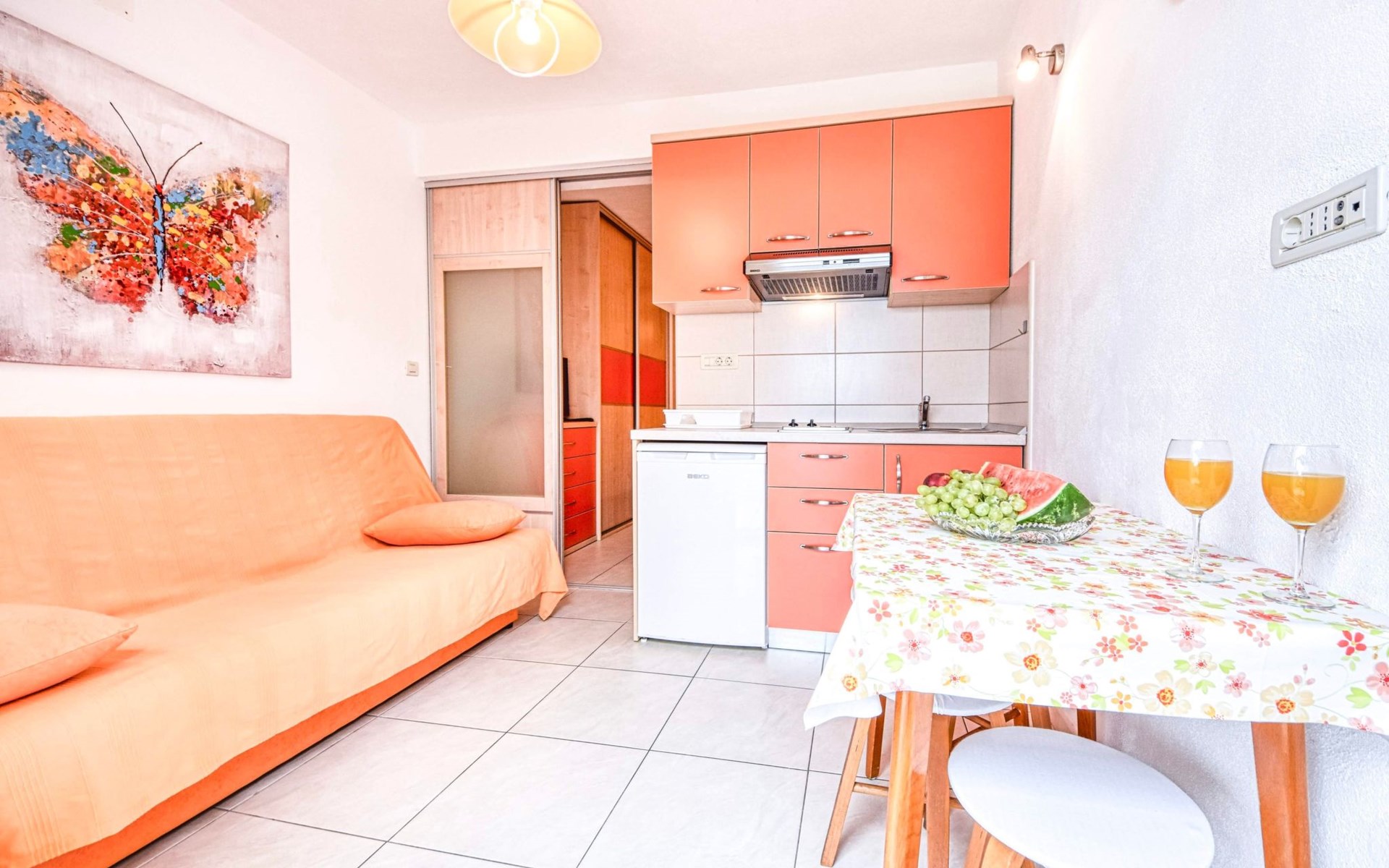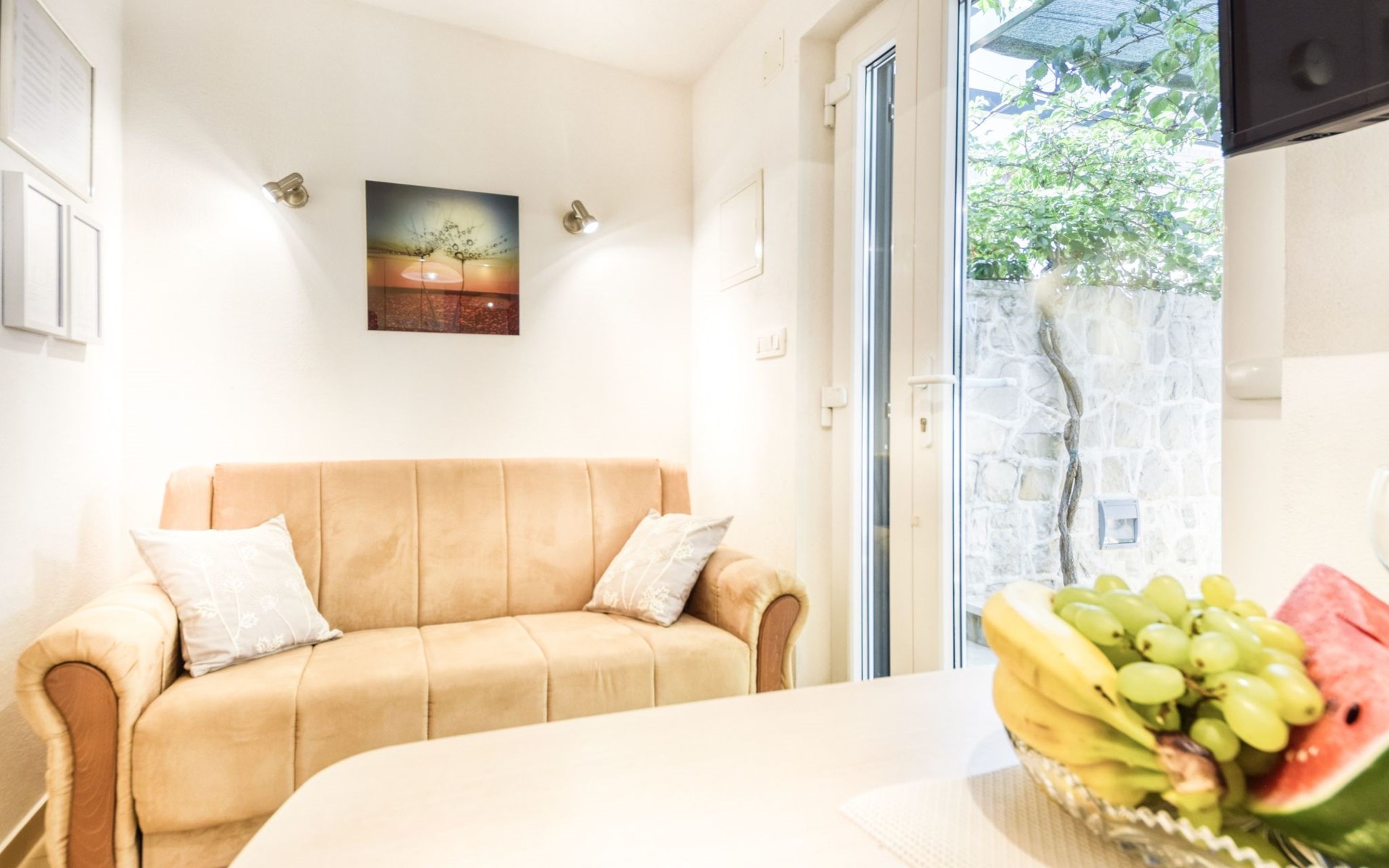 The third person or two children, sleep on the couch in the living room. The couch in each of the apartments can be easily converted into spacious bed approx. 1.90 m x 1.20 m.