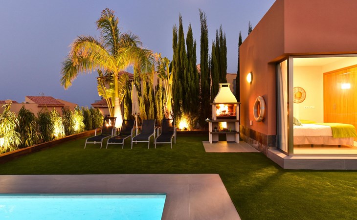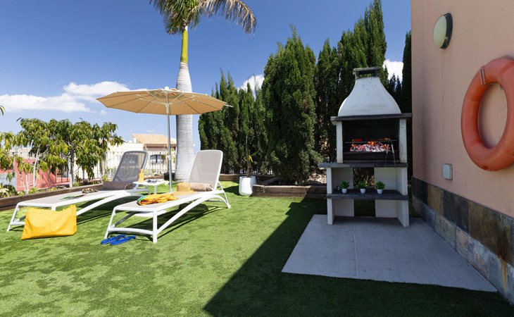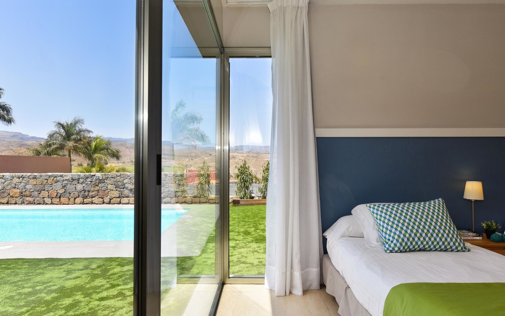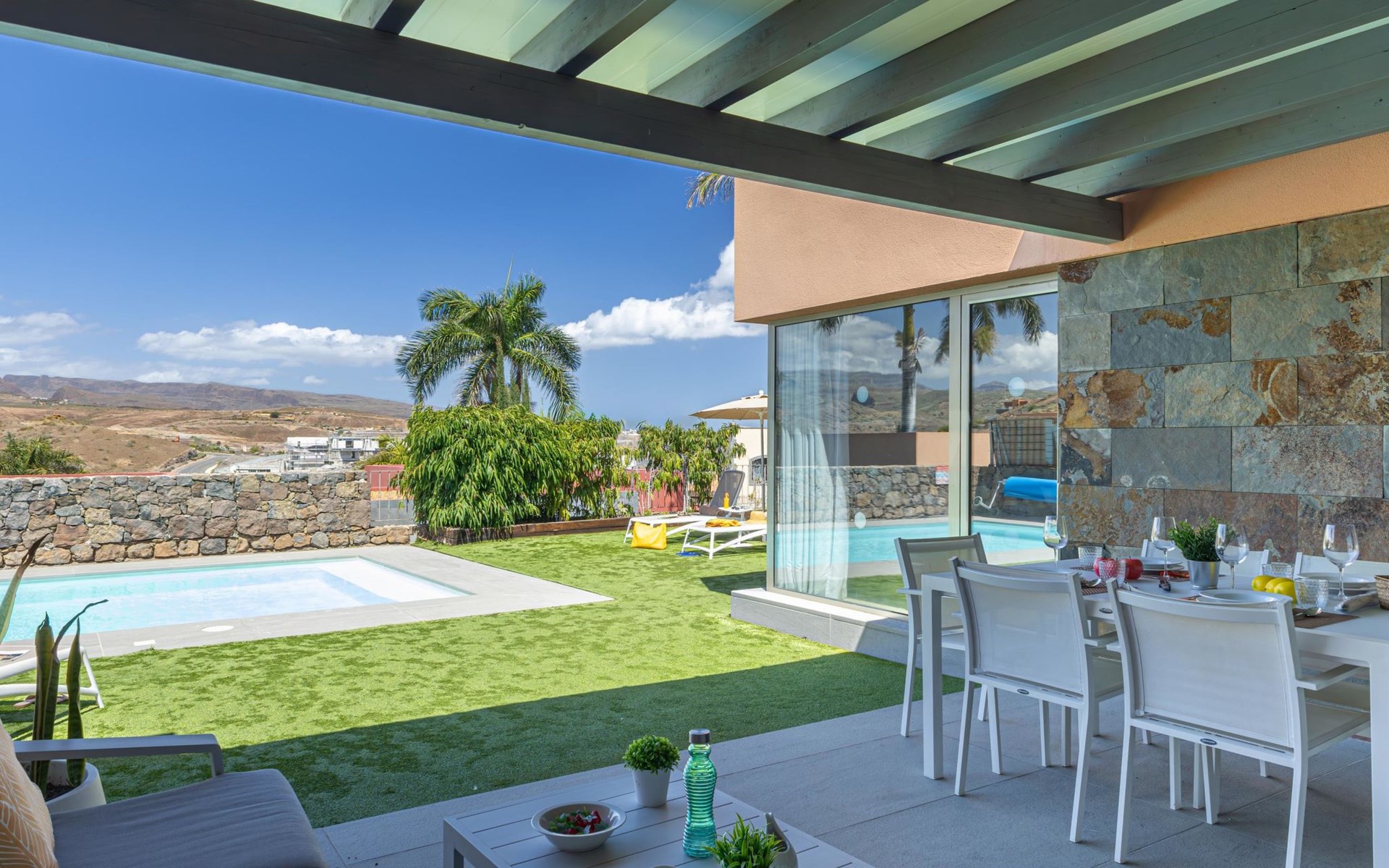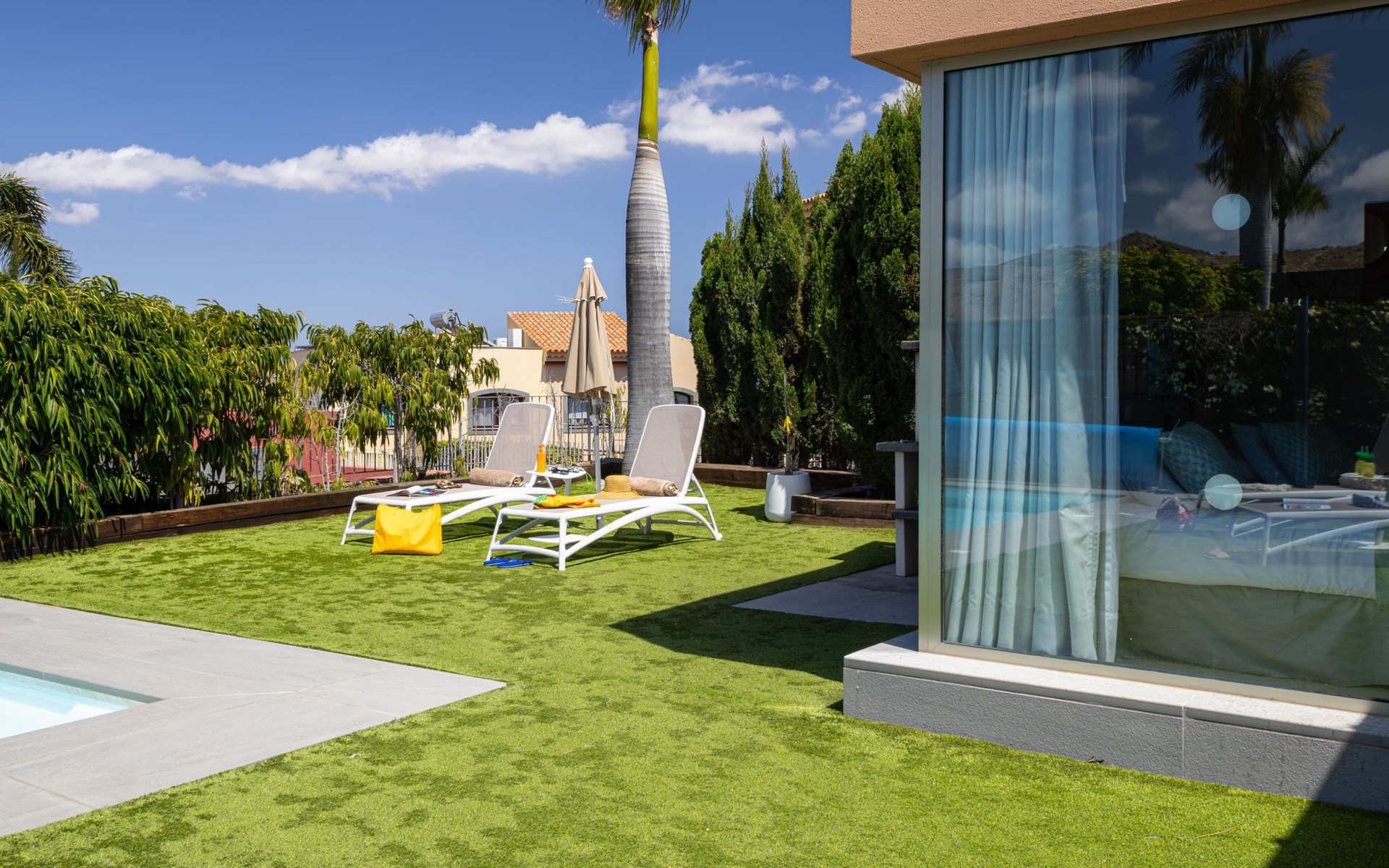Modern, comfortable villa "Par4 Villa 8". In the centre of Salobre Golf Resort Maspalomas 5 km Meloneras 7 km, in a quiet, sunny, elevated position in the residential district. Private: property 380 m2 (fenced), garden 80 m2, lawn for sunbathing, swimming pool (8 x 4 m, depth 140 cm, seasonal availability: 01.Jan. - 31.Dec.). Garden furniture, barbecue. In the house: air conditioning, laundry, washing machine. Shop 4 km, shopping centre 1 km, restaurant 200 m, bus stop "Las Crucitas" 19 km, sandy beach "3000". Please note: car recommended. Baby equipment on request. The owner does not accept any youth groups. Airfield 25 km from the property.