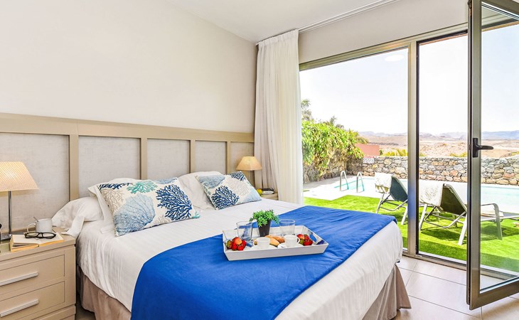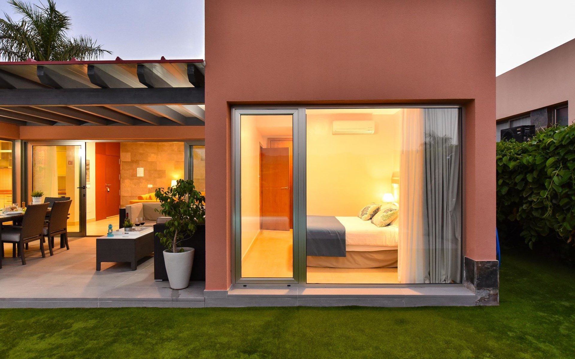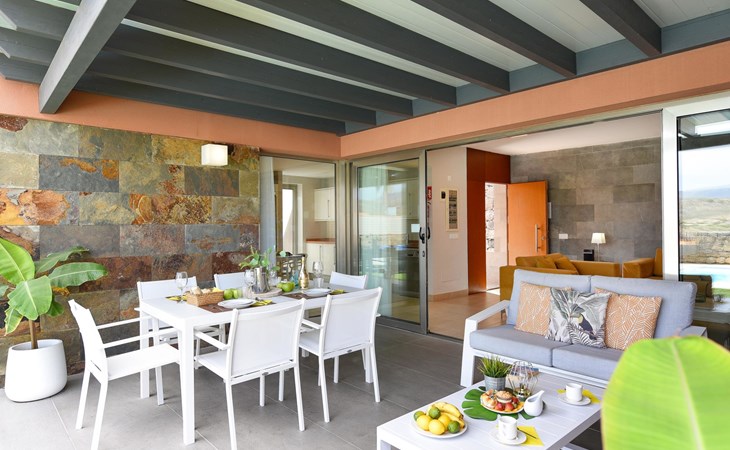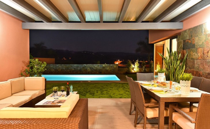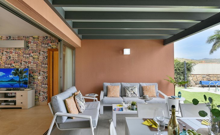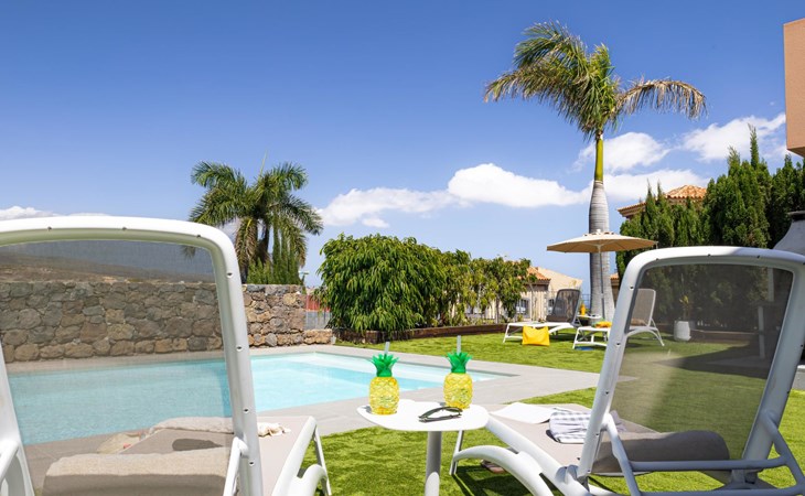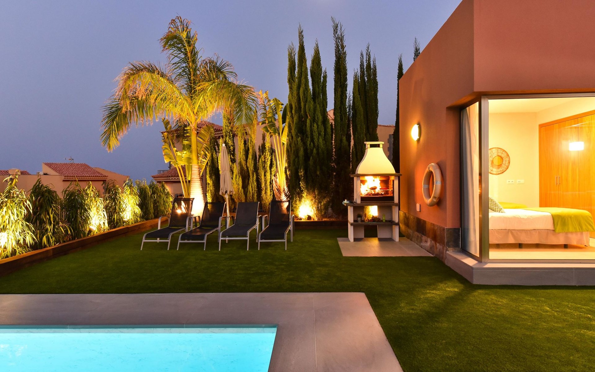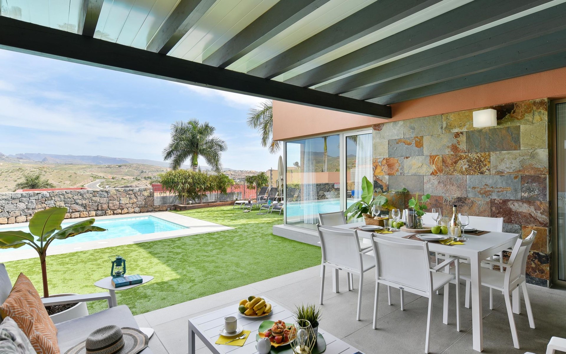 Modern, comfortable villa "Par4 Villa 8". In the centre of Salobre Golf Resort Maspalomas 5 km Meloneras 7 km, in a quiet, sunny, elevated position in the residential district. Private: property 380 m2 (fenced), garden 80 m2, lawn for sunbathing, swimming pool (8 x 4 m, depth 140 cm, seasonal availability: 01.Jan. - 31.Dec.). Garden furniture, barbecue. In the house: air conditioning, laundry, washing machine. Shop 4 km, shopping centre 1 km, restaurant 200 m, bus stop "Las Crucitas" 19 km, sandy beach "3000". Please note: car recommended. Baby equipment on request. The owner does not accept any youth groups. Airfield 25 km from the property.