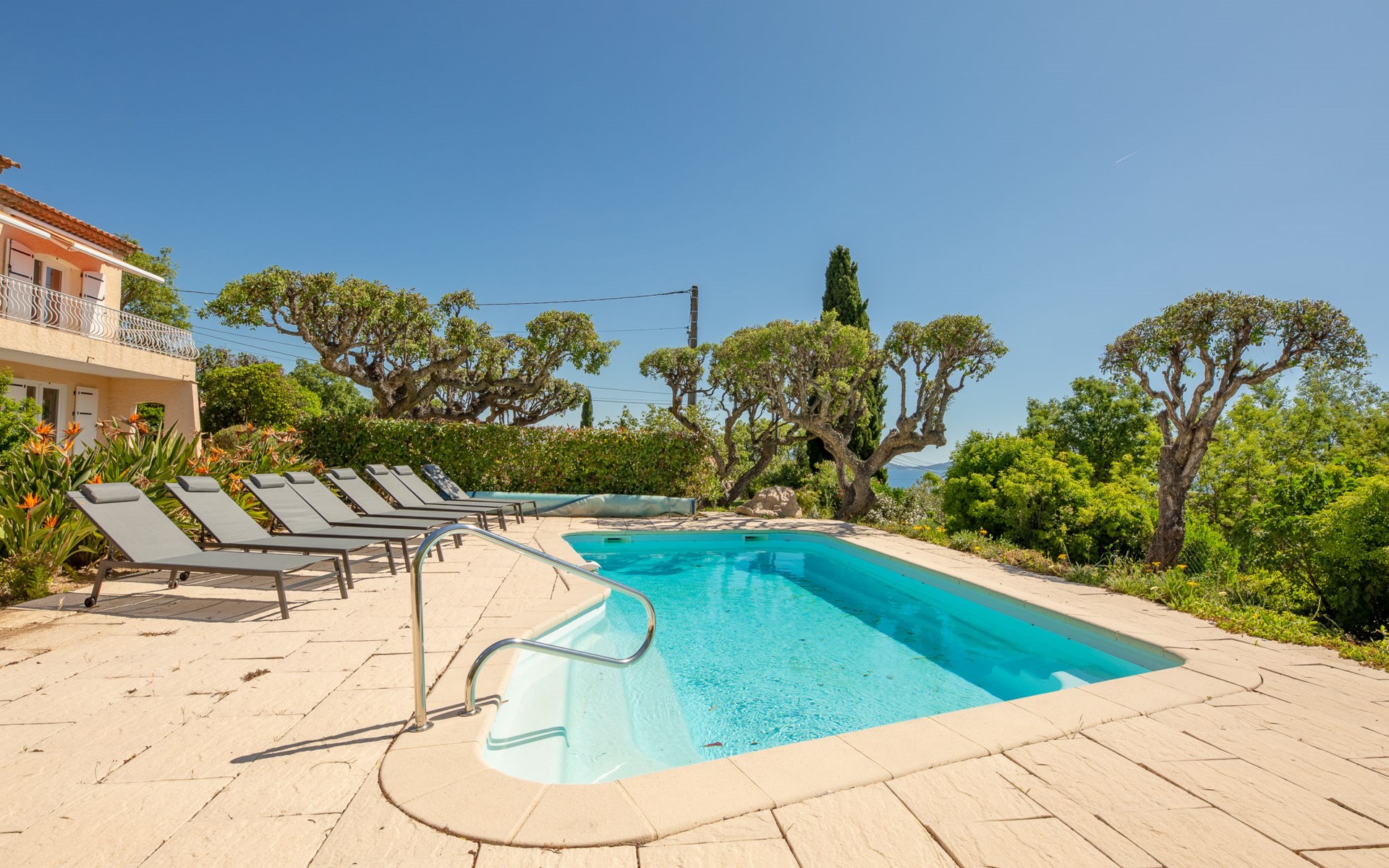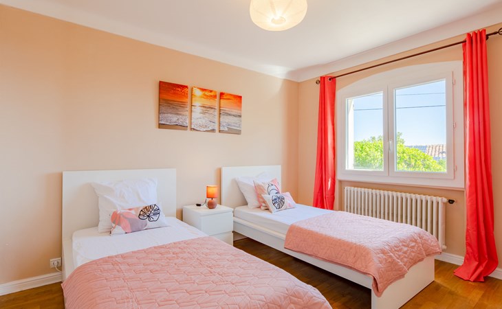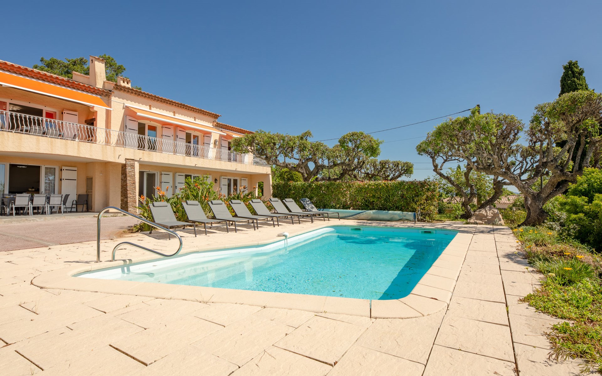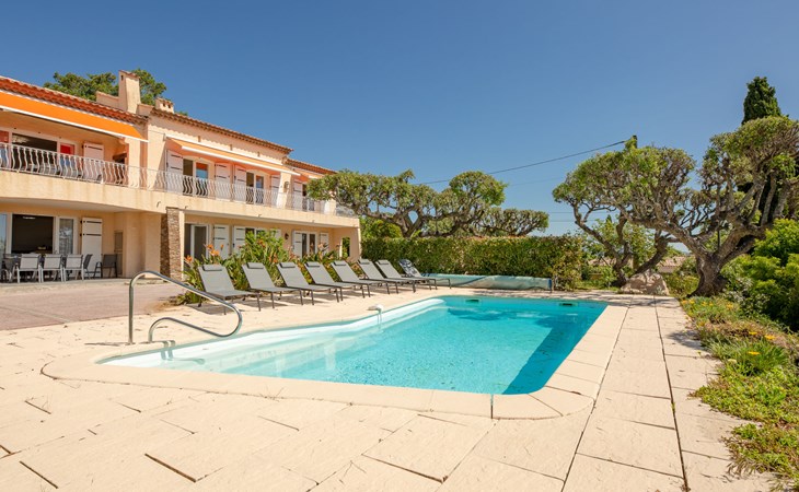 Very beautiful 2-family house "Le Forum de la Mer", 2 storeys. 2 km from the centre of Saint Aygulf, in a quiet position, 1.9 km from the sea, 3.7 km from the beach, south facing position. For shared use: natural state property 1'100 m2 (fenced), swimming pool (4 x 8 m, depth 95 - 160 cm, seasonal availability: 01.Apr. - 31.Oct.) with internal staircase and alarm system. Unconventional pool shape. Parking at the house at 2 m. Shop 1.7 km, shopping centre 7 km, 30 minute walk to the centre, bus stop "Saint-Aygulf La Poste" 1.2 km, railway station "Fréjus" 8 km, sandy beach "Saint Aygulf" 1.7 km pebble beach "Calanque de Saint Aygulf" 1.9 km, park "Areca" 2 km, diving center 8 km, thermal baths "Thalasso de Port Fréjus" 8 km. Sports harbour 2.5 km, golf course (18 hole) 10 km, sailing school 8 km, riding stable 3 km, sports centre 2 km. Nearby attractions: Aqualand, Luna Park 7 km, Fréjus 8 km, Saint Rapahael 10 km, St Tropez 30 km, Cannes 47 km, Nice 73 km. Well-known ski regions can easily be reached: Auron, Isola 2000 150 km. Well-known lakes can easily be reached: Lac de St Cassien 45 km, Lac du Du Verdon 90 km. Hiking paths: Estérel 18 km, Sentier du Littoral 2 km. Please note: car recommended. The keys‘ handover takes place by the agency Interhome in Saint Aygulf.