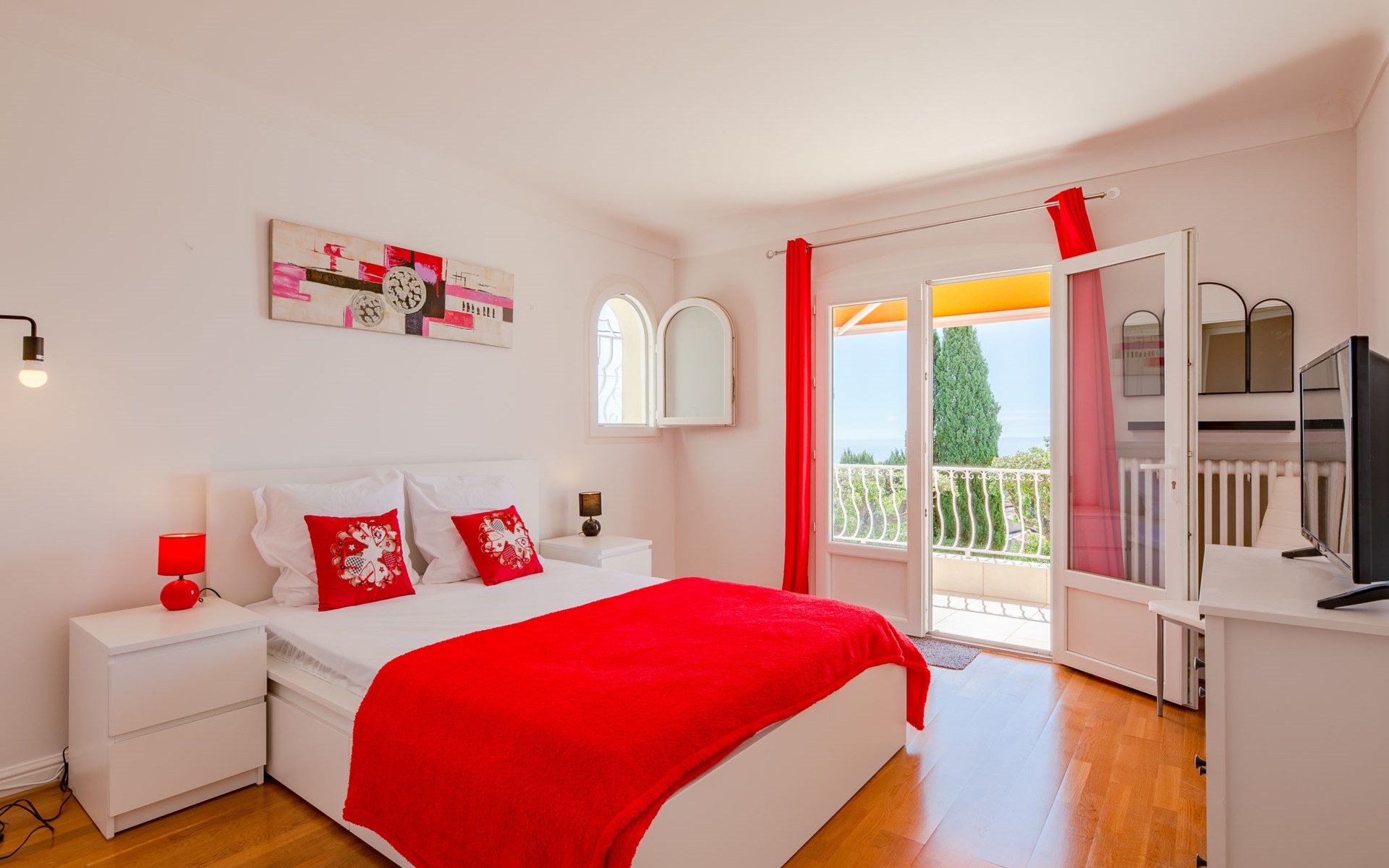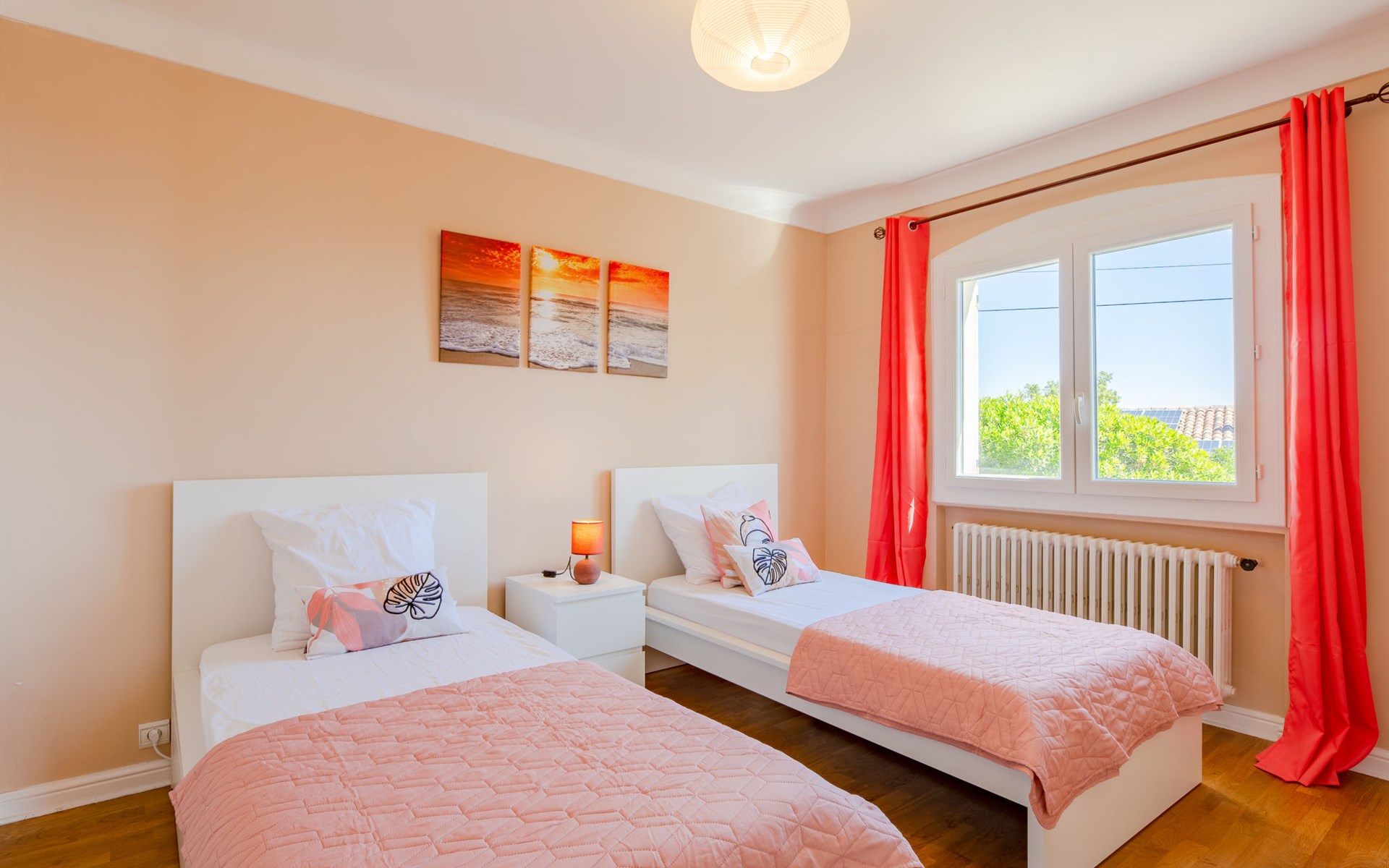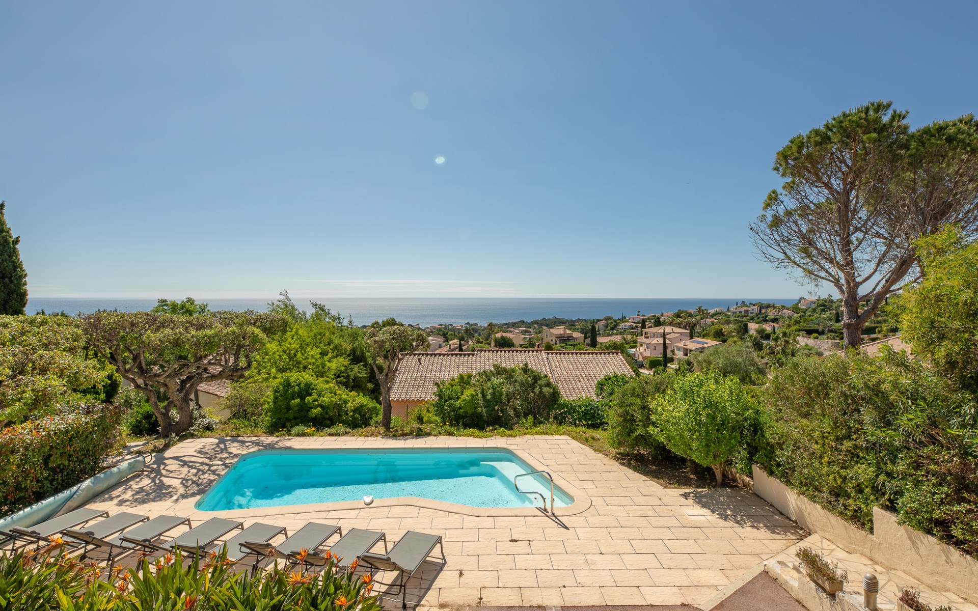 Very beautiful 2-family house "Le Forum de la Mer", 2 storeys. 2 km from the centre of Saint Aygulf, in a quiet position, 1.9 km from the sea, 3.7 km from the beach, south facing position. For shared use: natural state property 1'100 m2 (fenced), swimming pool (4 x 8 m, depth 95 - 160 cm, seasonal availability: 01.Apr. - 31.Oct.) with internal staircase and alarm system. Unconventional pool shape. Parking at the house at 2 m. Shop 1.7 km, shopping centre 7 km, 30 minute walk to the centre, bus stop "Saint-Aygulf La Poste" 1.2 km, railway station "Fréjus" 8 km, sandy beach "Saint Aygulf" 1.7 km pebble beach "Calanque de Saint Aygulf" 1.9 km, park "Areca" 2 km, diving center 8 km, thermal baths "Thalasso de Port Fréjus" 8 km. Sports harbour 2.5 km, golf course (18 hole) 10 km, sailing school 8 km, riding stable 3 km, sports centre 2 km. Nearby attractions: Aqualand, Luna Park 7 km, Fréjus 8 km, Saint Rapahael 10 km, St Tropez 30 km, Cannes 47 km, Nice 73 km. Well-known ski regions can easily be reached: Auron, Isola 2000 150 km. Well-known lakes can easily be reached: Lac de St Cassien 45 km, Lac du Du Verdon 90 km. Hiking paths: Estérel 18 km, Sentier du Littoral 2 km. Please note: car recommended. The keys‘ handover takes place by the agency Interhome in Saint Aygulf.