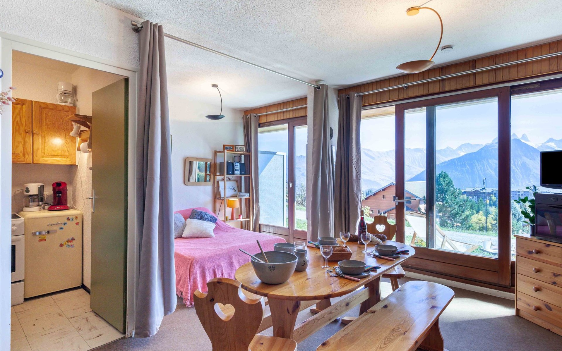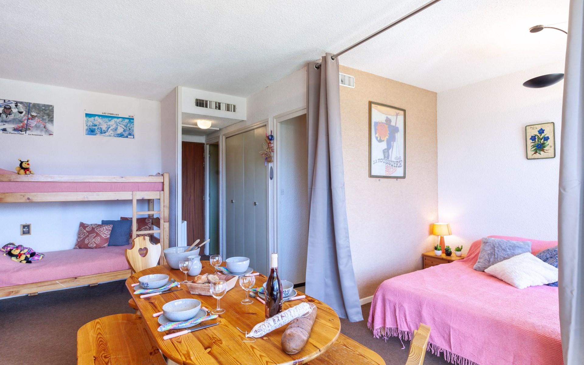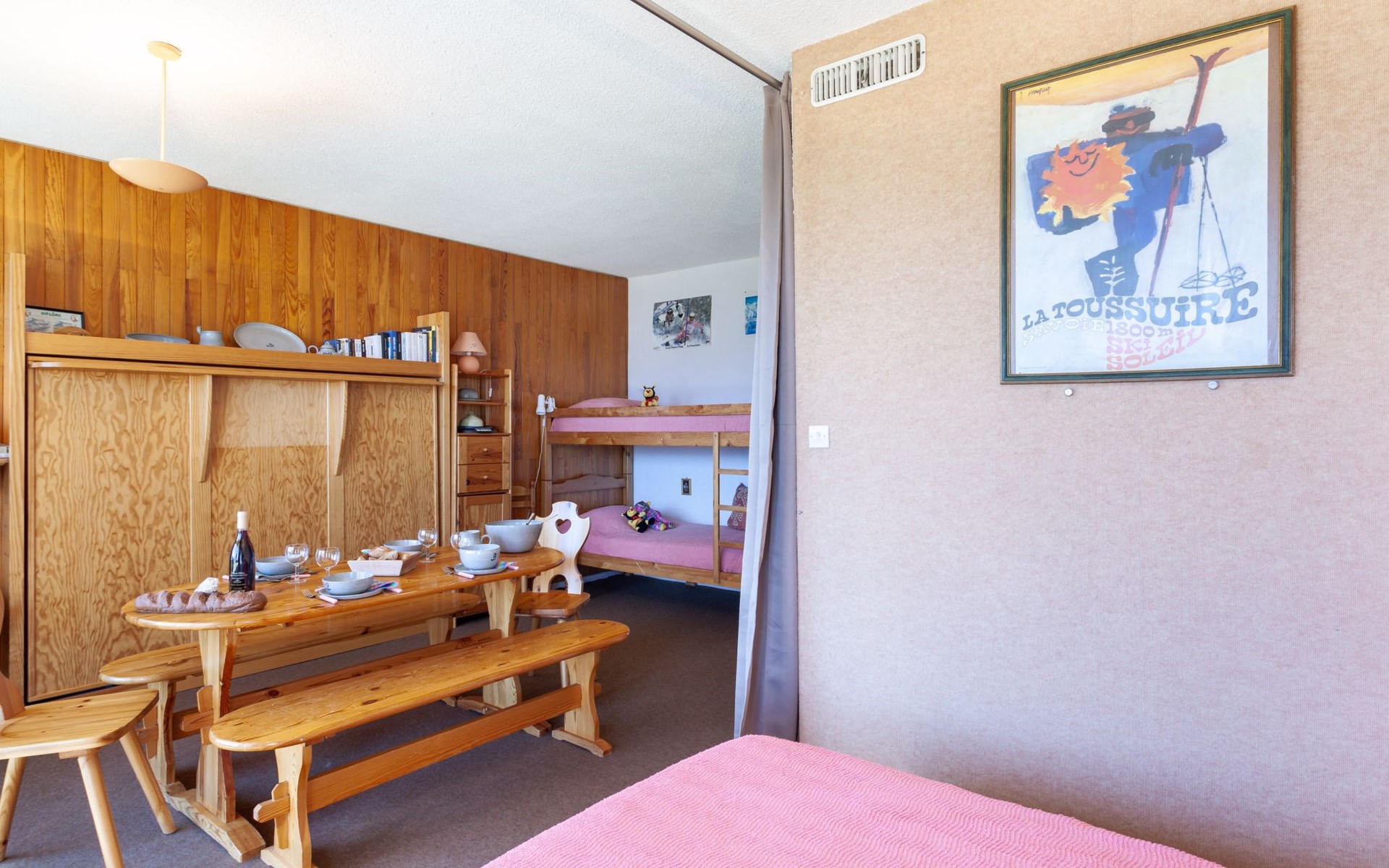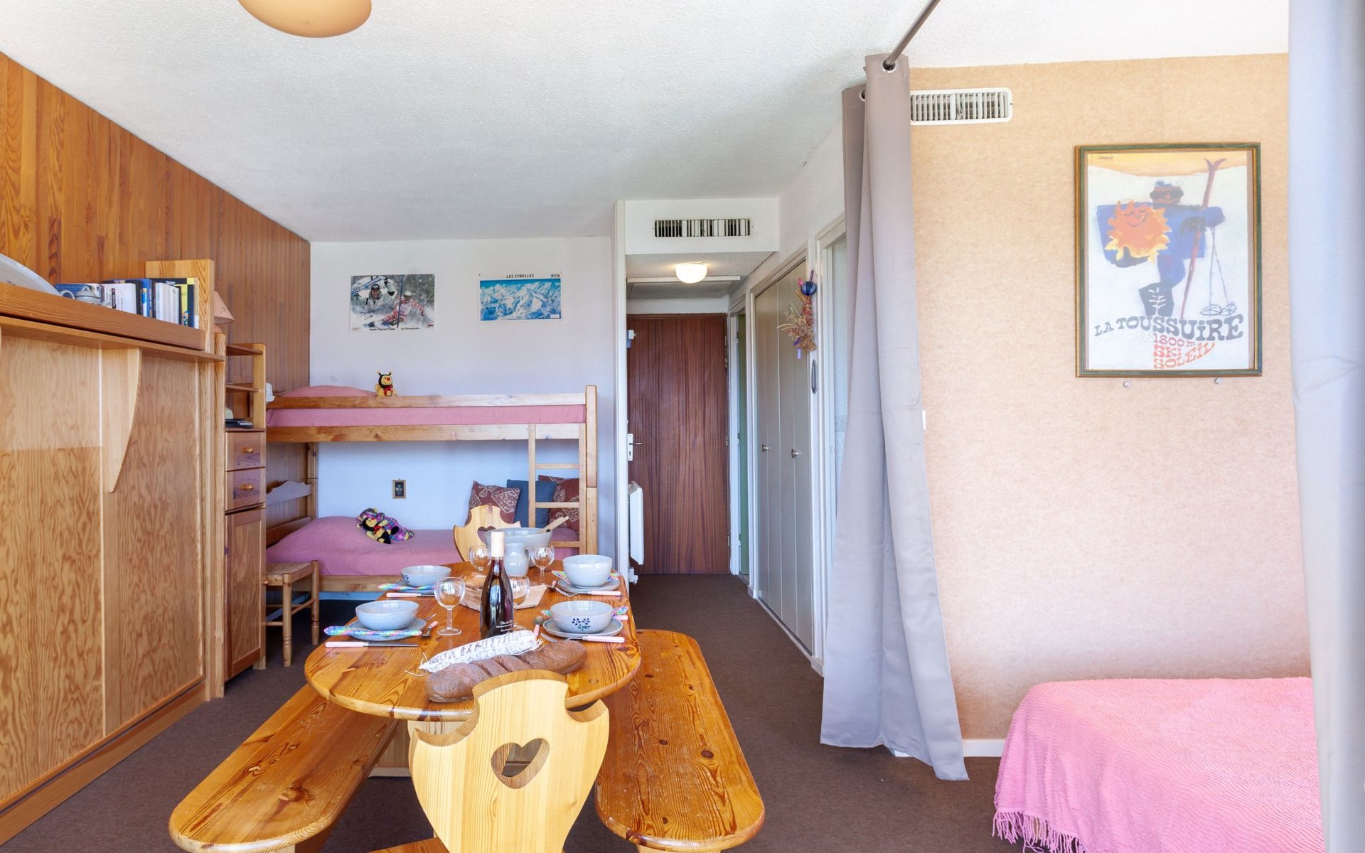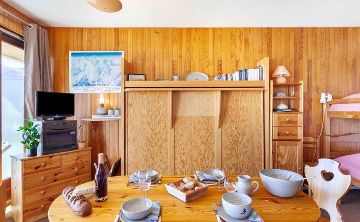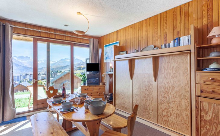 Small apartment house "Mont Charvin", 3 storeys. Above La Toussuire, in an elevated position, 400 m from the skiing area, south facing position. In the house: lift, storage room for skis. In Winter: please take snow chains. Parking. Shop 320 m, grocery 280 m, restaurant, bar 550 m, bus stop 220 m, railway station "St Jean de Maurienne" 16 km. Chair lift, slopes 400 m, ski bus stop 220 m. Please note: ski bus (free of charge). The keys‘ handover takes place by the agency INTERHOME DU CORBIER in LA STATION VOISINE, 4 km.