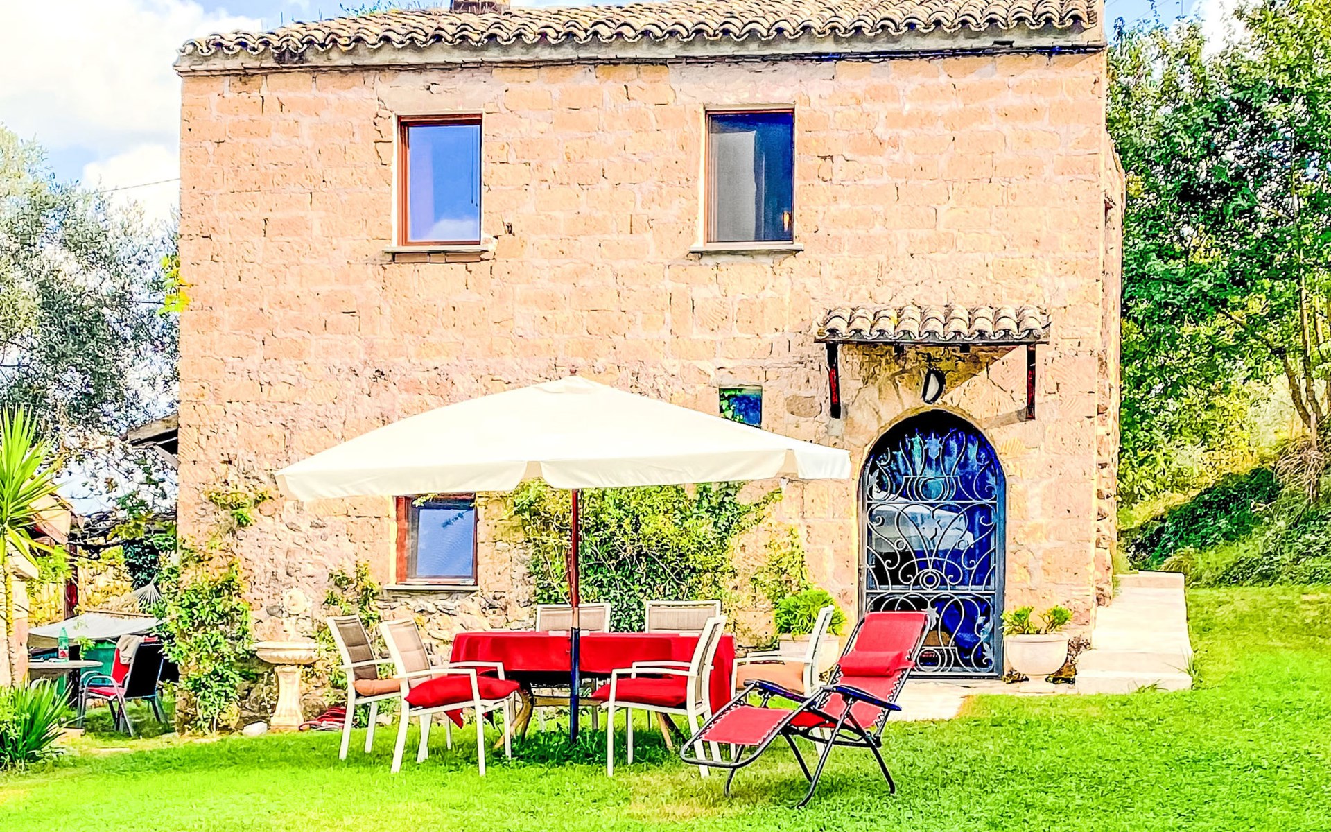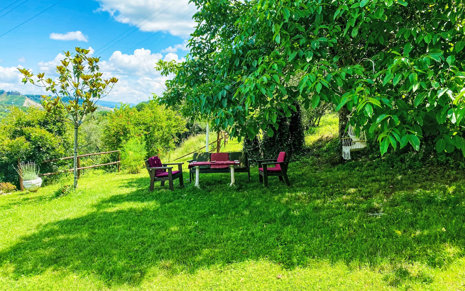 Cosy, comfortable country house "Dimora Bella Civita", detached, surrounded by fields. 5 km from the centre of Bagnoregio, in a secluded position. For shared use: property 2 ha (fenced). Private: natural garden 1'000 m2. Garden furniture, barbecue. Motor access (500 m via unmade road). Parking on the premises. Shop 5 km, grocery 5 km, shopping centre 5 km, restaurant 5 km, bus stop 500 m, lake Bolsena 17 km. Nearby attractions: Bolsena 17 km, Montefiascone 18 km, Orvieto 21 km, Marta 28 km, Capodimonte 30 km, Viterbo 30 km. Please note: car recommended. The owner lives on the same property. Owner lives in separate semi-detached house.