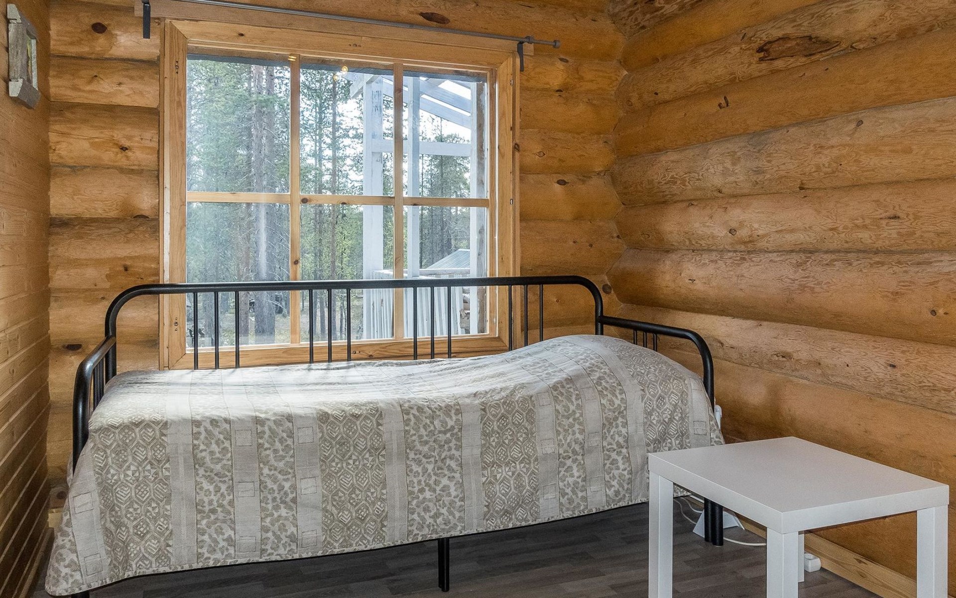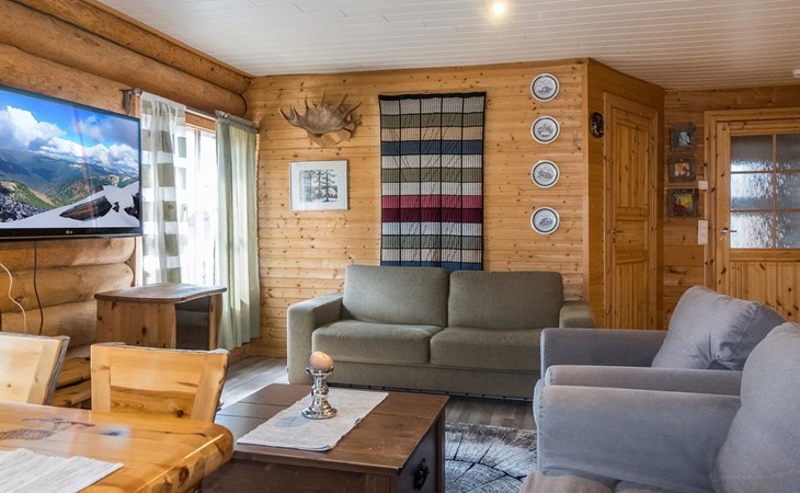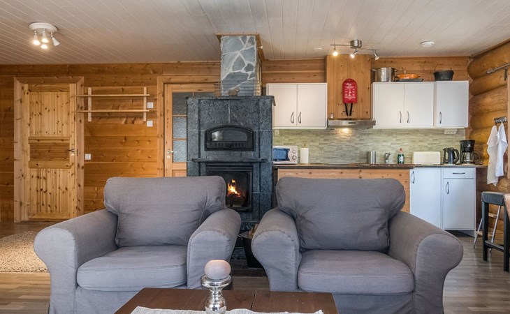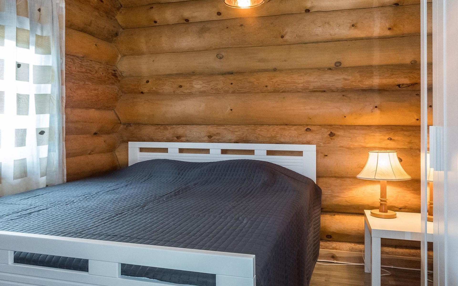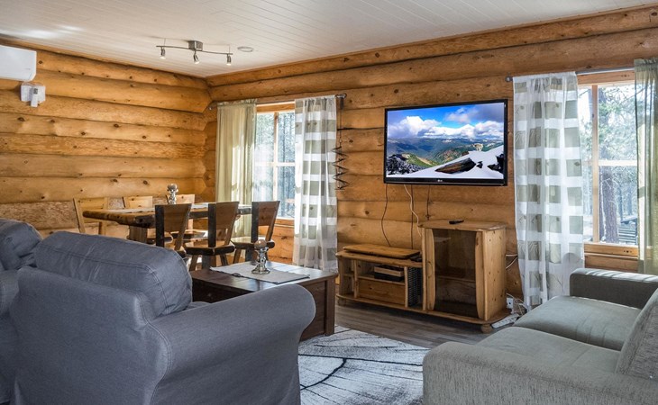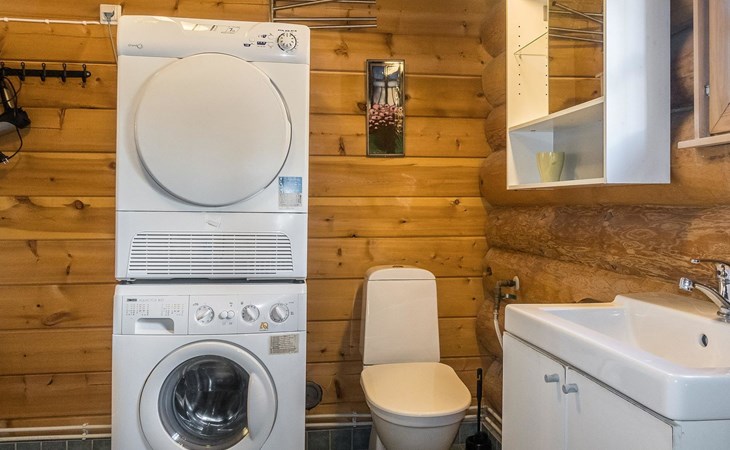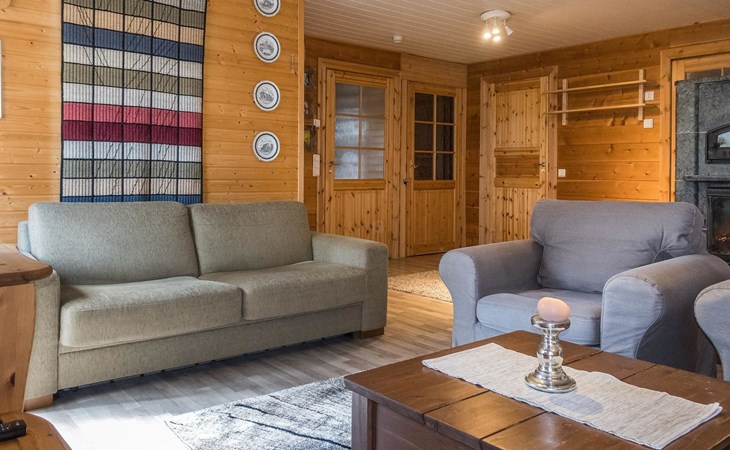 Log cottage, built in 2015, kitchen-living room with sofa bed, bedroom with double bed (width 160 cm), bedroom with foldable double bed, sauna (electric stove), shower room/toilet, small covered porch.