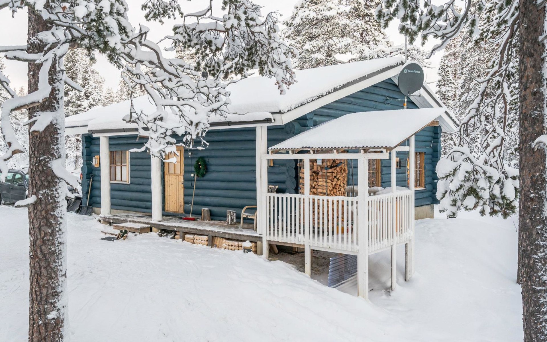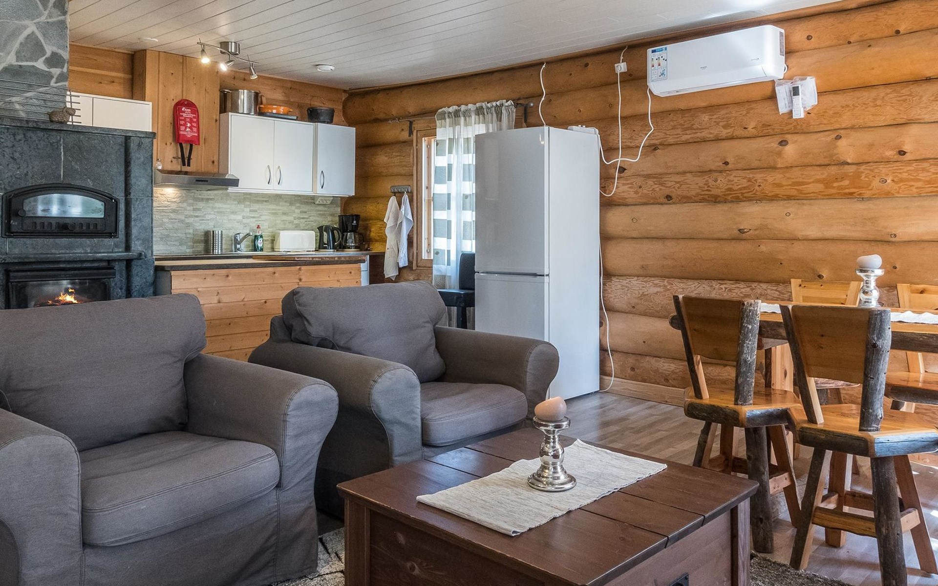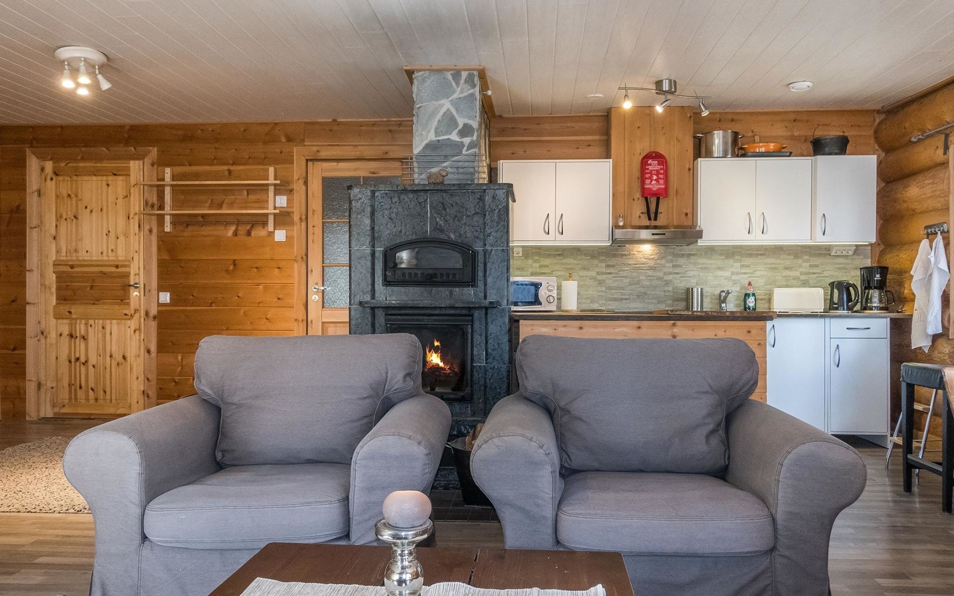 Log cottage, built in 2015, kitchen-living room with sofa bed, bedroom with double bed (width 160 cm), bedroom with foldable double bed, sauna (electric stove), shower room/toilet, small covered porch.