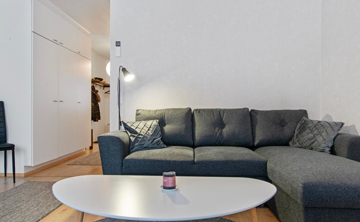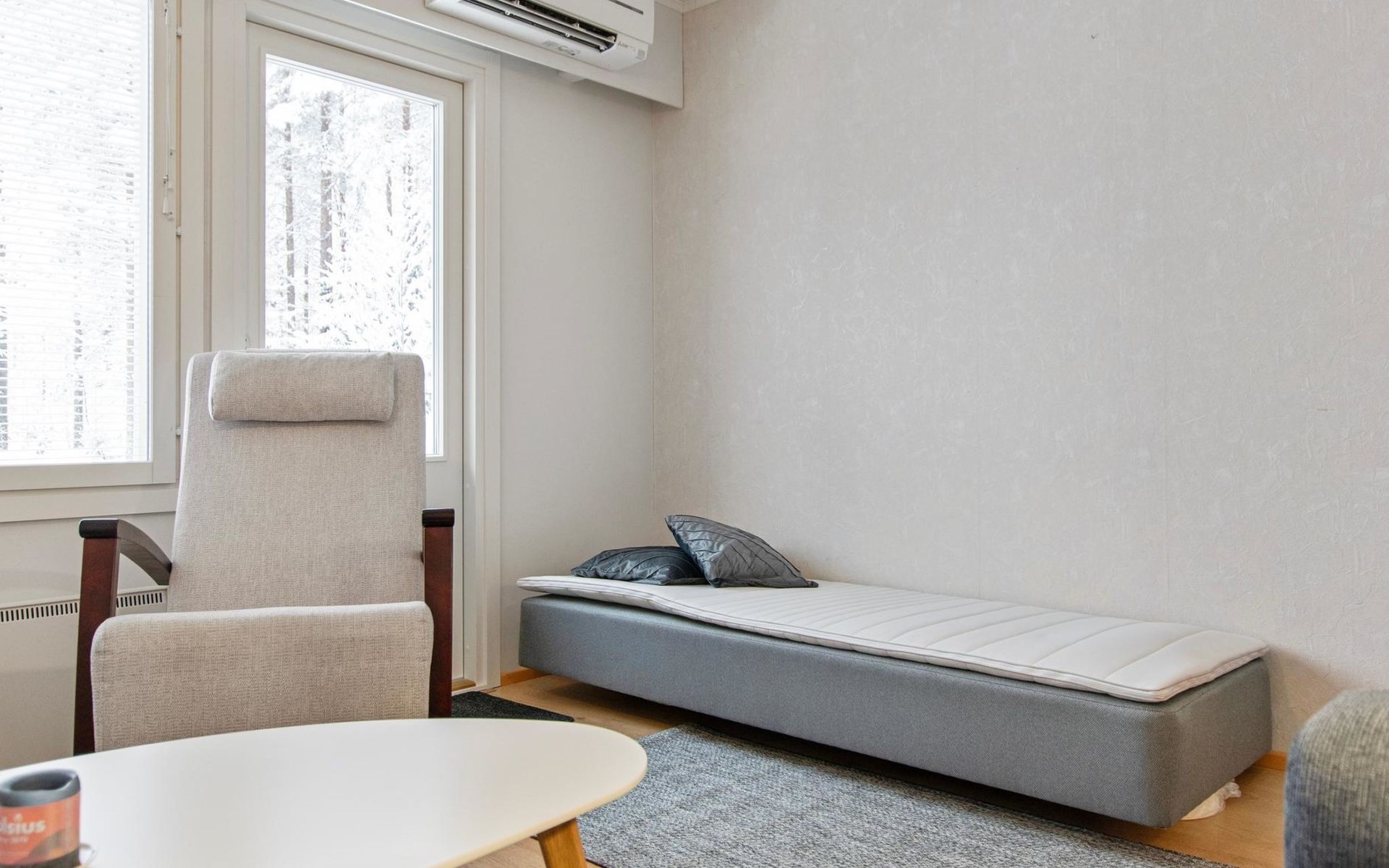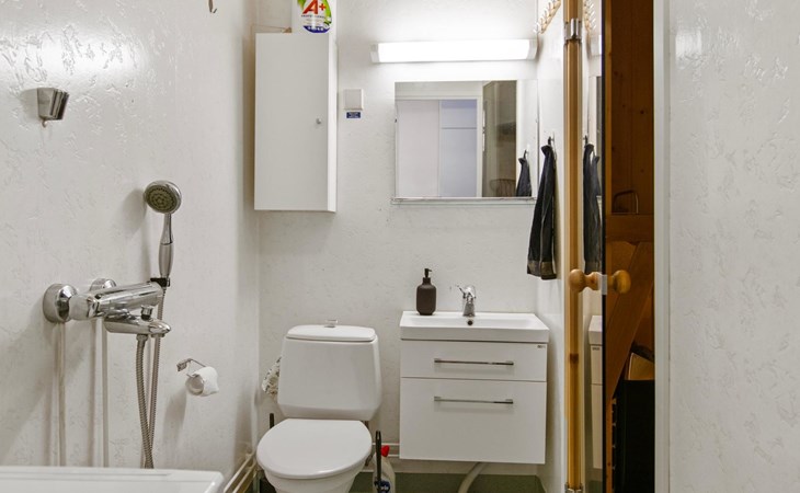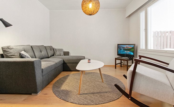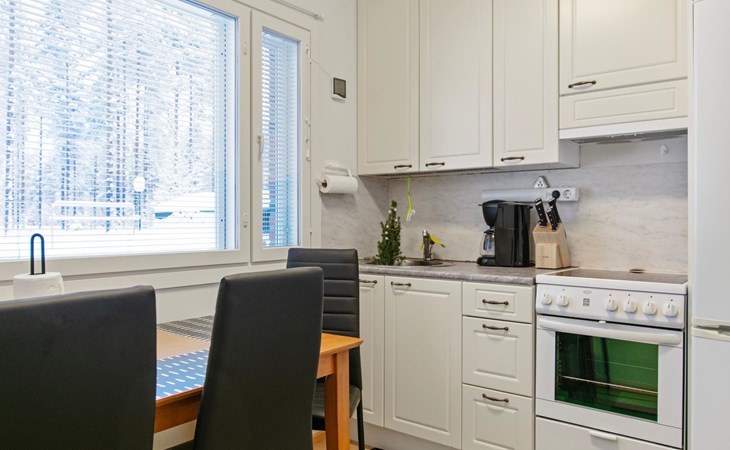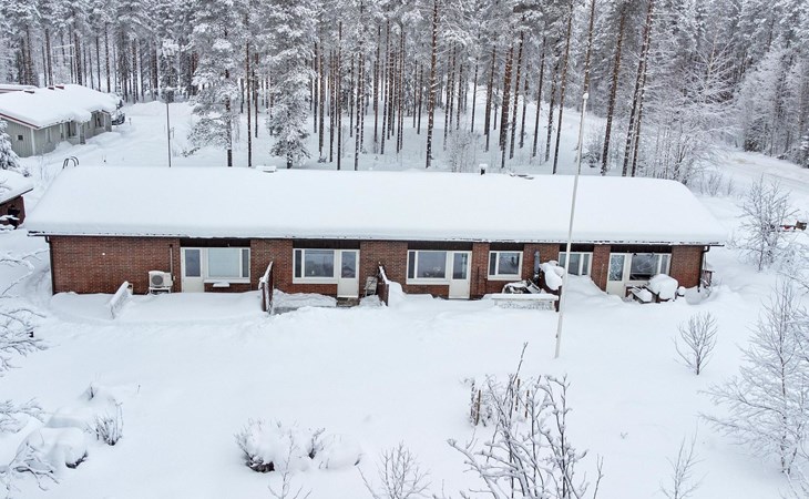 92 km east of Kuopio, 36 km to the southwest of Nurmes, Lake Ylä-Luosta 900 m, public beach. Brick-faced apartment (1984), small kitchen, living room with a single bed and a sofa bed, which converts into a 140 x 190 cm bed for two. The living room is equipped with an air heat source pump. Electric sauna, bathroom with shower and washing machine.