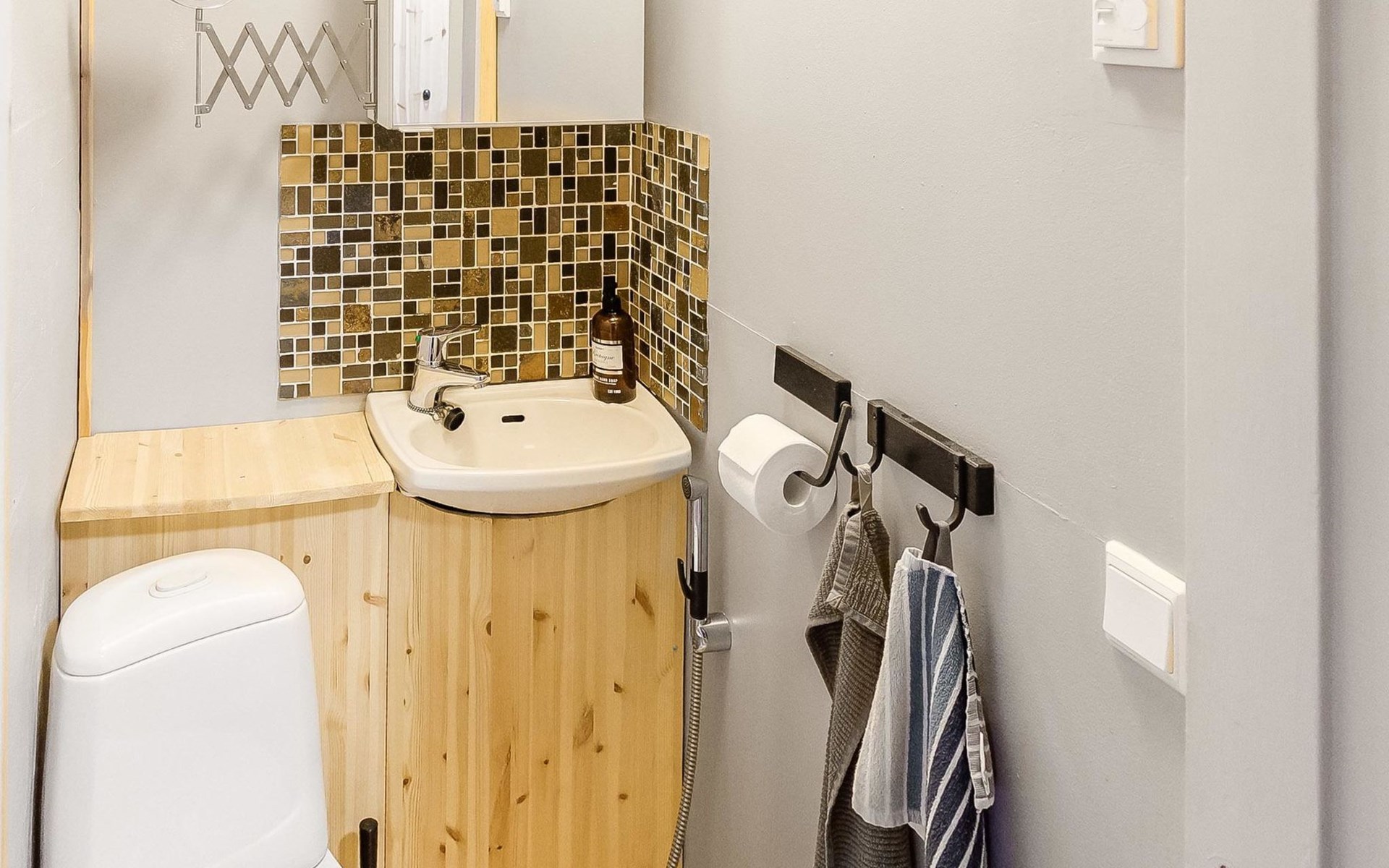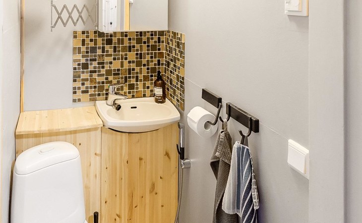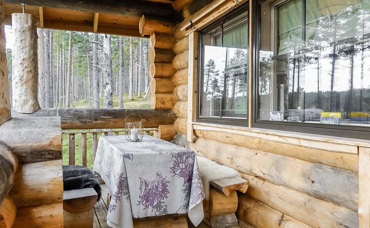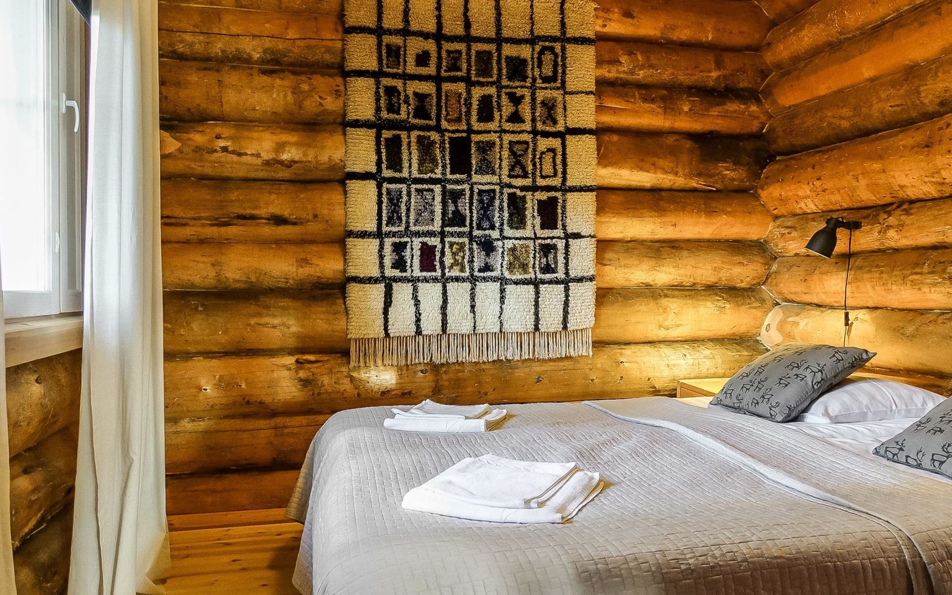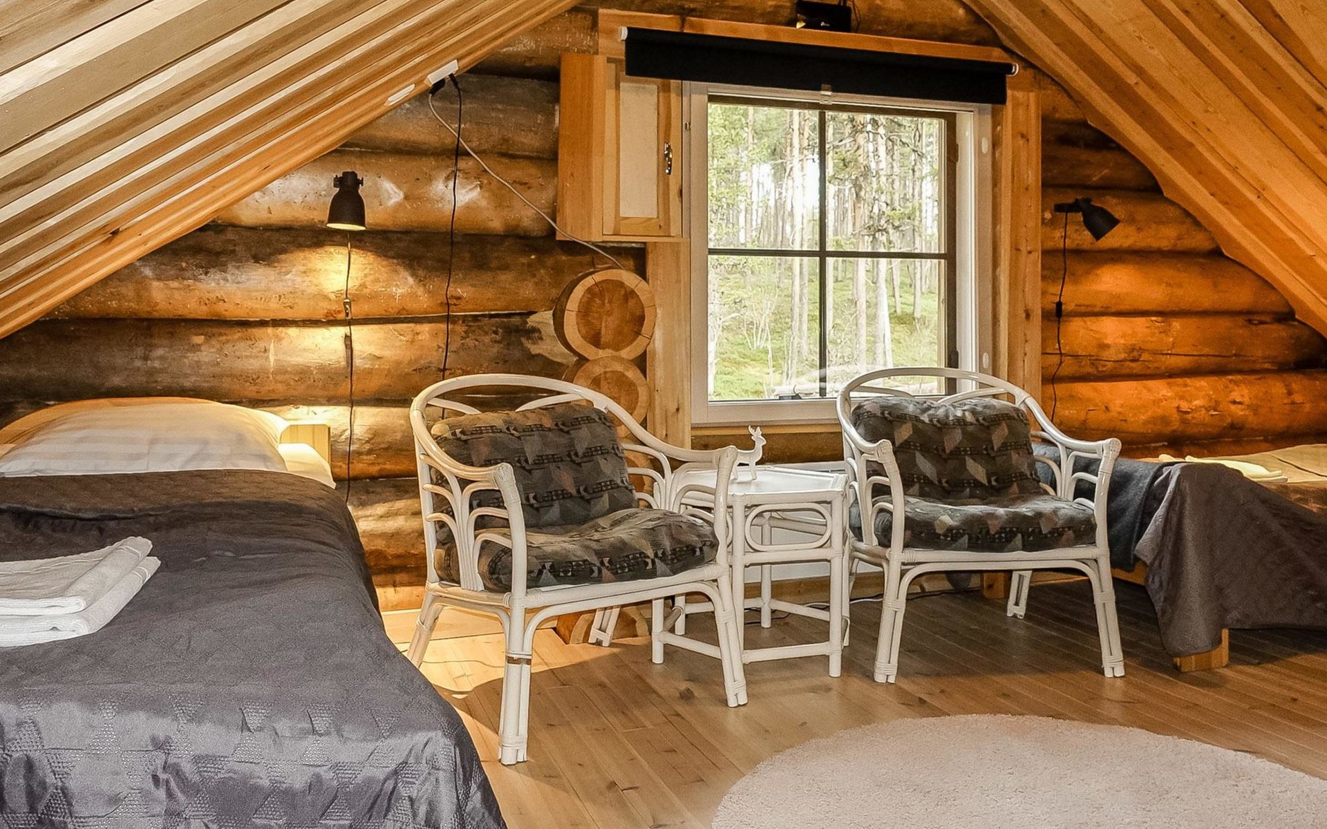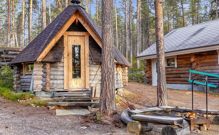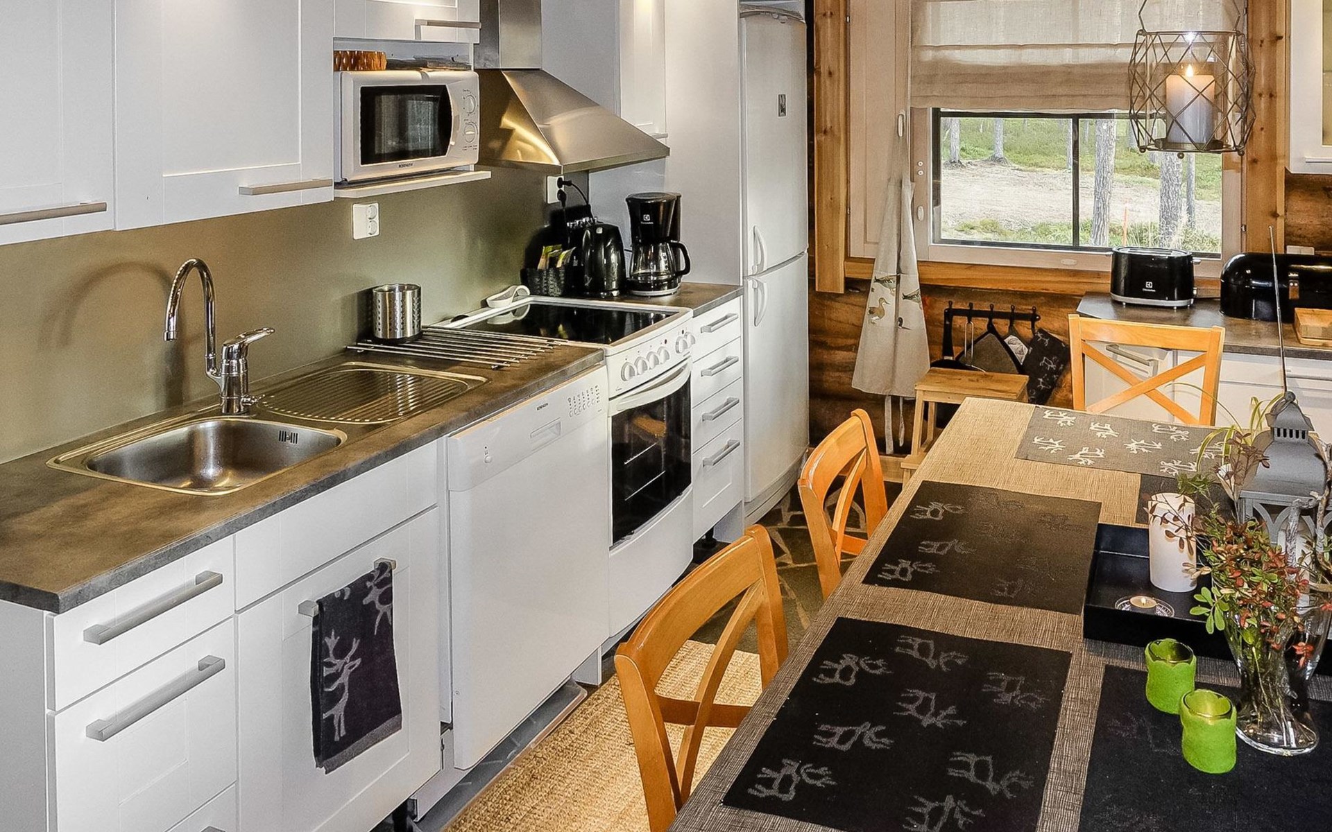 Log cabin built of northern pine in 2015, combined kitchen-living room, downstairs bedroom with 2 beds, upstairs bedroom with 3 beds, upstairs second bedroom with 3 beds (one of them is 120 cm wide), sauna with wood heated sauna stove, washroom with shower cubicle, 2 toilets (one of which is upstairs), covered terrace. A barbecue hut.