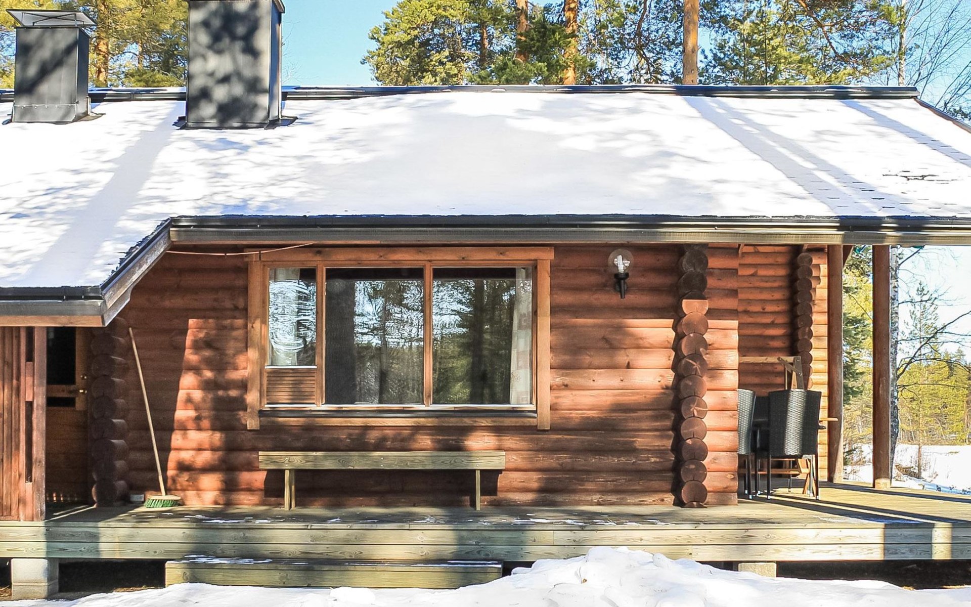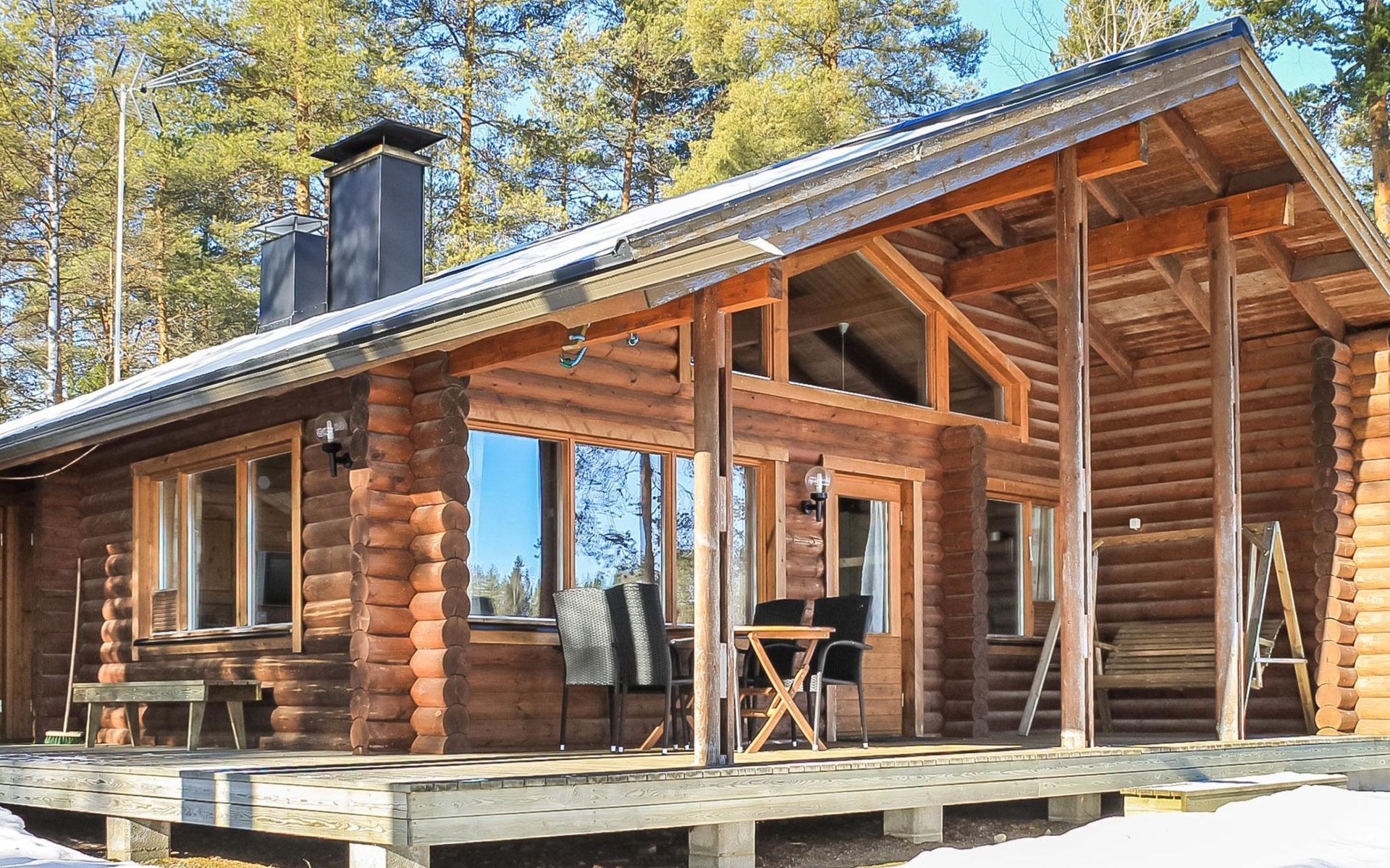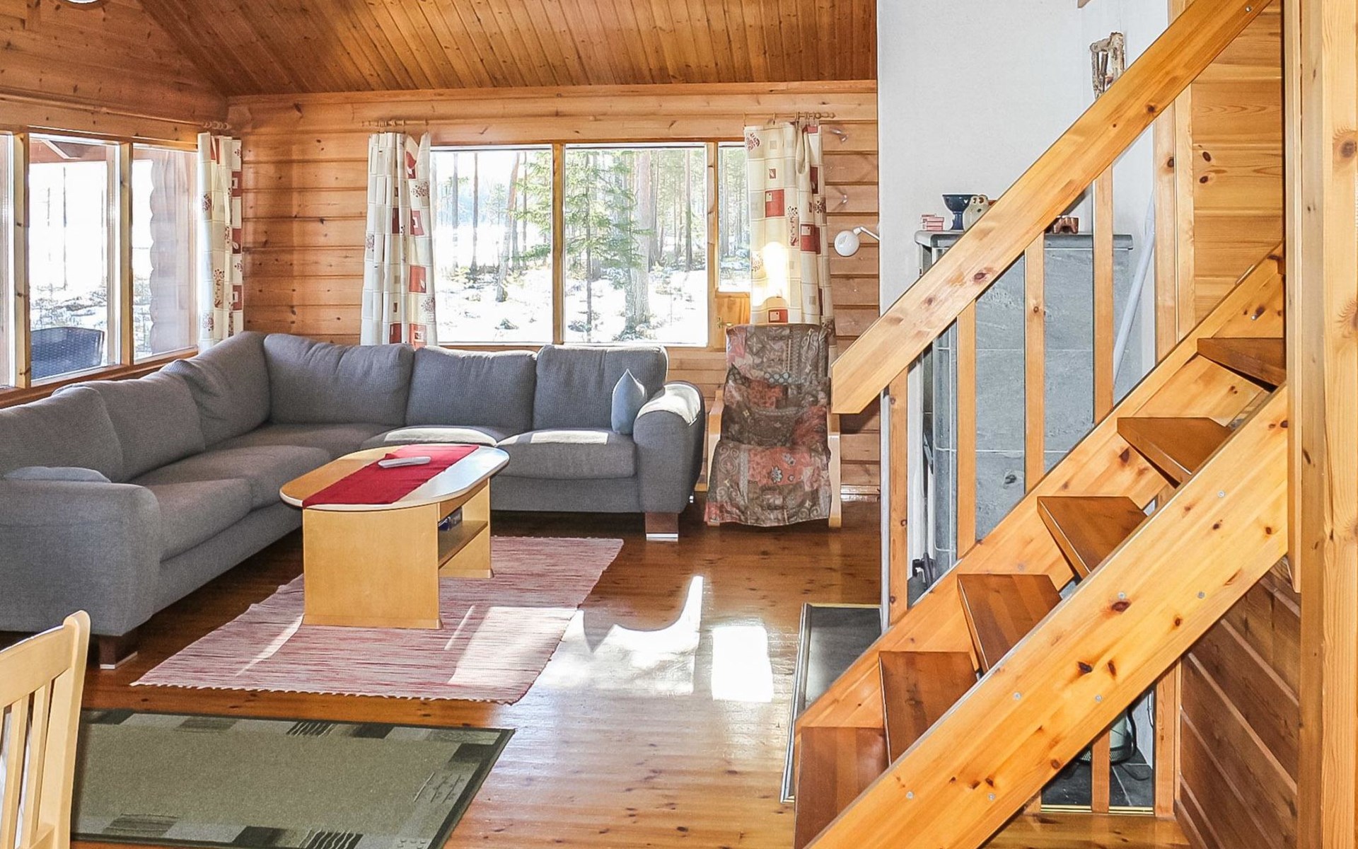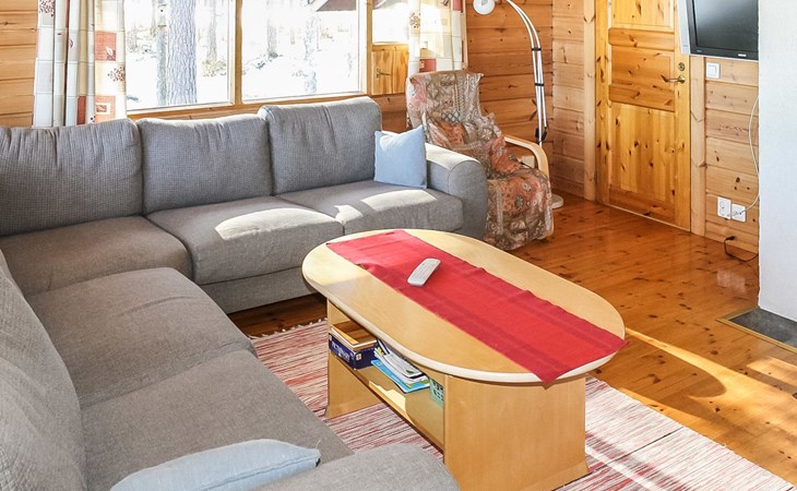 Wooden cabin 1994, living room/kitchen, bedroom with double bed, bedroom with bunk bed, sleeping loft (10 m²) with 3 mattresses, washroom, foyer, sauna, open veranda.