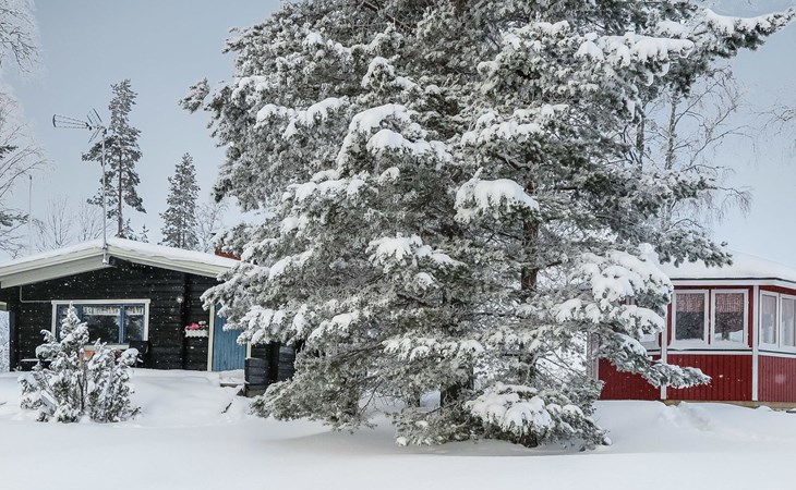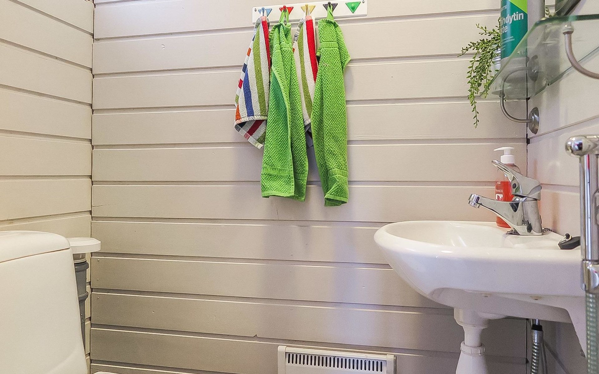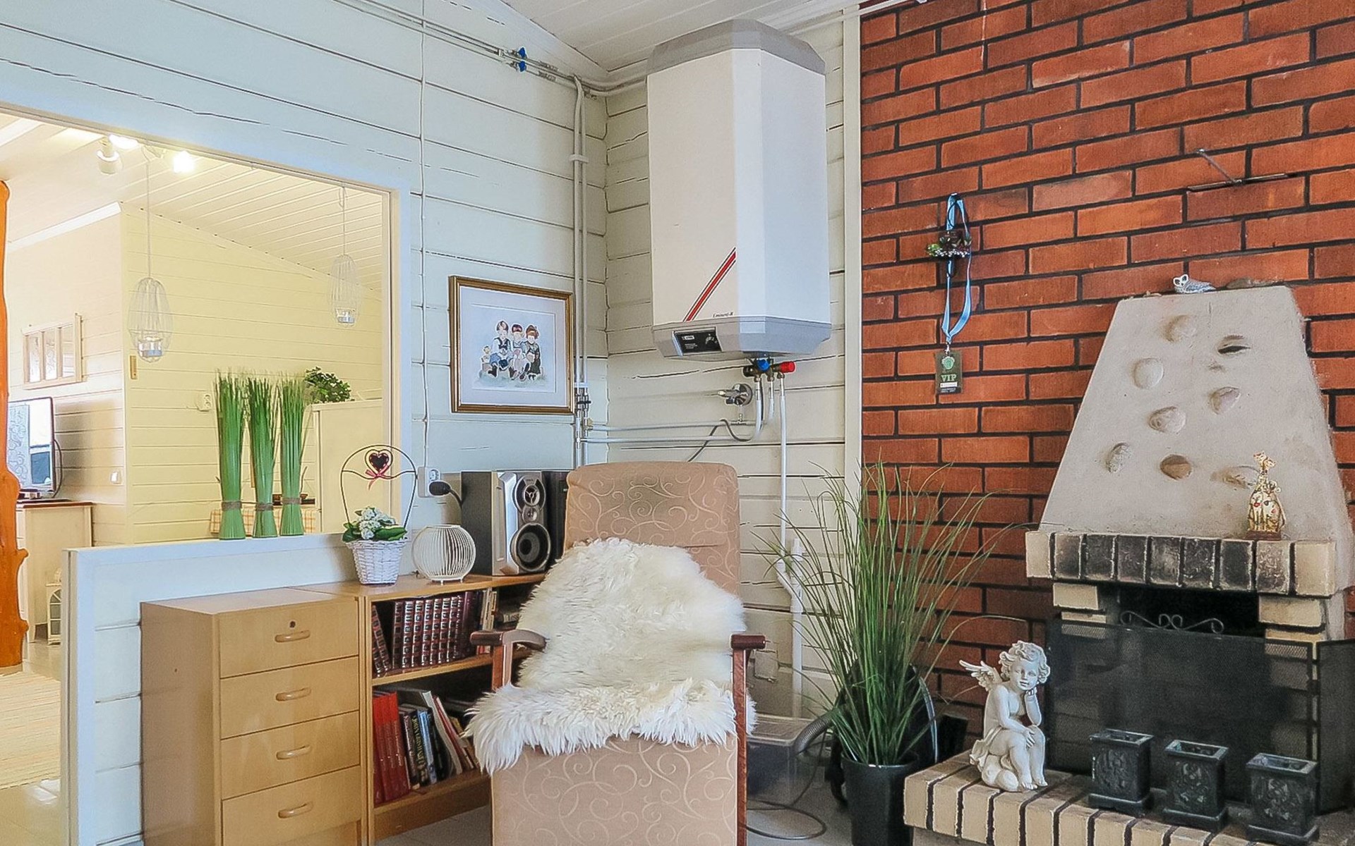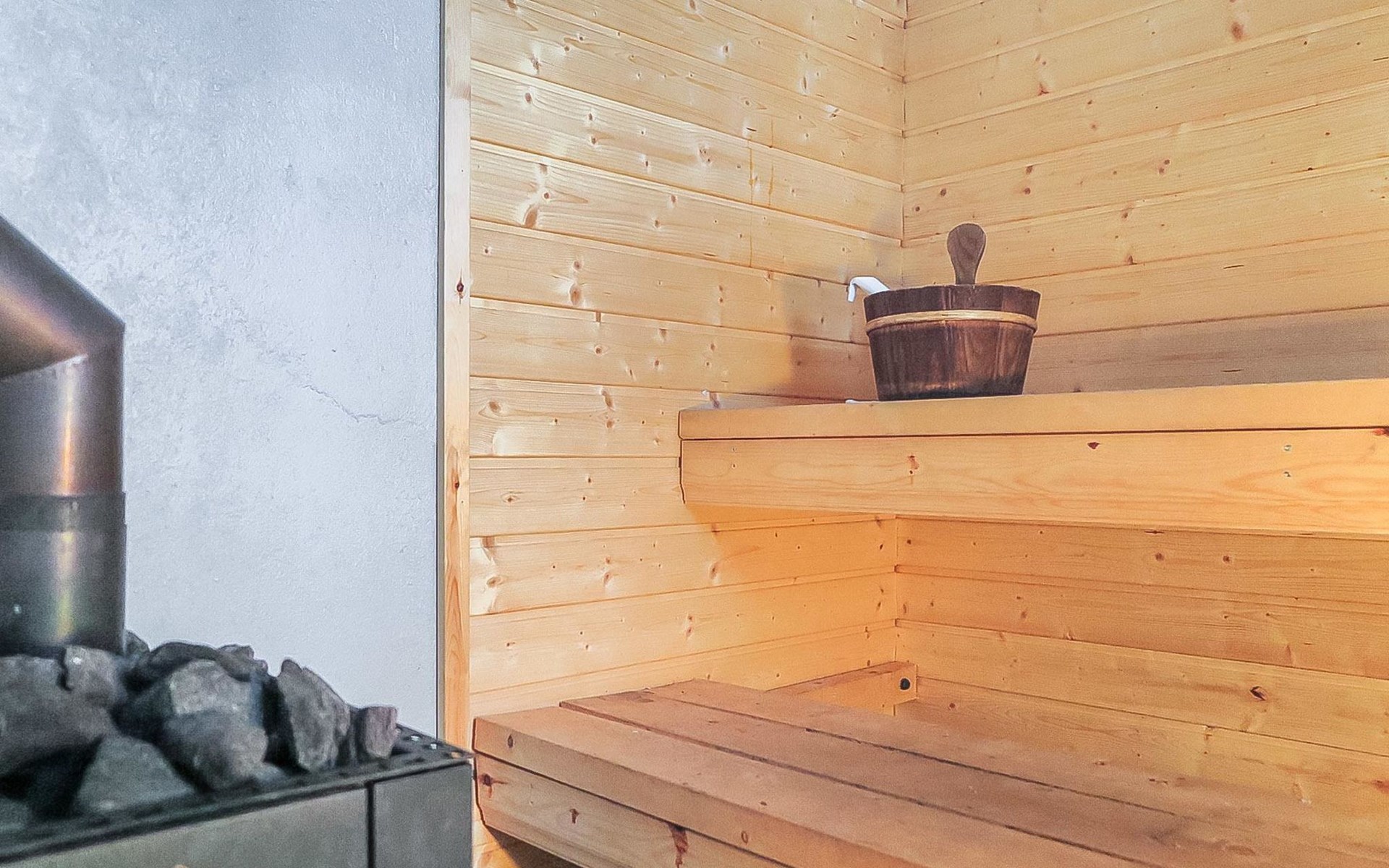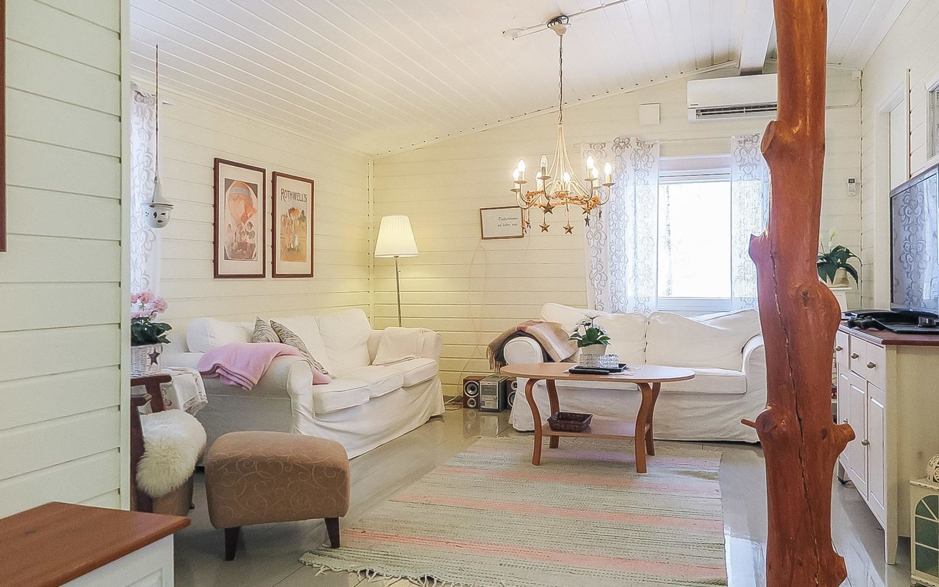 Combined kitchen-living room, 2 bunk beds in extension part, bedroom with double bed (width 140 cm), wood-heated sauna, wash room, separate toilet, terrace.