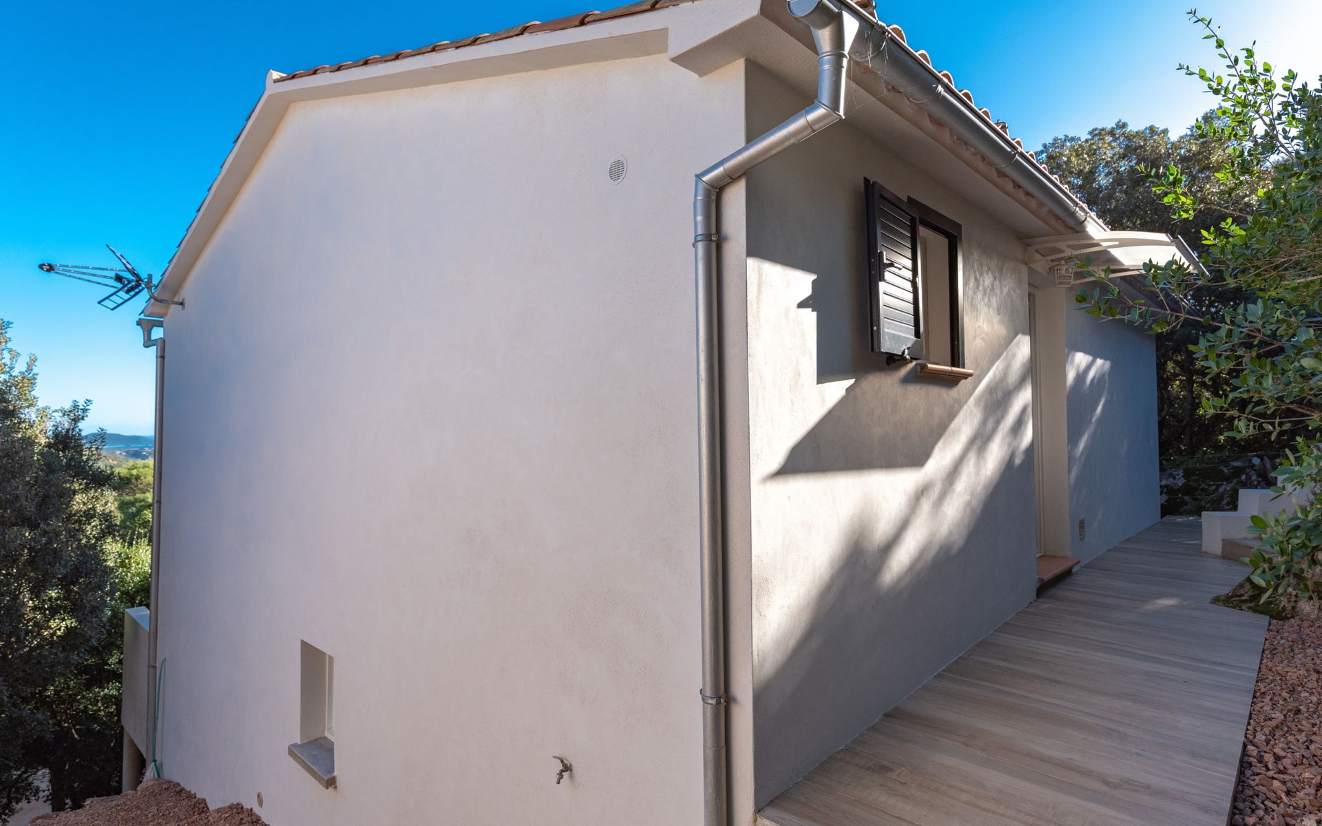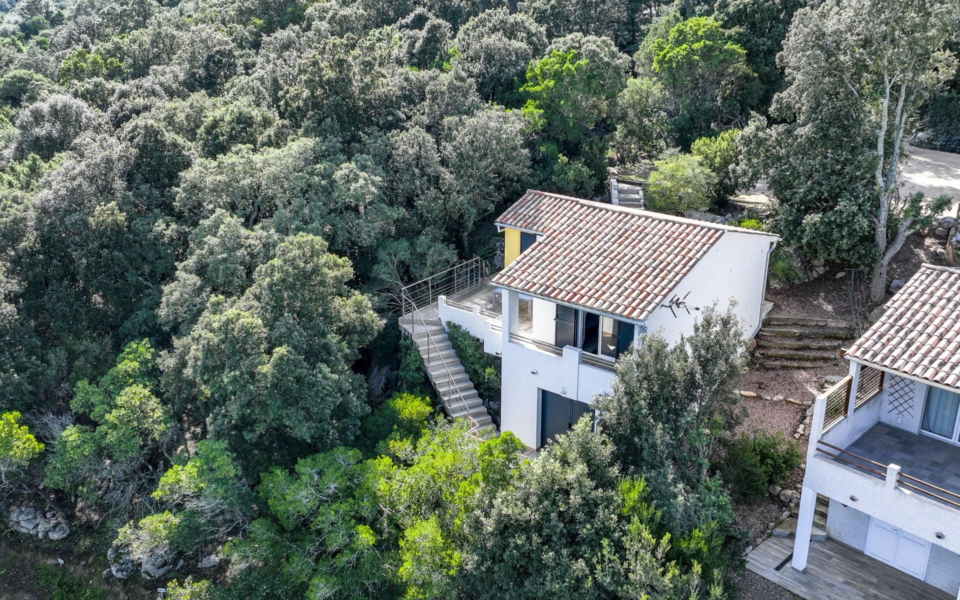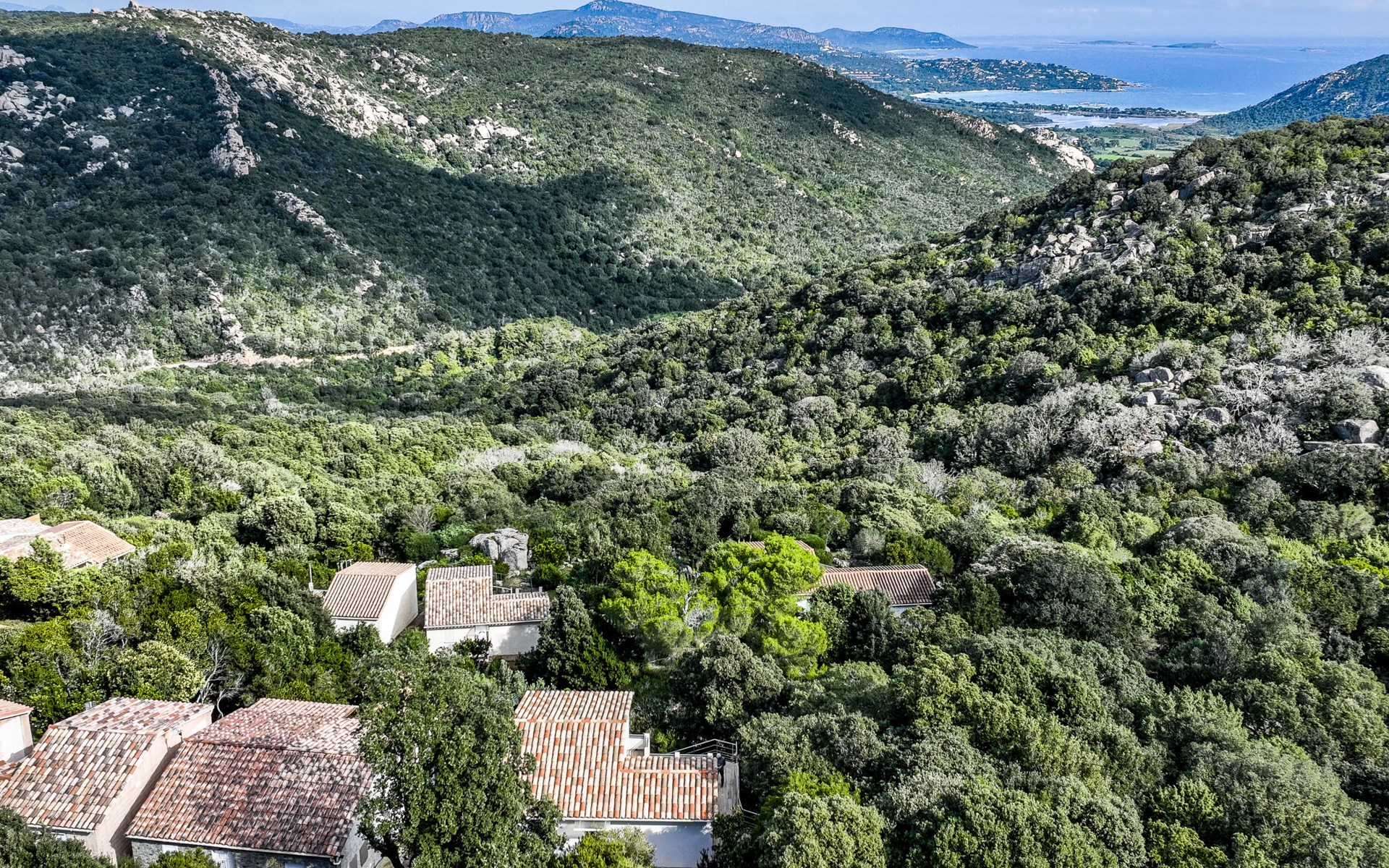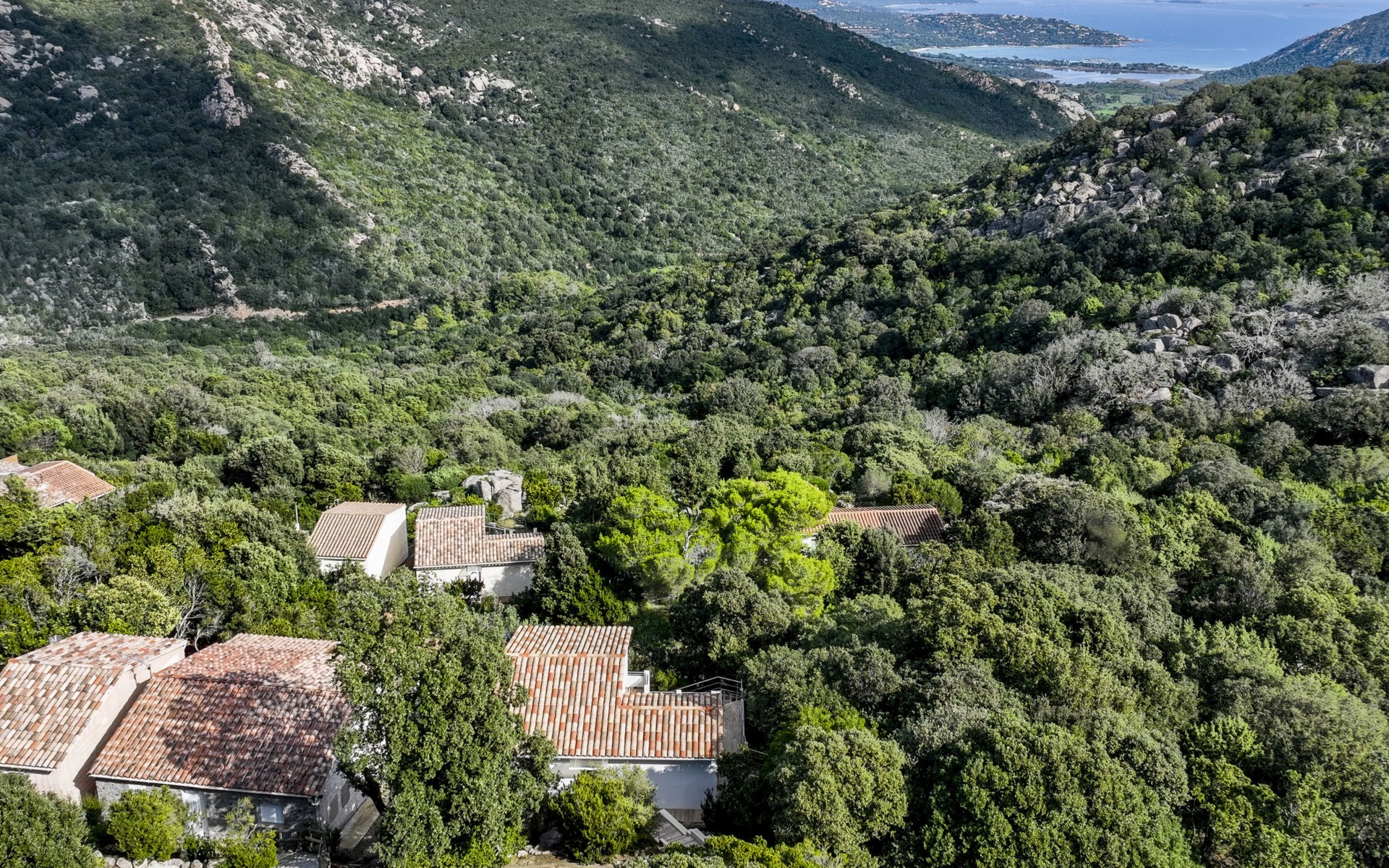 Residence "Pietralunga". In the hamlet Pietralunga with 20 houses, on a slope, 6 km from the sea, 6 km from the beach. In the complex: motor access (mountain road). Parking. Grocery 6 km, supermarket 9 km, shopping centre 10 km, restaurant 6 km, bakery 4 km, bus stop 1 km, sandy beach "Santa Giulia" 6 km. Marina 10 km, golf course (9 hole) 5 km, riding stable 11 km. Nearby attractions: Bonifacio 22 km, Figari 18 km, Porto Vechio 12 km, Iles Lavezzi. Well-known lakes can easily be reached: Lac de l'Ospedale. Hiking paths: Aiguille de Bavella. Please note: car recommended.