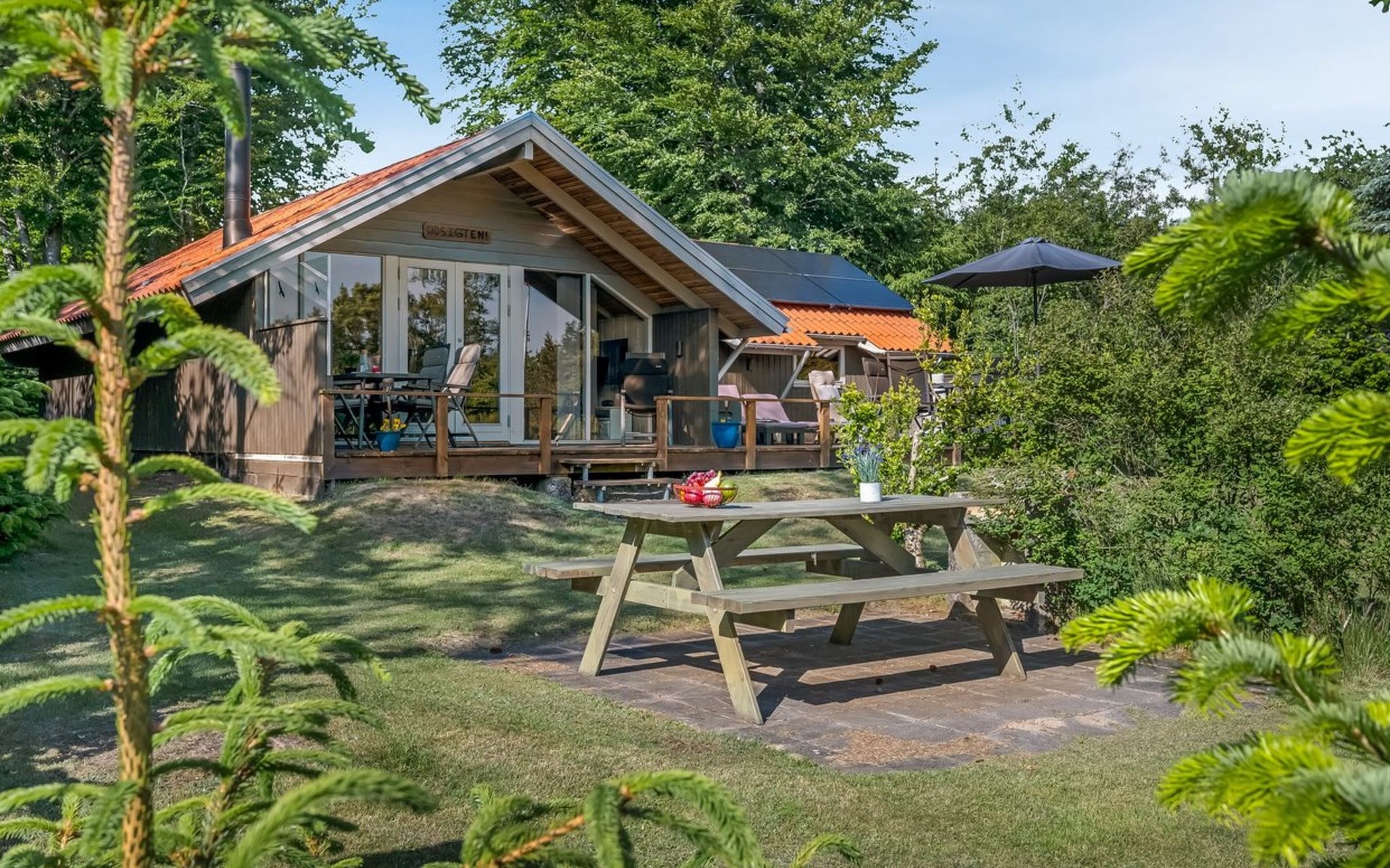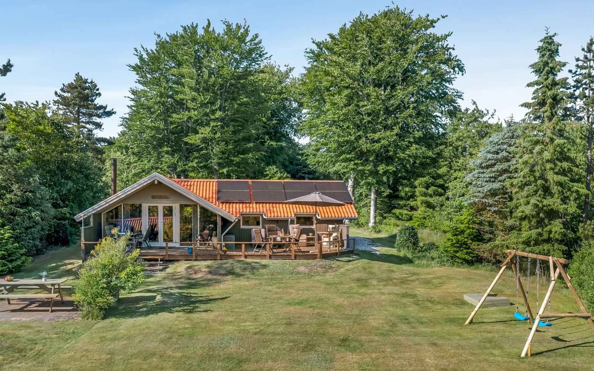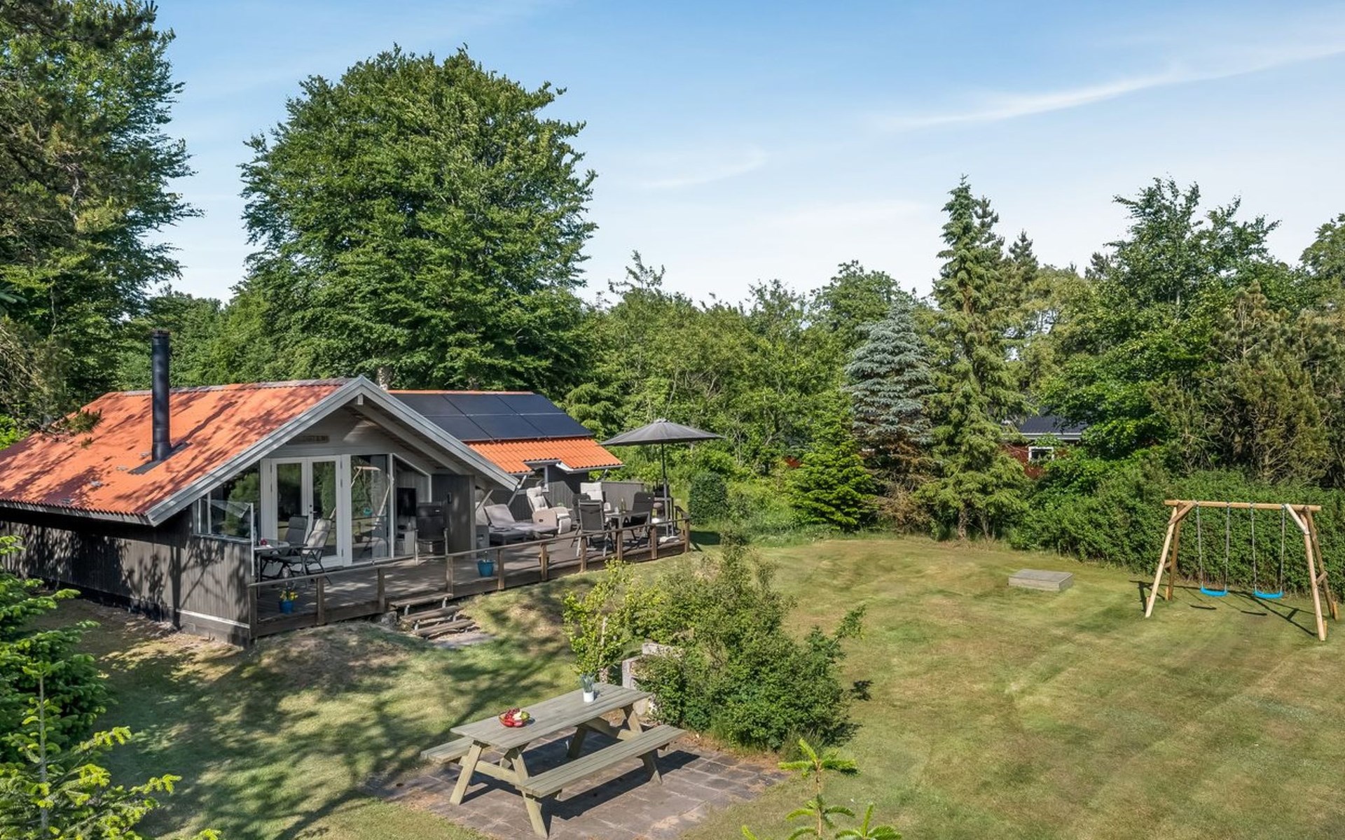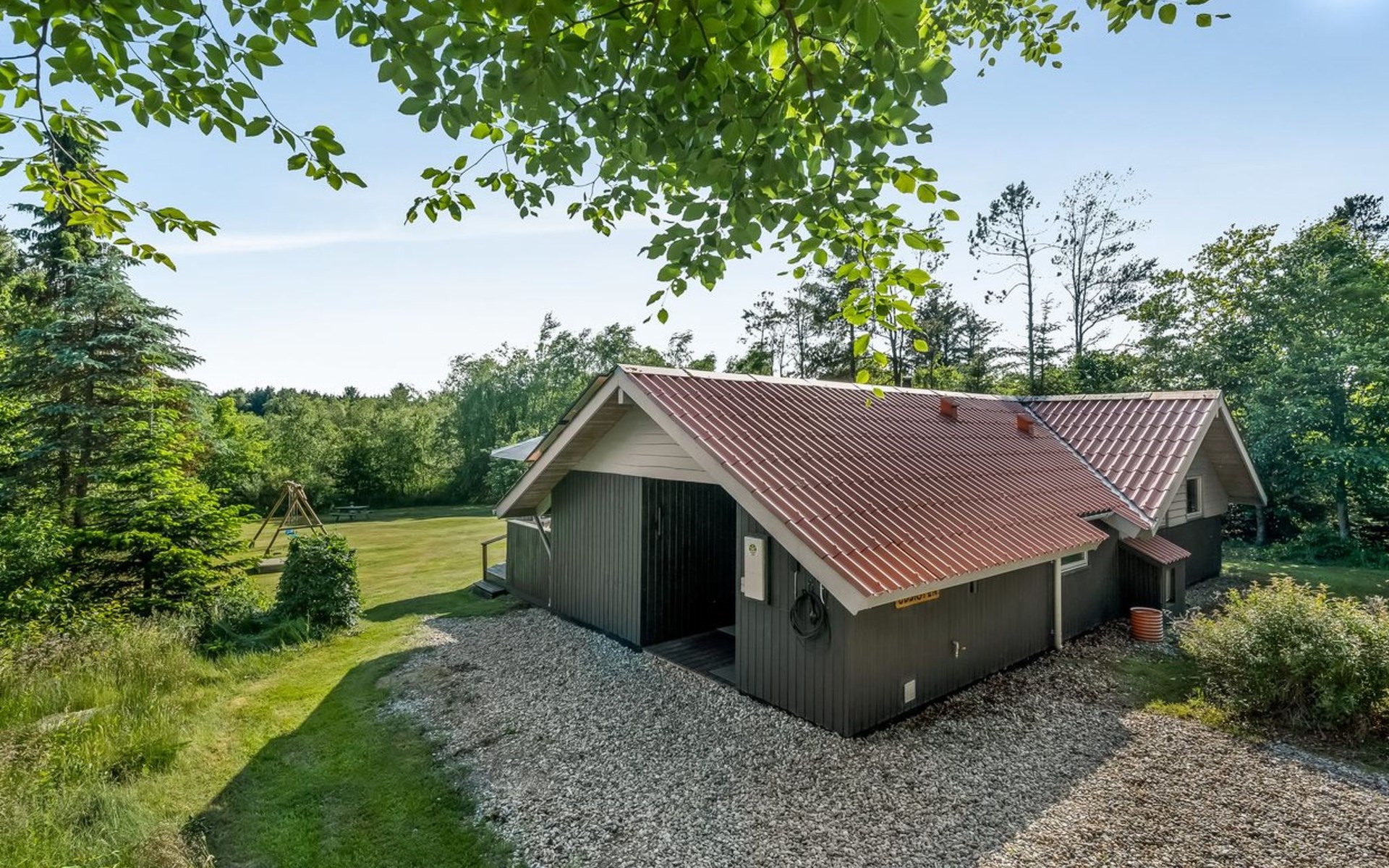 Single-family house, built in 1994. 12 km from the sea. Private: natural state property 1'535 m2. Terrace (45 m2), children's playground (swing). In the house: sauna, washing machine, tumble dryer. Parking at the house. E-charging station. Grocery 600 m. The owner does not accept any youth groups.