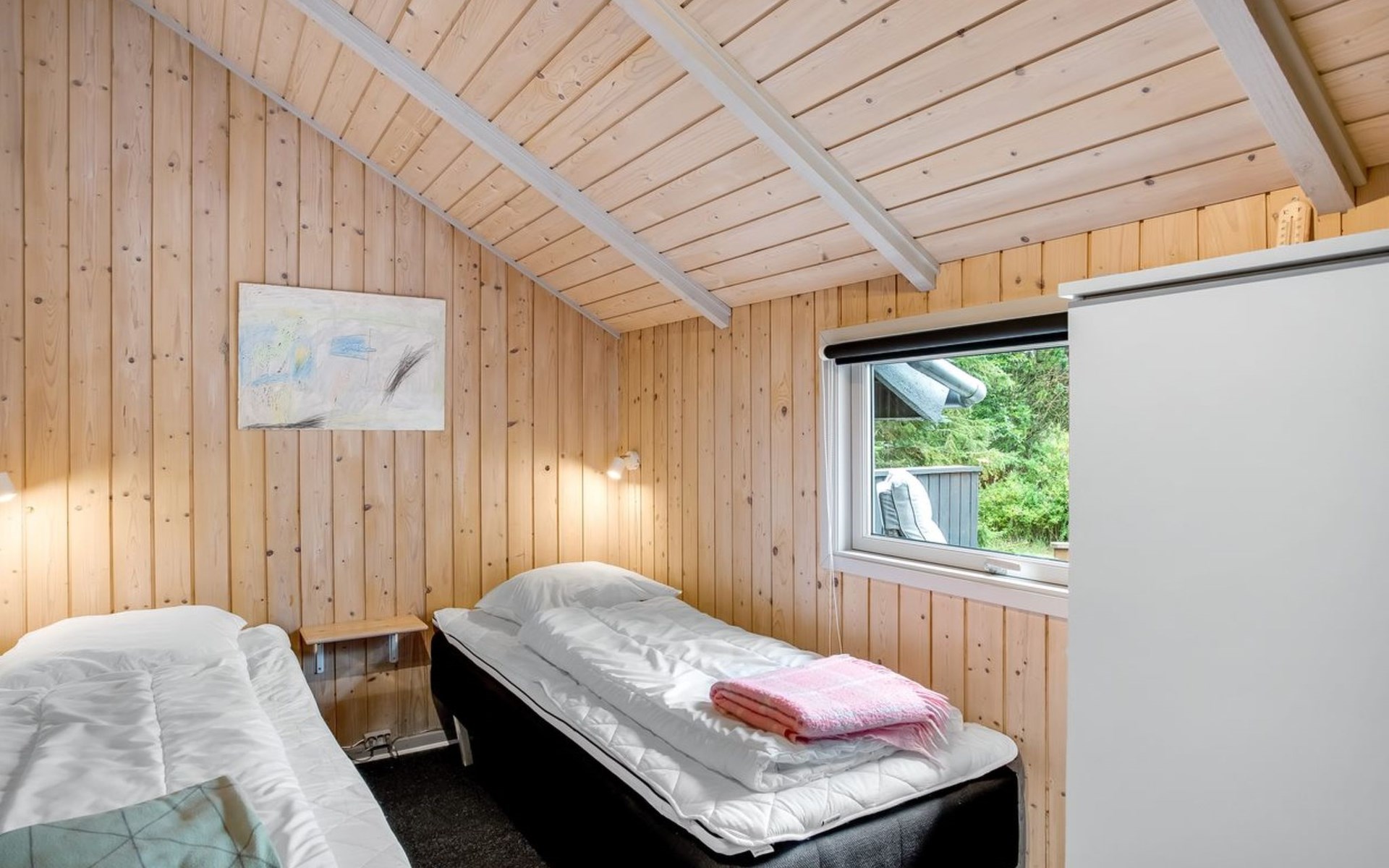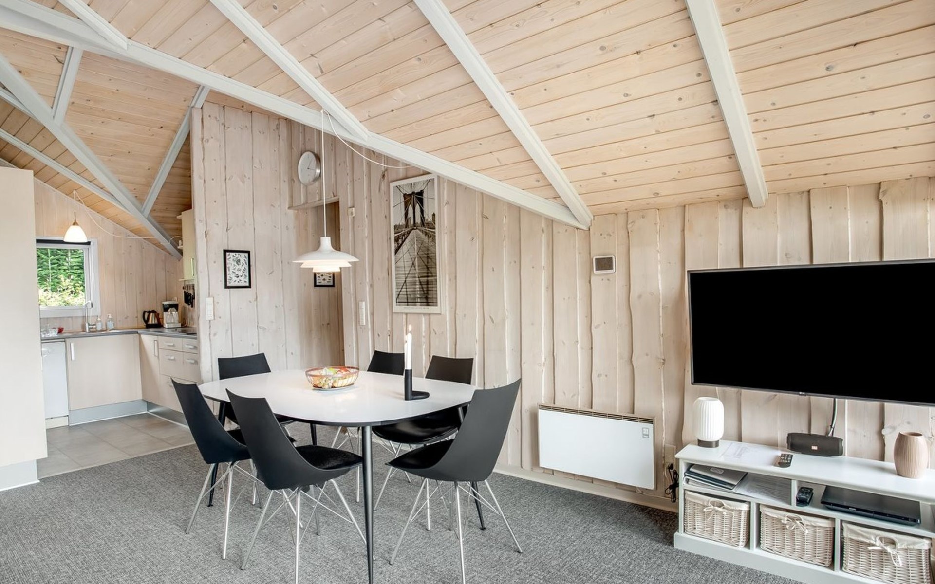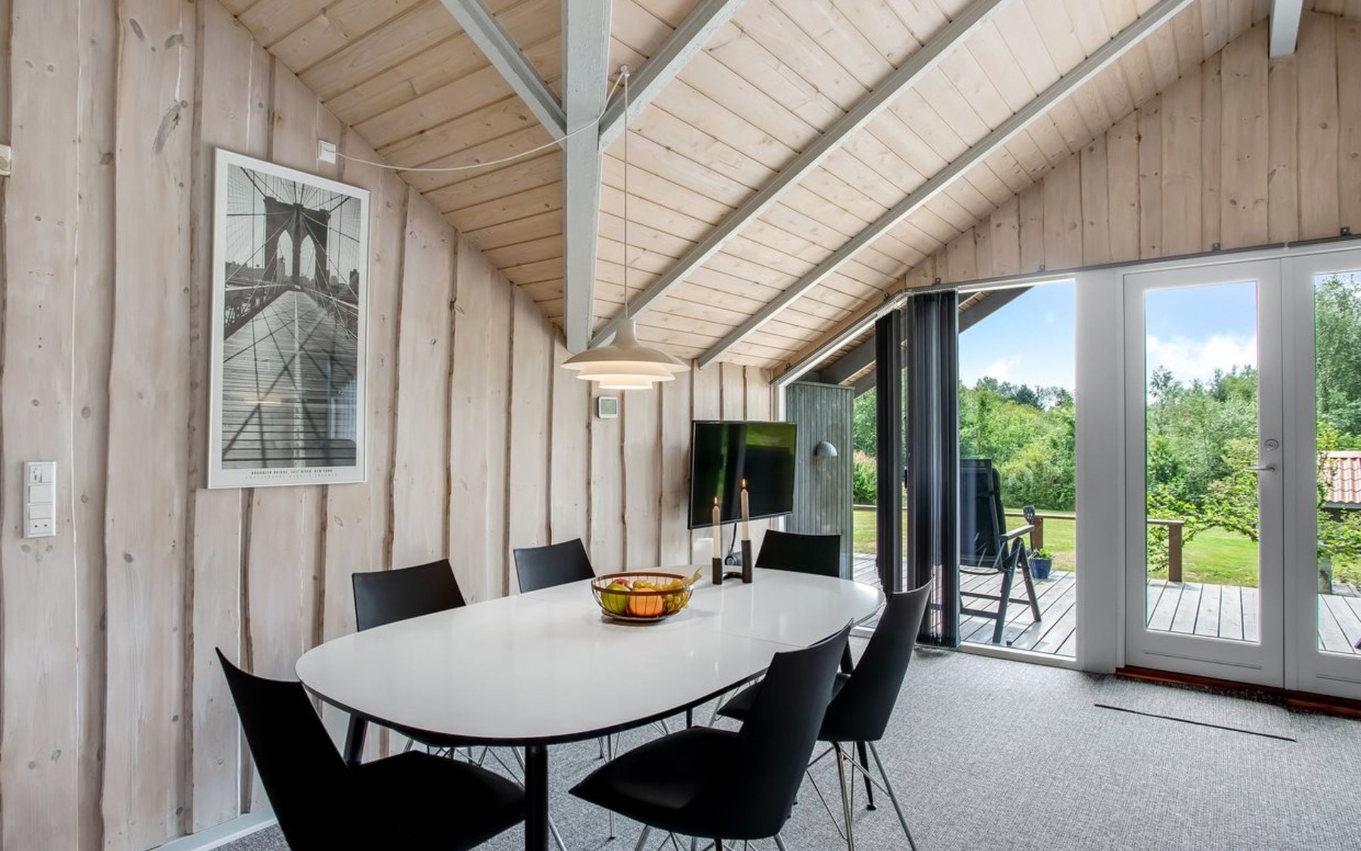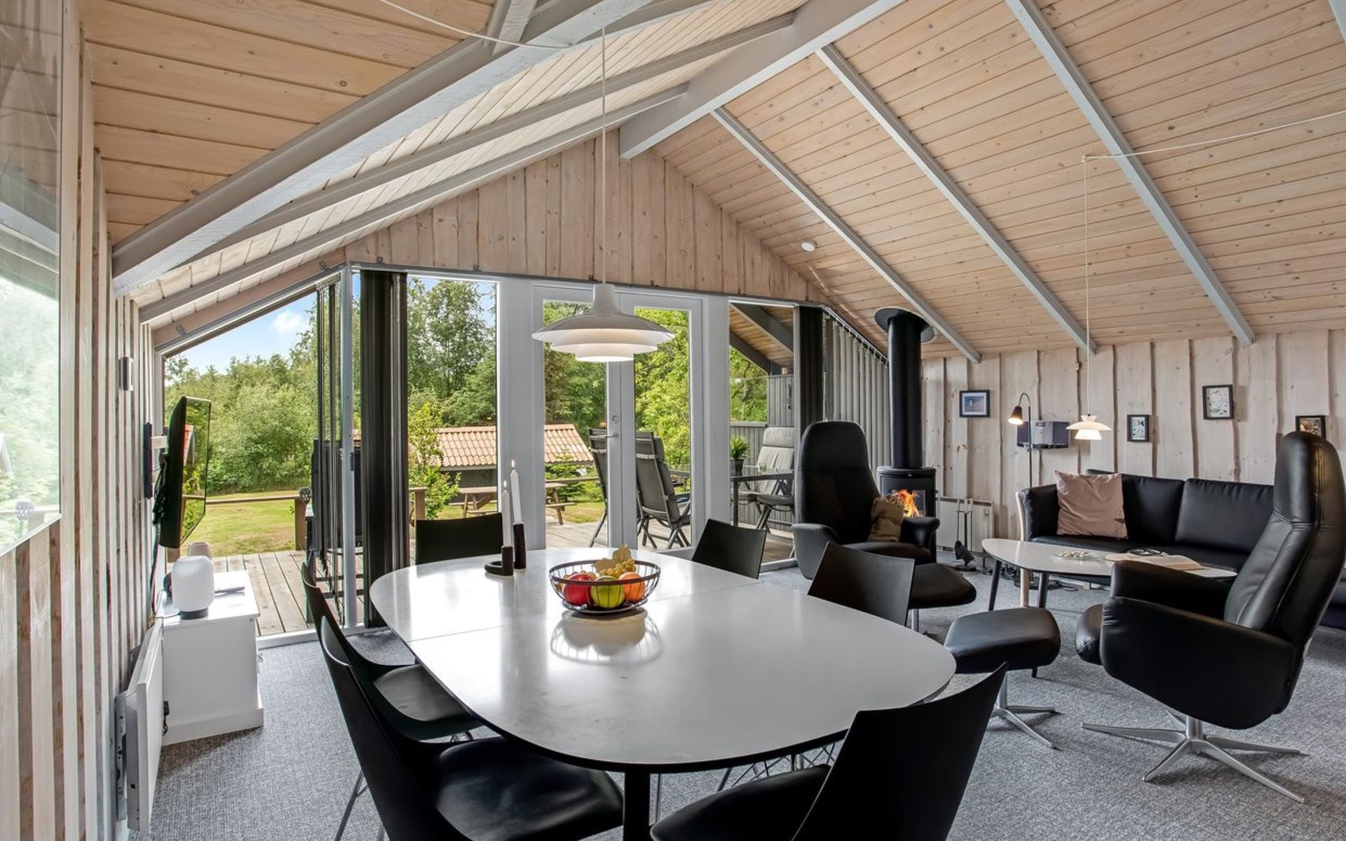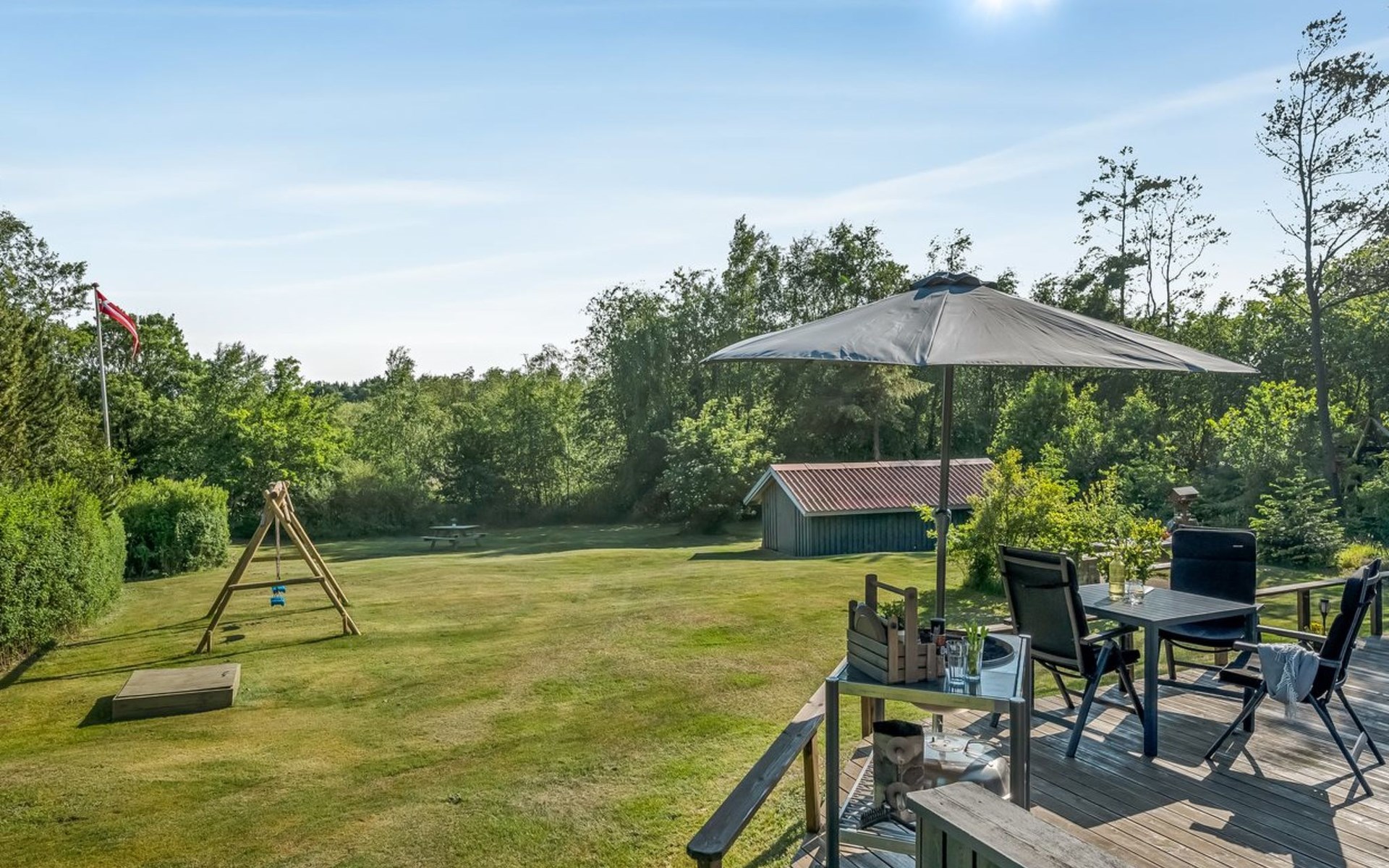 Single-family house, built in 1994. 12 km from the sea. Private: natural state property 1'535 m2. Terrace (45 m2), children's playground (swing). In the house: sauna, washing machine, tumble dryer. Parking at the house. E-charging station. Grocery 600 m. The owner does not accept any youth groups.