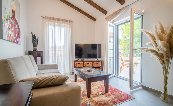 Artatore 7 km from Mali LoĊĦinj: Modern 3-family house "Artatore". In a sunny position, 130 m from the sea, 130 m from the beach. For shared use: property 400 m2. Private: hot tub. In the house: internet access. Parking at the house on the premises. Shop 30 m, restaurant 60 m, bus stop 5 m, sandy beach, pebble beach, concrete beach 130 m.