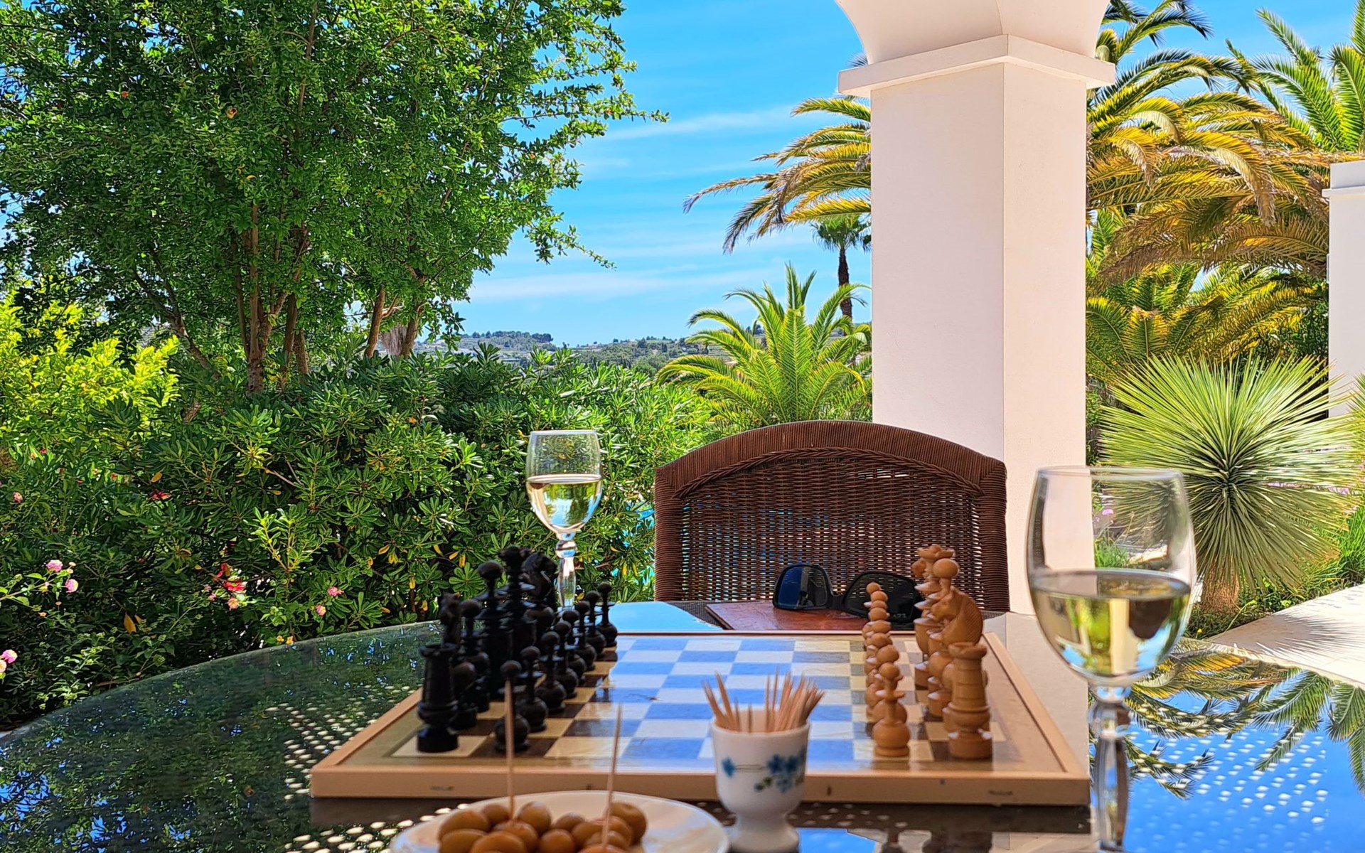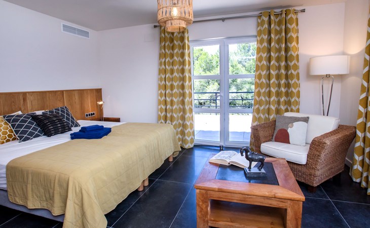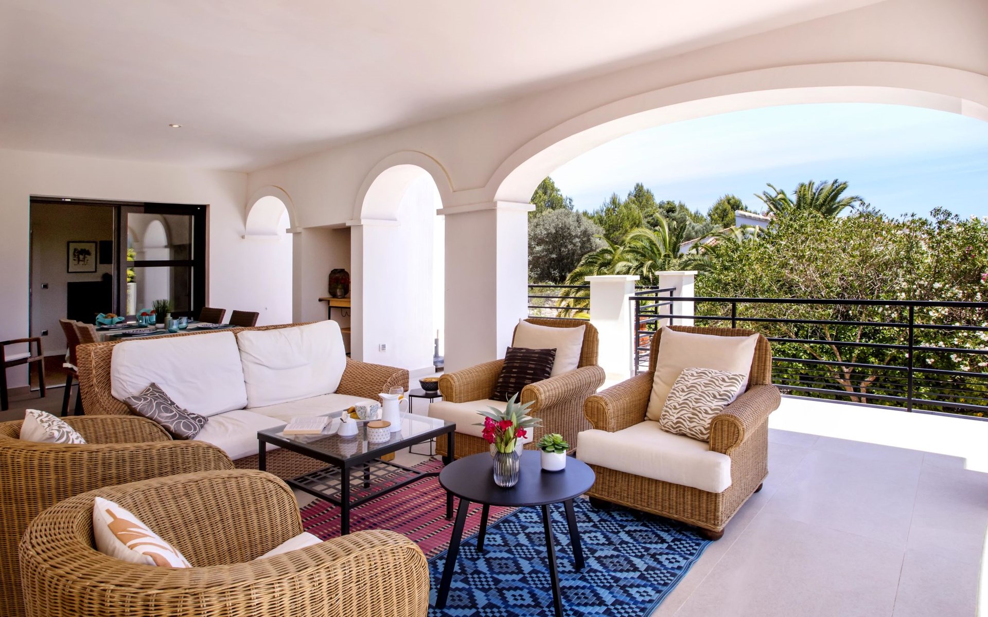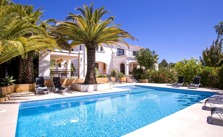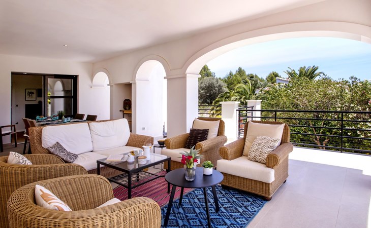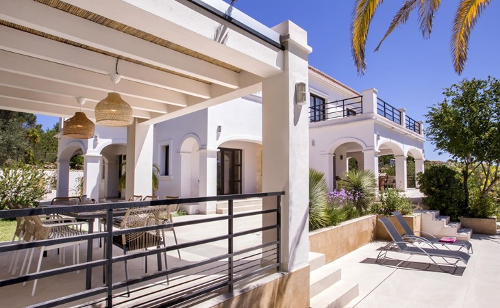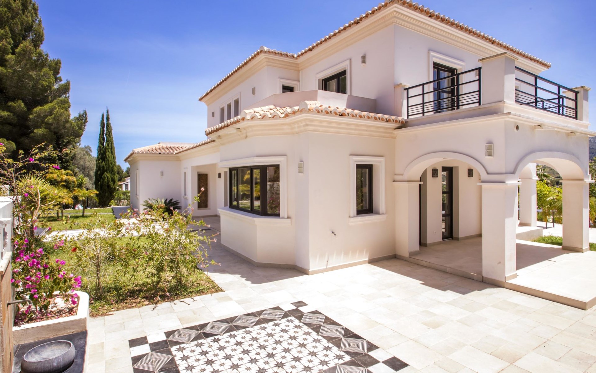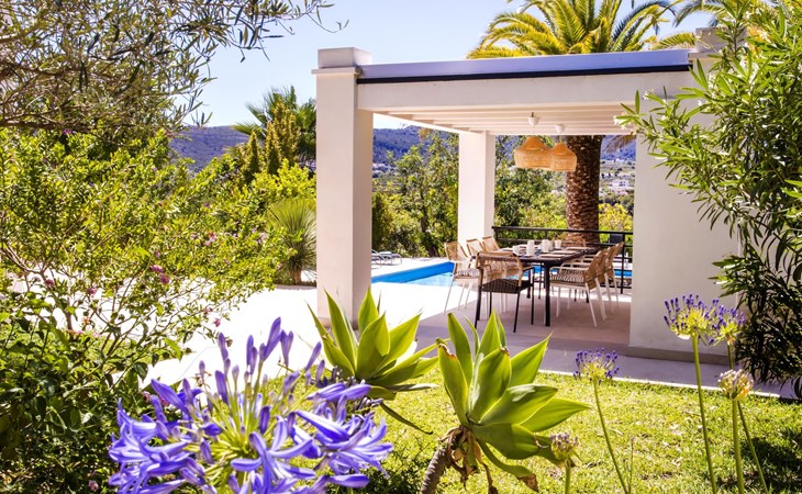 Very large, very modern, very luxurious villa "Almandrina", 2 storeys. In the district of La Lluca, in the resort 7 km from the centre of Javea - El Arenal, in a quiet, sunny position, 25 m from the edge of the forest, 7 km from the sea, 7 km from the beach. Private: property 2'000 m2 (fenced), large, beautiful, well-kept terraced garden with lawn and trees, swimming pool (10 x 5 m, depth 90 - 190 cm, seasonal availability: 01.Jan. - 31.Dec.) with internal staircase. Unconventional pool shape. Paddling pool, outdoor shower, pool house with fridge and cooking stove, pergola, garden furniture, barbecue house. In the house: air conditioning, laundry, washing machine. Parking on the premises, single garage. Shop 9 km, supermarket 2 km, shopping centre 20 km, restaurant 3 km, café 3 km, internet café 7 km, bus stop 7 km, sandy beach "Playa del Arenal" 7 km, shingle beach "Playa de Portitchol" 13 km, diving center 7 km. Sports harbour 7 km, golf course (9 hole) 2 km, surf school 7 km, sailing school 7 km, tennis 3 km, riding stable 10 km. Nearby attractions: Aqualandia Benidorm 40 km, Oceanografico Valencia 110 km. Hiking paths: Portichol 10 km. The owner does not accept any youth groups. Neighbourhood highly sensitive to noise. Quietness and good behaviour expected.
