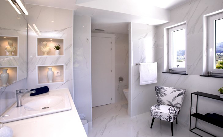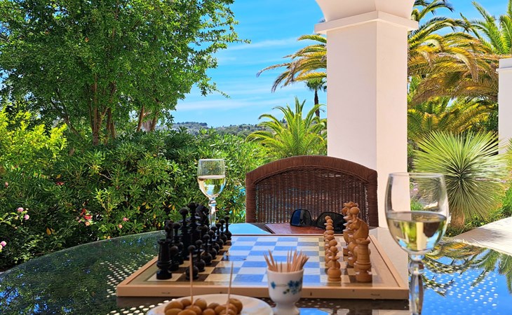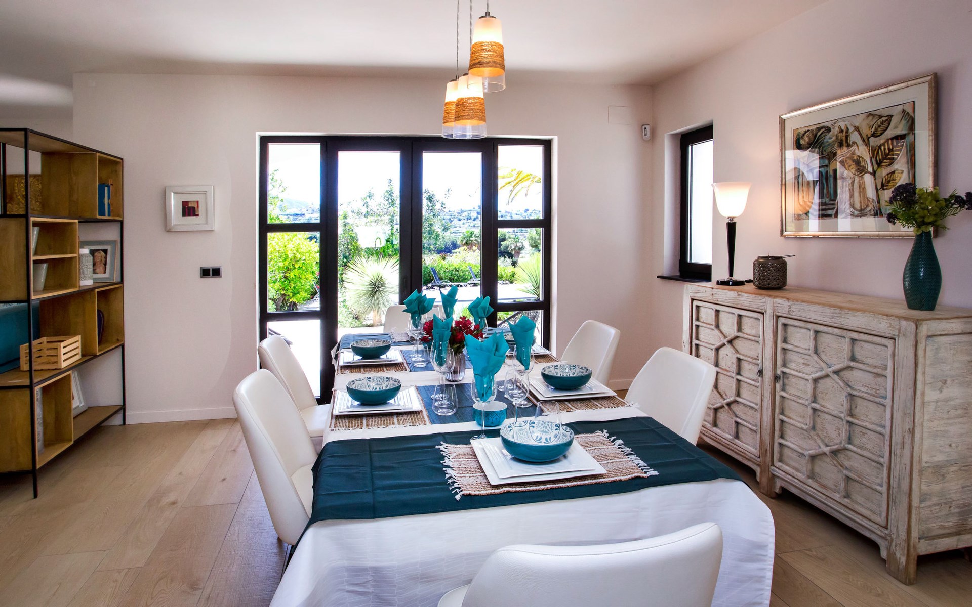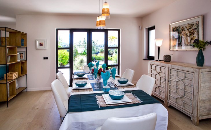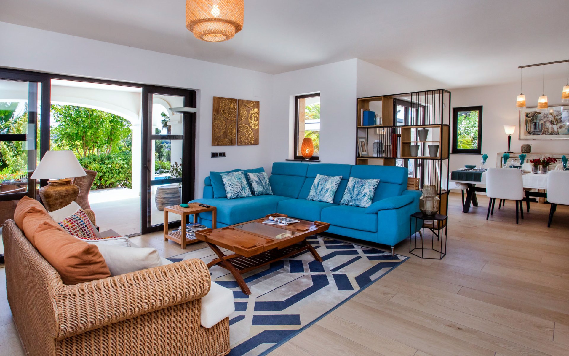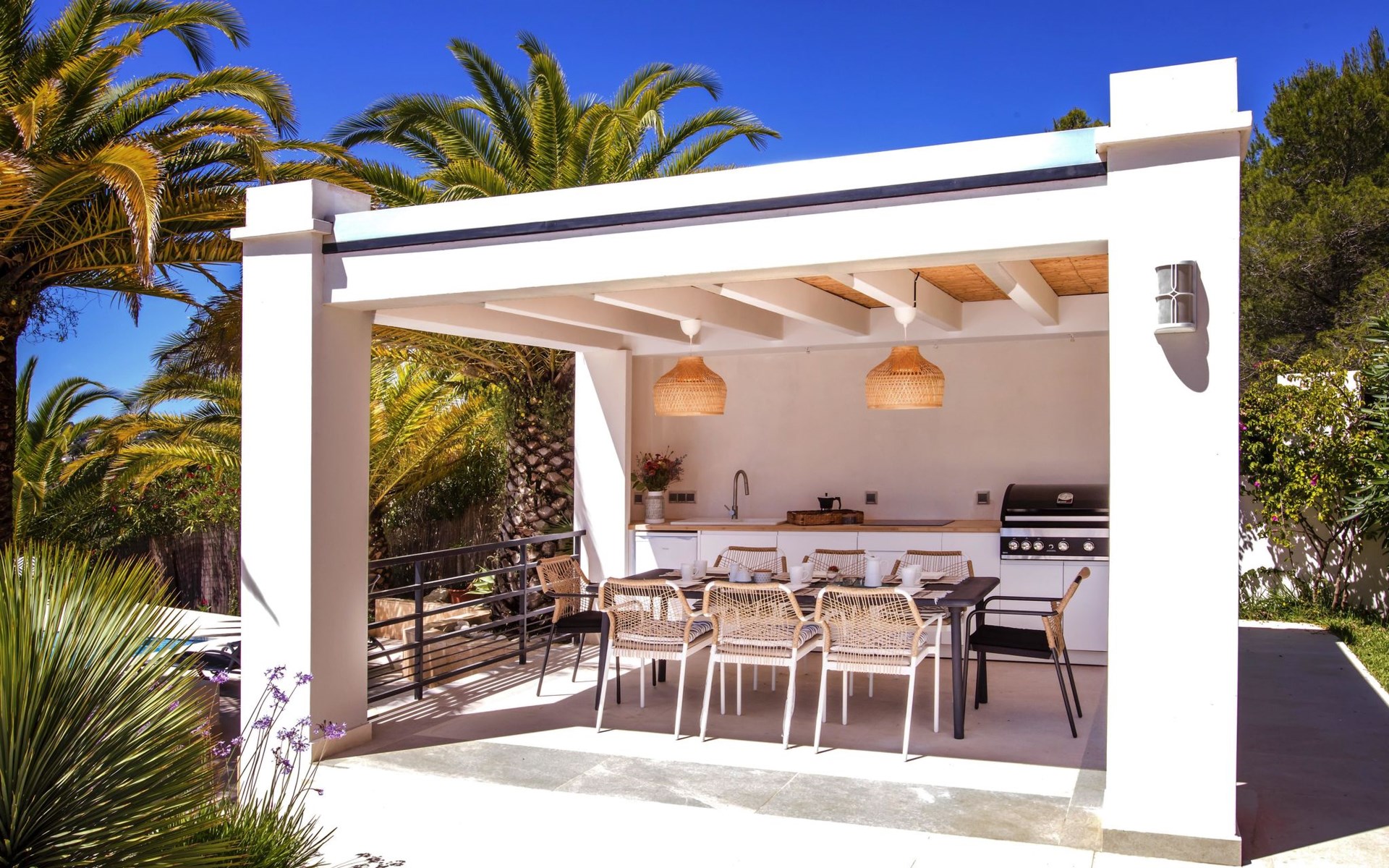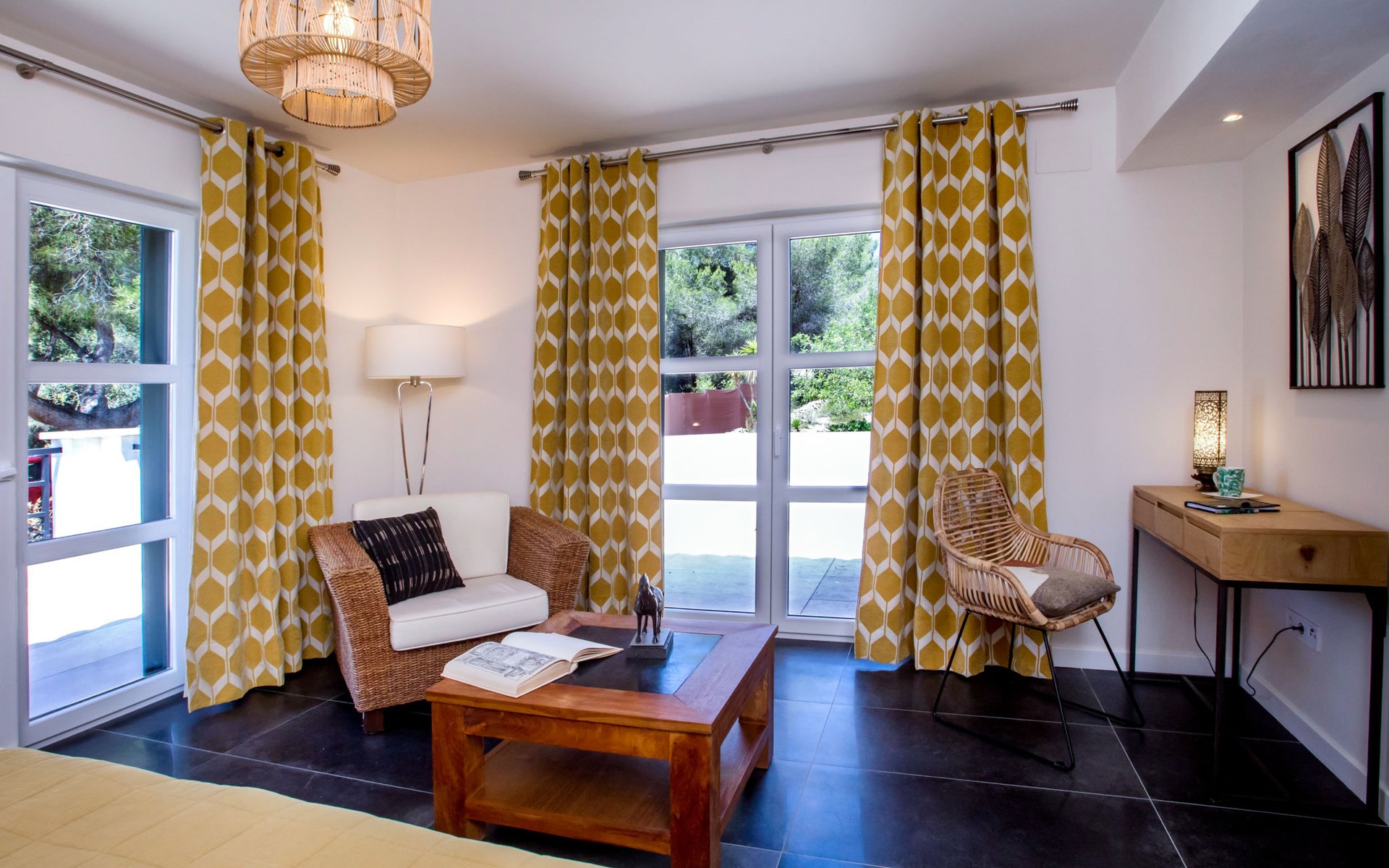 Very large, very modern, very luxurious villa "Almandrina", 2 storeys. In the district of La Lluca, in the resort 7 km from the centre of Javea - El Arenal, in a quiet, sunny position, 25 m from the edge of the forest, 7 km from the sea, 7 km from the beach. Private: property 2'000 m2 (fenced), large, beautiful, well-kept terraced garden with lawn and trees, swimming pool (10 x 5 m, depth 90 - 190 cm, seasonal availability: 01.Jan. - 31.Dec.) with internal staircase. Unconventional pool shape. Paddling pool, outdoor shower, pool house with fridge and cooking stove, pergola, garden furniture, barbecue house. In the house: air conditioning, laundry, washing machine. Parking on the premises, single garage. Shop 9 km, supermarket 2 km, shopping centre 20 km, restaurant 3 km, café 3 km, internet café 7 km, bus stop 7 km, sandy beach "Playa del Arenal" 7 km, shingle beach "Playa de Portitchol" 13 km, diving center 7 km. Sports harbour 7 km, golf course (9 hole) 2 km, surf school 7 km, sailing school 7 km, tennis 3 km, riding stable 10 km. Nearby attractions: Aqualandia Benidorm 40 km, Oceanografico Valencia 110 km. Hiking paths: Portichol 10 km. The owner does not accept any youth groups. Neighbourhood highly sensitive to noise. Quietness and good behaviour expected.
