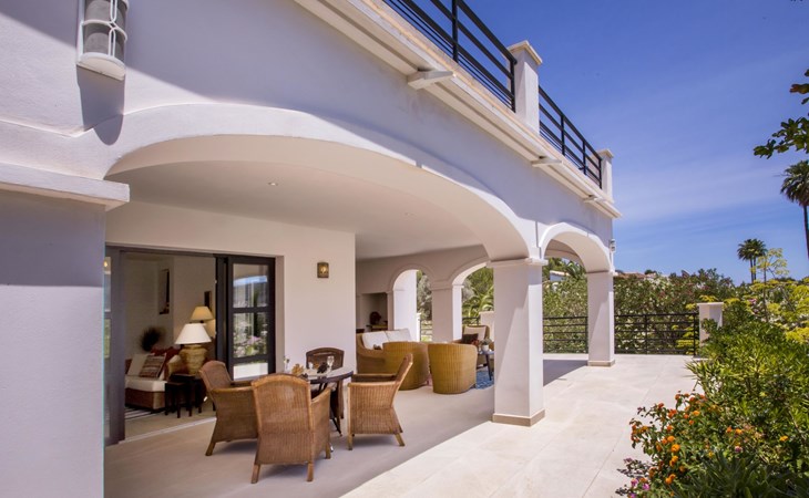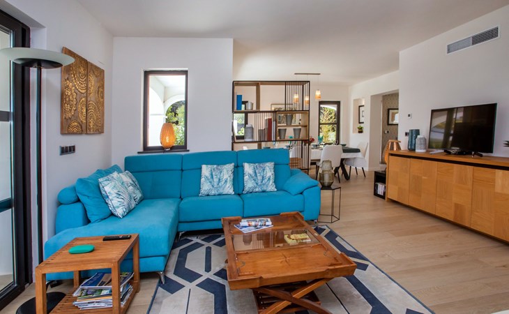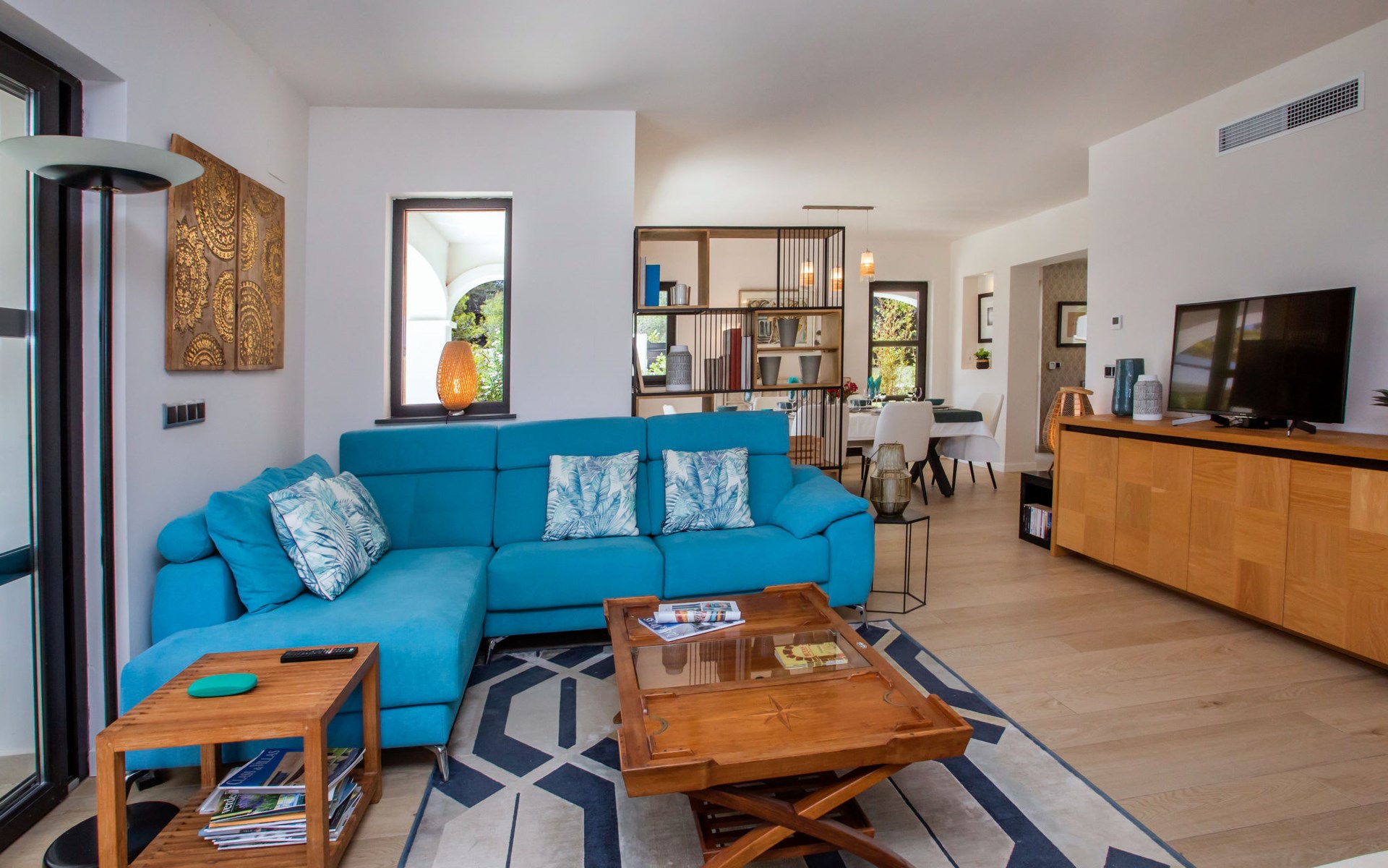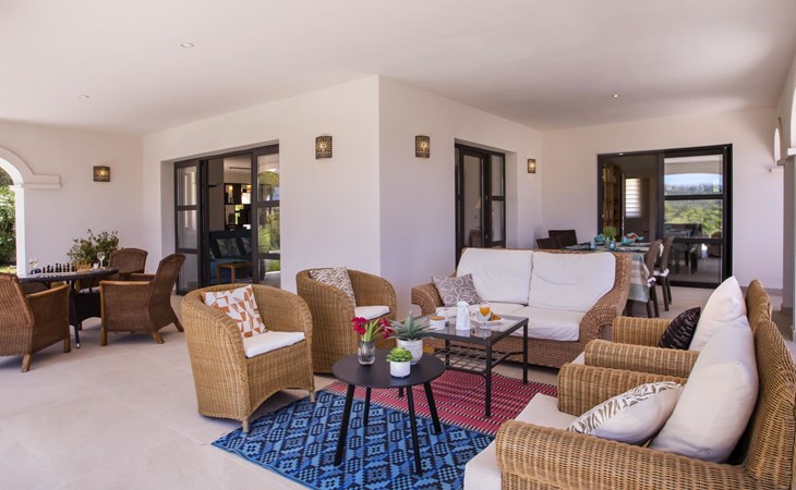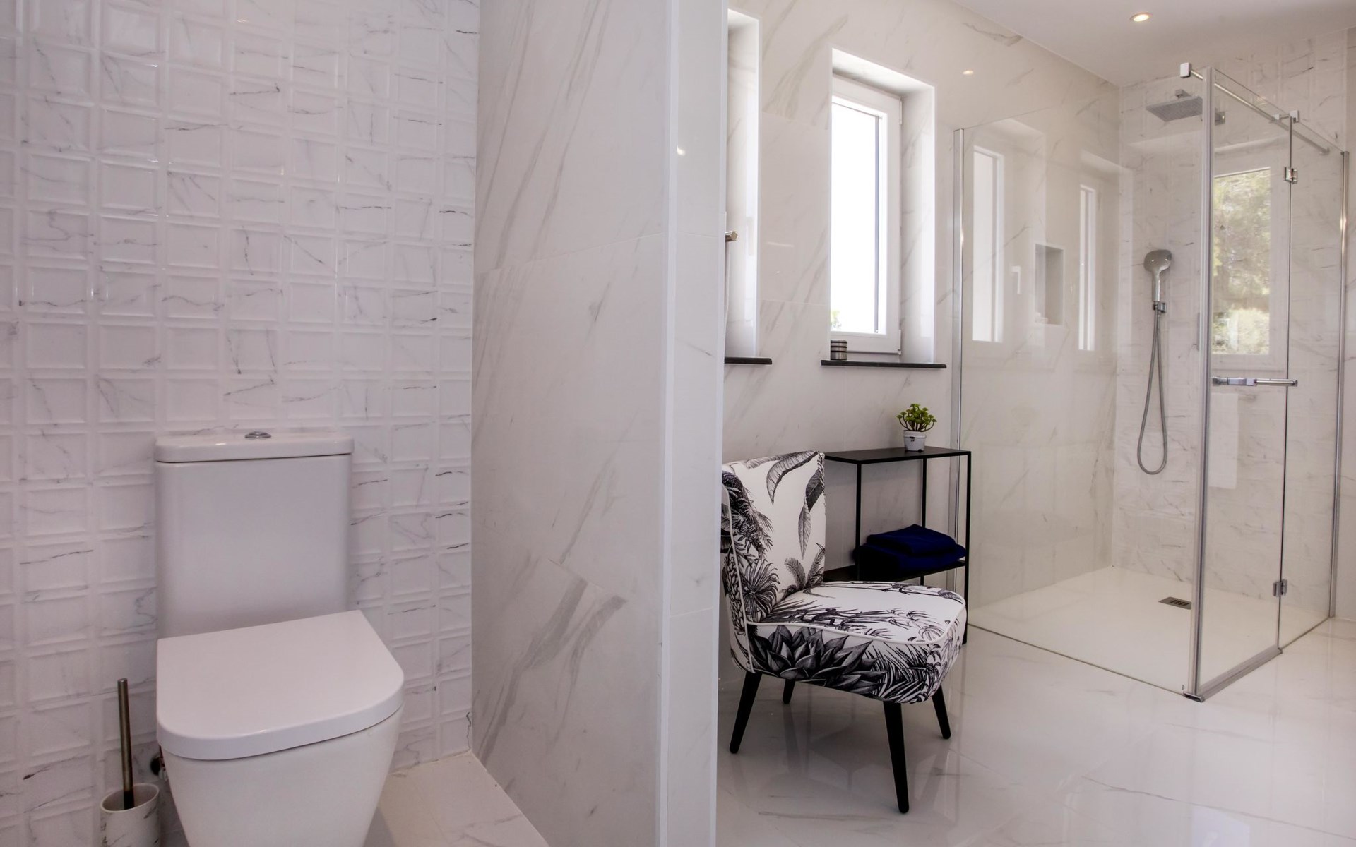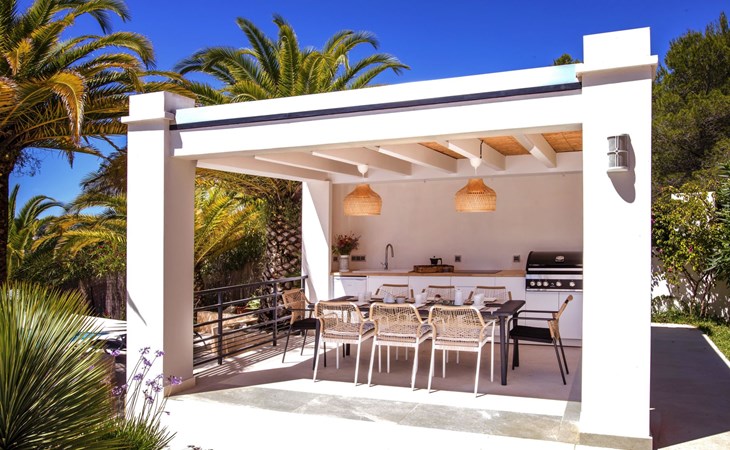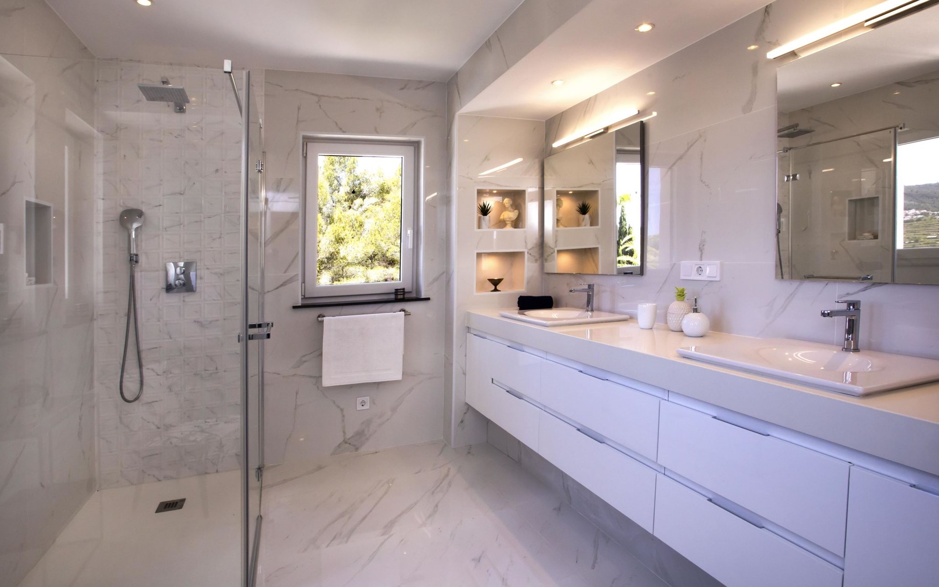 Very large, very modern, very luxurious villa "Almandrina", 2 storeys. In the district of La Lluca, in the resort 7 km from the centre of Javea - El Arenal, in a quiet, sunny position, 25 m from the edge of the forest, 7 km from the sea, 7 km from the beach. Private: property 2'000 m2 (fenced), large, beautiful, well-kept terraced garden with lawn and trees, swimming pool (10 x 5 m, depth 90 - 190 cm, seasonal availability: 01.Jan. - 31.Dec.) with internal staircase. Unconventional pool shape. Paddling pool, outdoor shower, pool house with fridge and cooking stove, pergola, garden furniture, barbecue house. In the house: air conditioning, laundry, washing machine. Parking on the premises, single garage. Shop 9 km, supermarket 2 km, shopping centre 20 km, restaurant 3 km, café 3 km, internet café 7 km, bus stop 7 km, sandy beach "Playa del Arenal" 7 km, shingle beach "Playa de Portitchol" 13 km, diving center 7 km. Sports harbour 7 km, golf course (9 hole) 2 km, surf school 7 km, sailing school 7 km, tennis 3 km, riding stable 10 km. Nearby attractions: Aqualandia Benidorm 40 km, Oceanografico Valencia 110 km. Hiking paths: Portichol 10 km. The owner does not accept any youth groups. Neighbourhood highly sensitive to noise. Quietness and good behaviour expected.