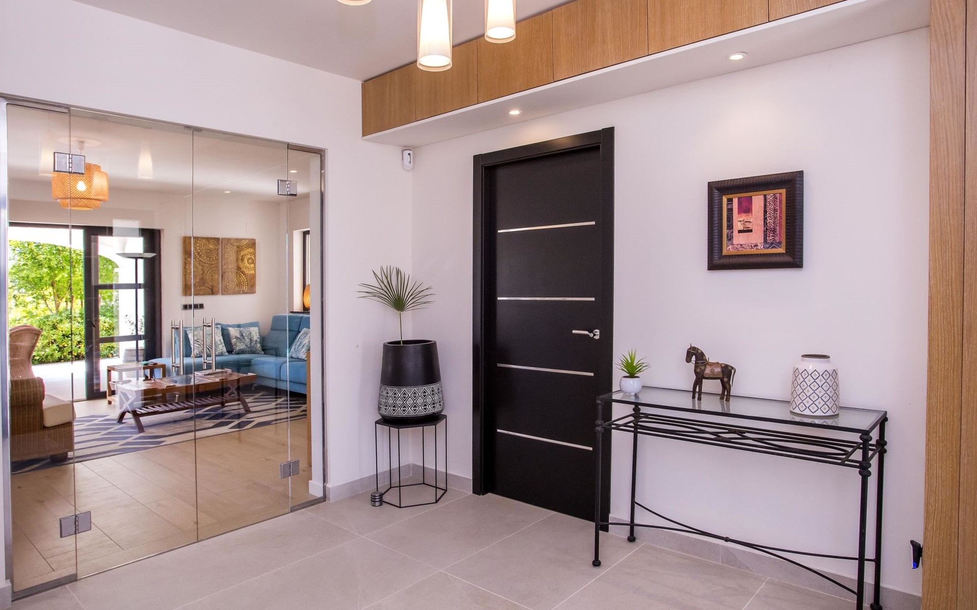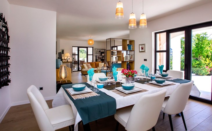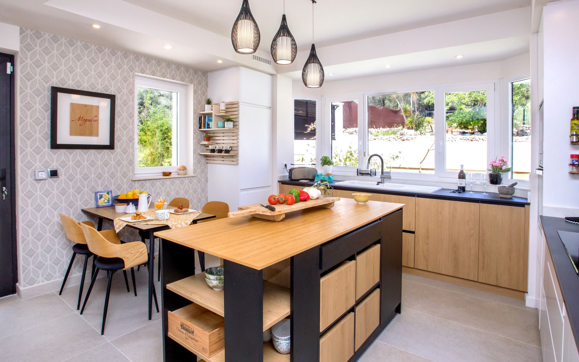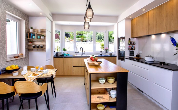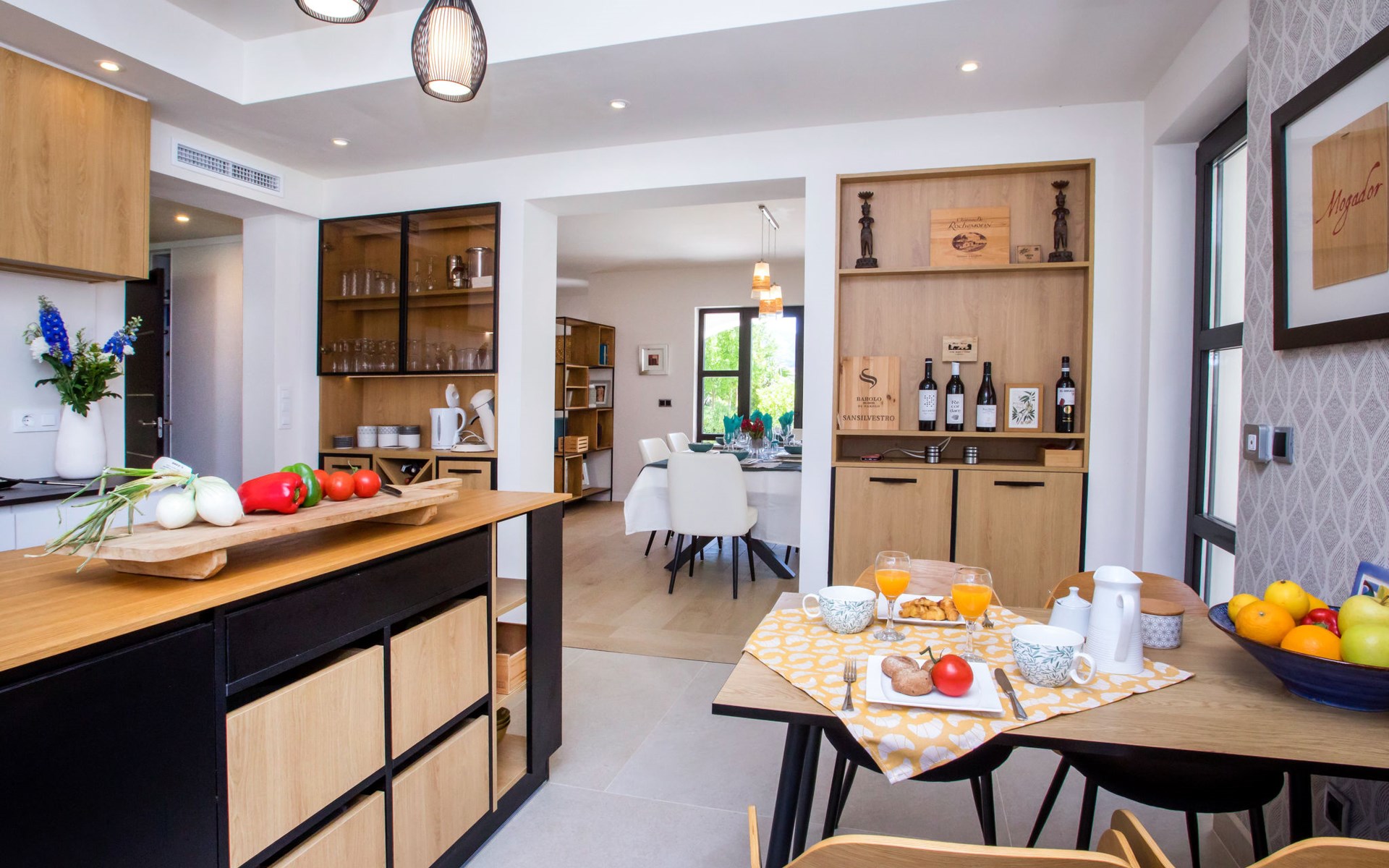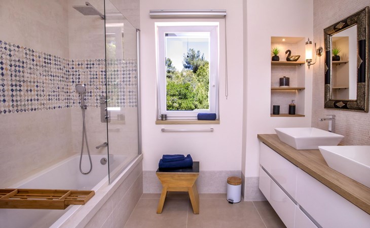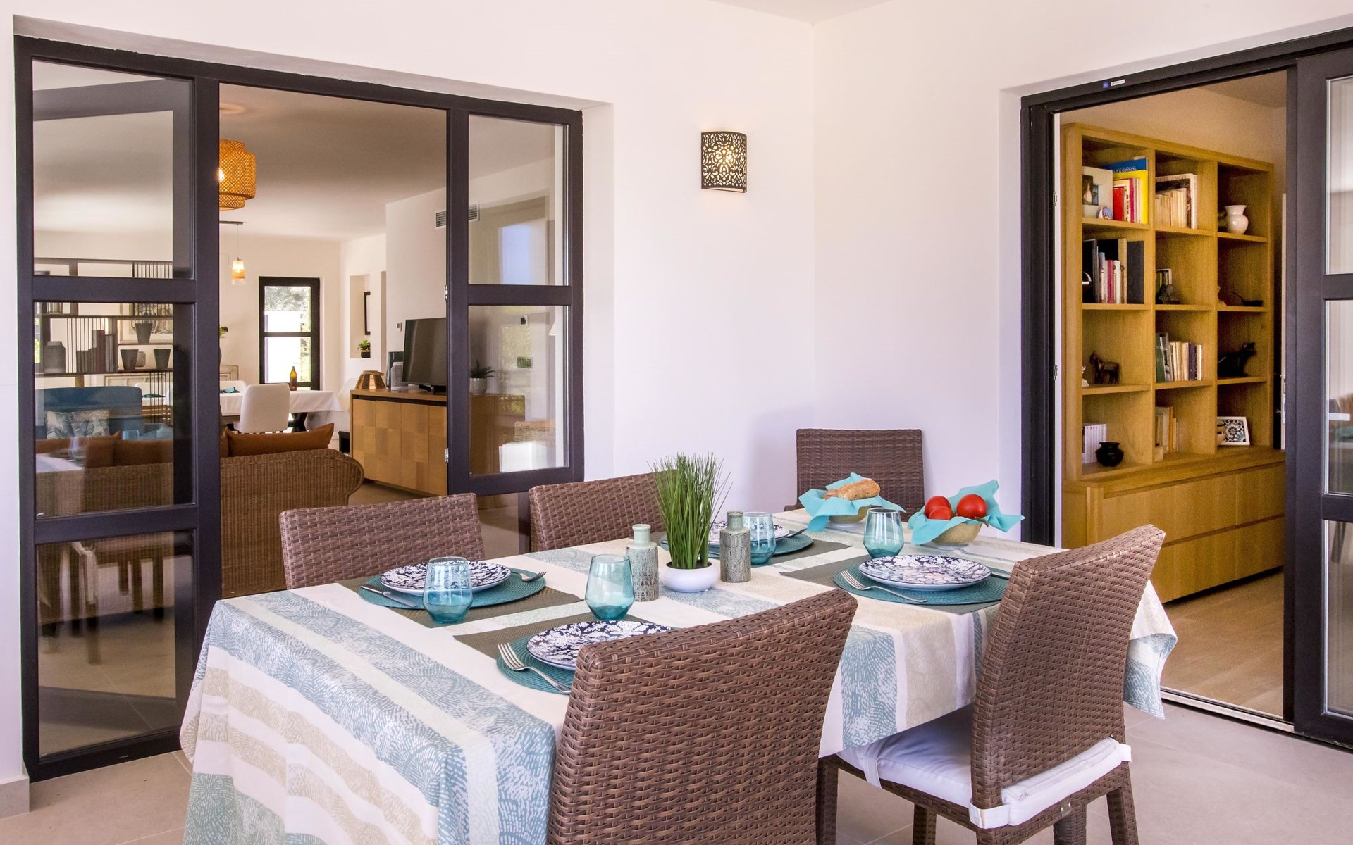Very large, very modern, very luxurious villa "Almandrina", 2 storeys. In the district of La Lluca, in the resort 7 km from the centre of Javea - El Arenal, in a quiet, sunny position, 25 m from the edge of the forest, 7 km from the sea, 7 km from the beach. Private: property 2'000 m2 (fenced), large, beautiful, well-kept terraced garden with lawn and trees, swimming pool (10 x 5 m, depth 90 - 190 cm, seasonal availability: 01.Jan. - 31.Dec.) with internal staircase. Unconventional pool shape. Paddling pool, outdoor shower, pool house with fridge and cooking stove, pergola, garden furniture, barbecue house. In the house: air conditioning, laundry, washing machine. Parking on the premises, single garage. Shop 9 km, supermarket 2 km, shopping centre 20 km, restaurant 3 km, café 3 km, internet café 7 km, bus stop 7 km, sandy beach "Playa del Arenal" 7 km, shingle beach "Playa de Portitchol" 13 km, diving center 7 km. Sports harbour 7 km, golf course (9 hole) 2 km, surf school 7 km, sailing school 7 km, tennis 3 km, riding stable 10 km. Nearby attractions: Aqualandia Benidorm 40 km, Oceanografico Valencia 110 km. Hiking paths: Portichol 10 km. The owner does not accept any youth groups. Neighbourhood highly sensitive to noise. Quietness and good behaviour expected.
