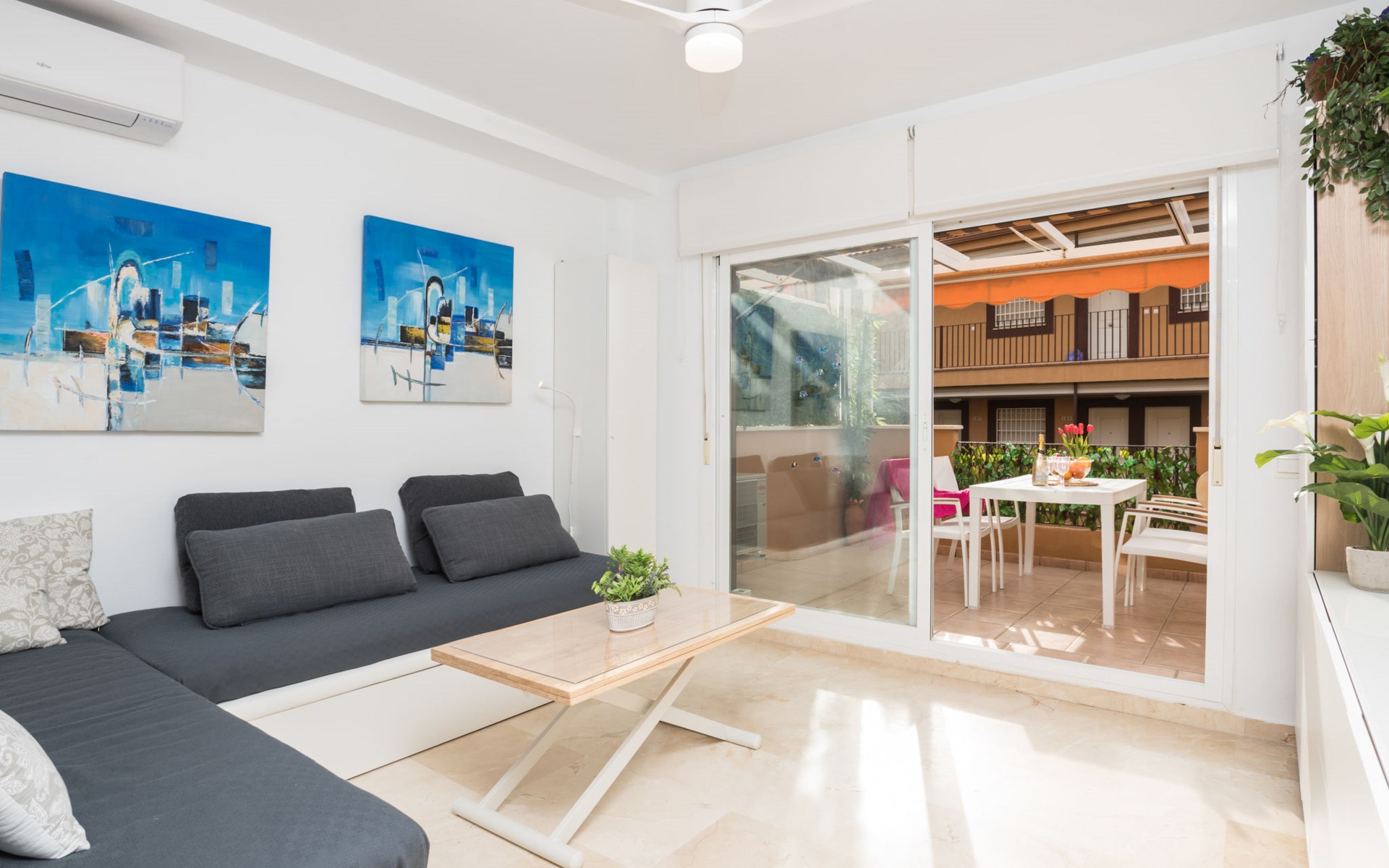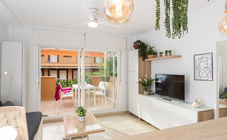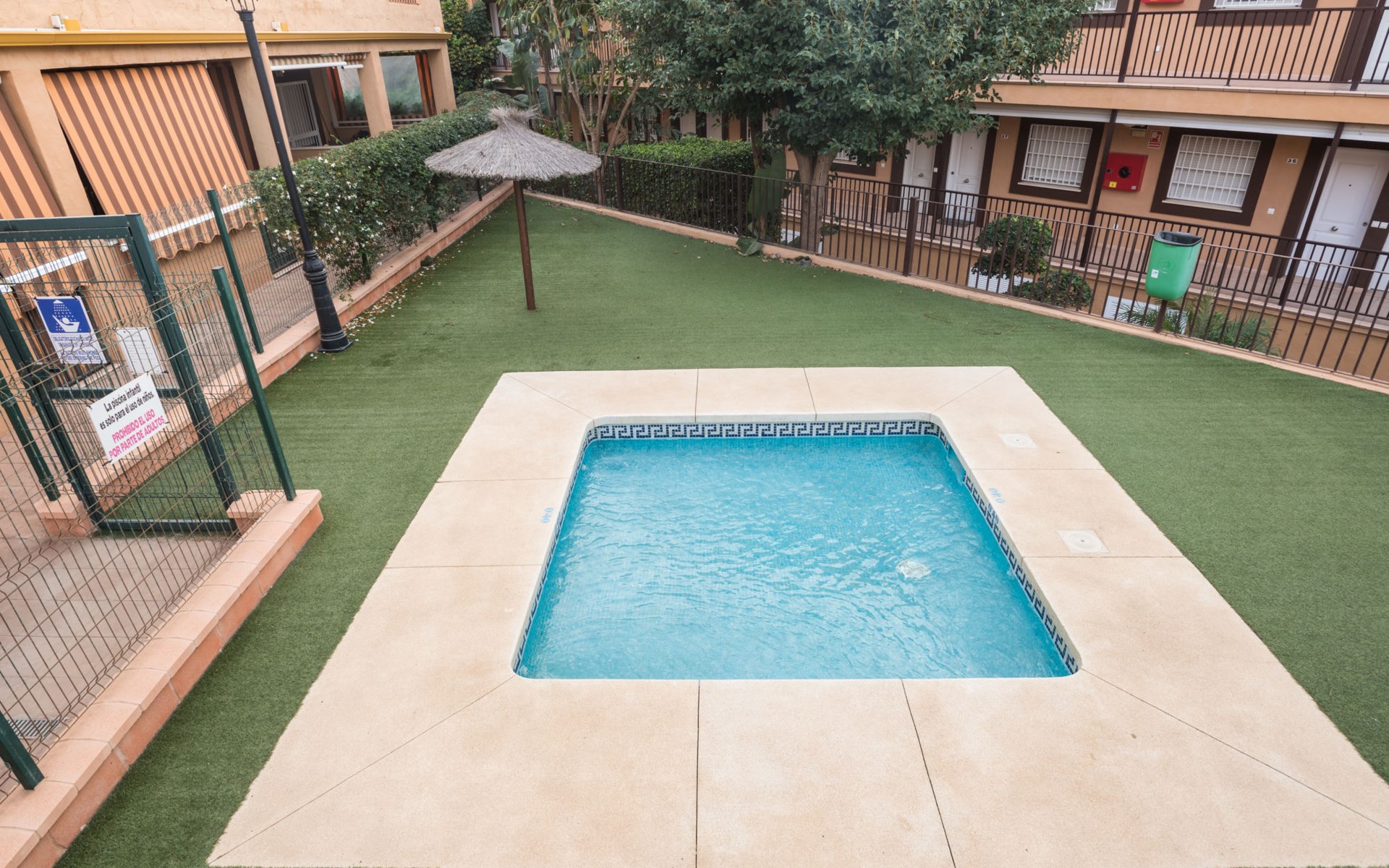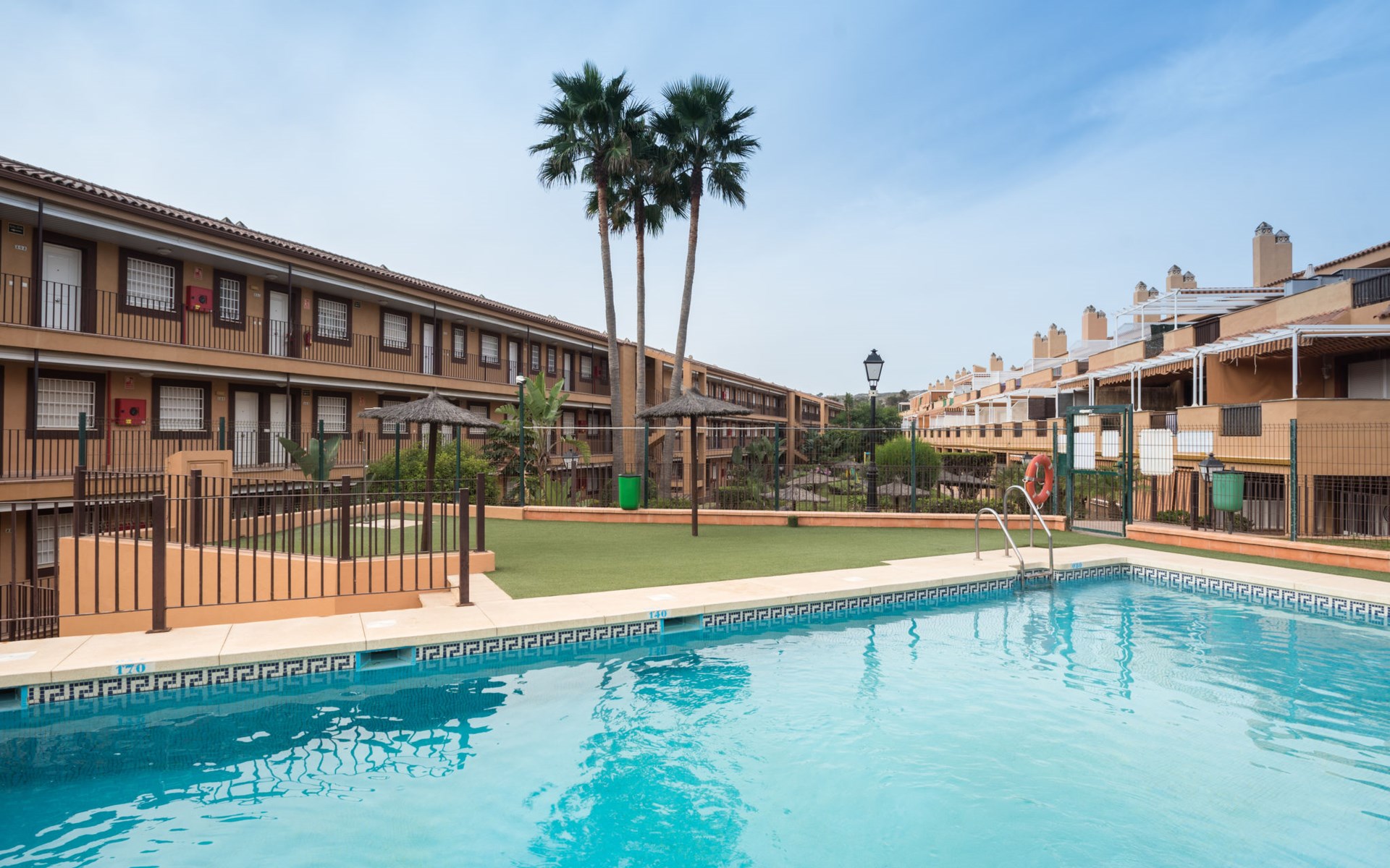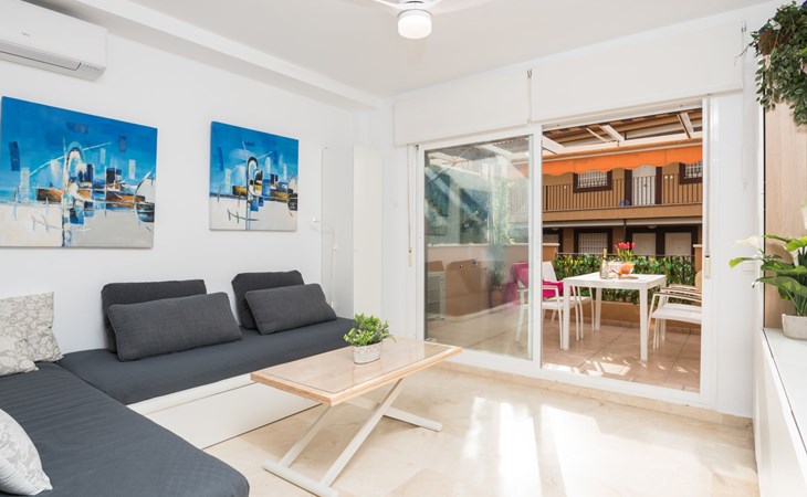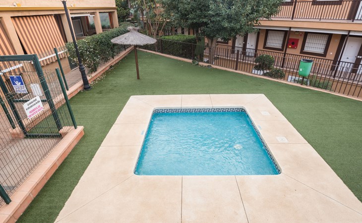 Casares Beach: Beautiful, comfortable apartment block "Casares Beach". 10 km from the centre of Estepona, 1 km from the centre of Sabinillas, outside the resort, in a sunny position, 100 m from the sea, from the beach. For shared use: garden, swimming pool angular fenced (depth 100 - 170 cm, seasonal availability: 01.Jul. - 30.Sep.). Shower/WC in the pool area. In the house: washing machine. Parking, public parking 60 m on the road. Supermarket 1 km, restaurant, bar, pub garden 100 m, bus stop "Cruce Casares" 1.1 km. Sports harbour 9 km, golf course (18 hole) 2.5 km, tennis 500 m. Nearby attractions: Estepona Old town 11 km, Sotogrande 13 km, Selwo Park 20 m. Please note: car recommended, no lift. The owner does not accept any groups. The owner does not accept any youth groups. Neighbourhood highly sensitive to noise. Quietness and good behaviour expected.