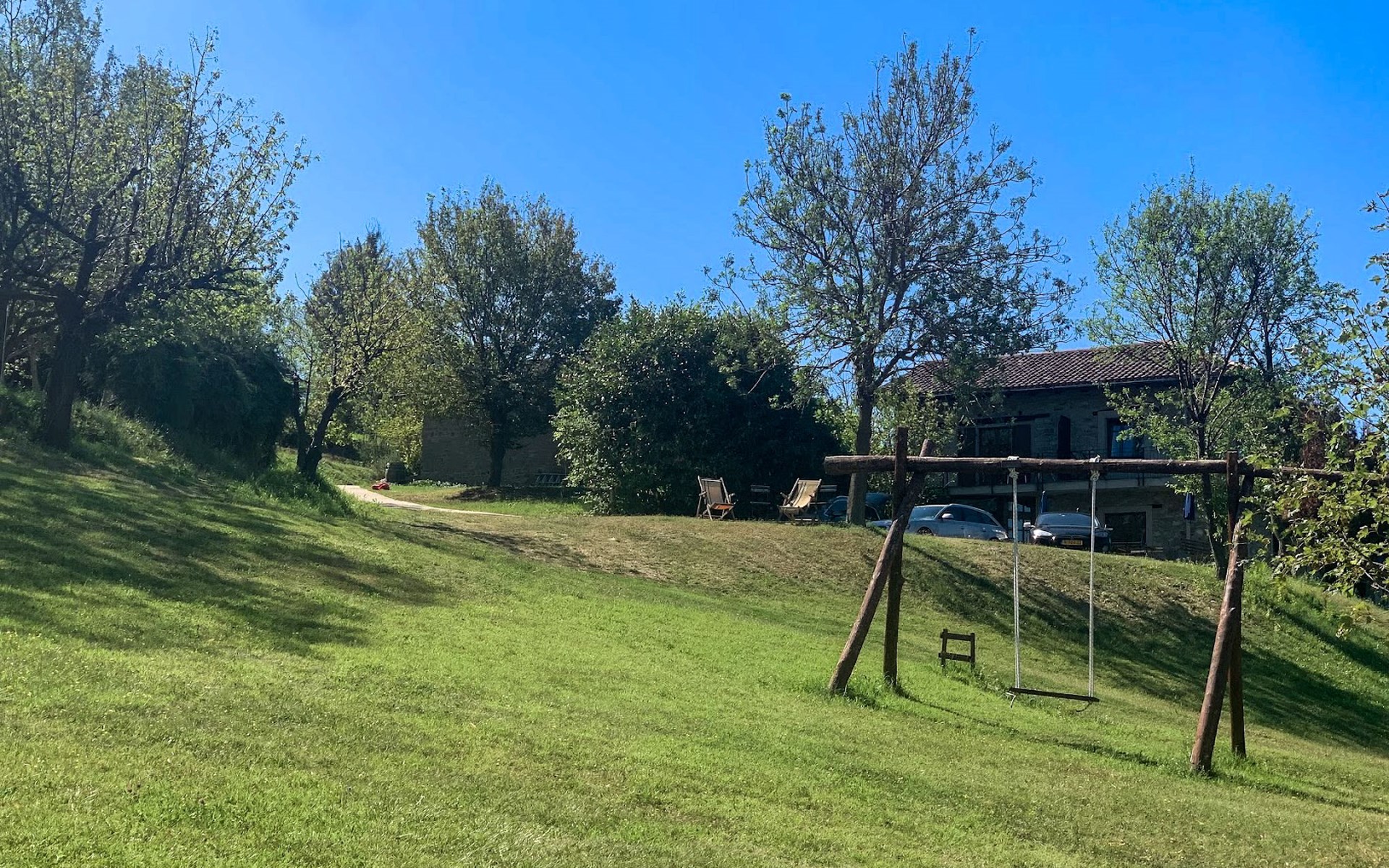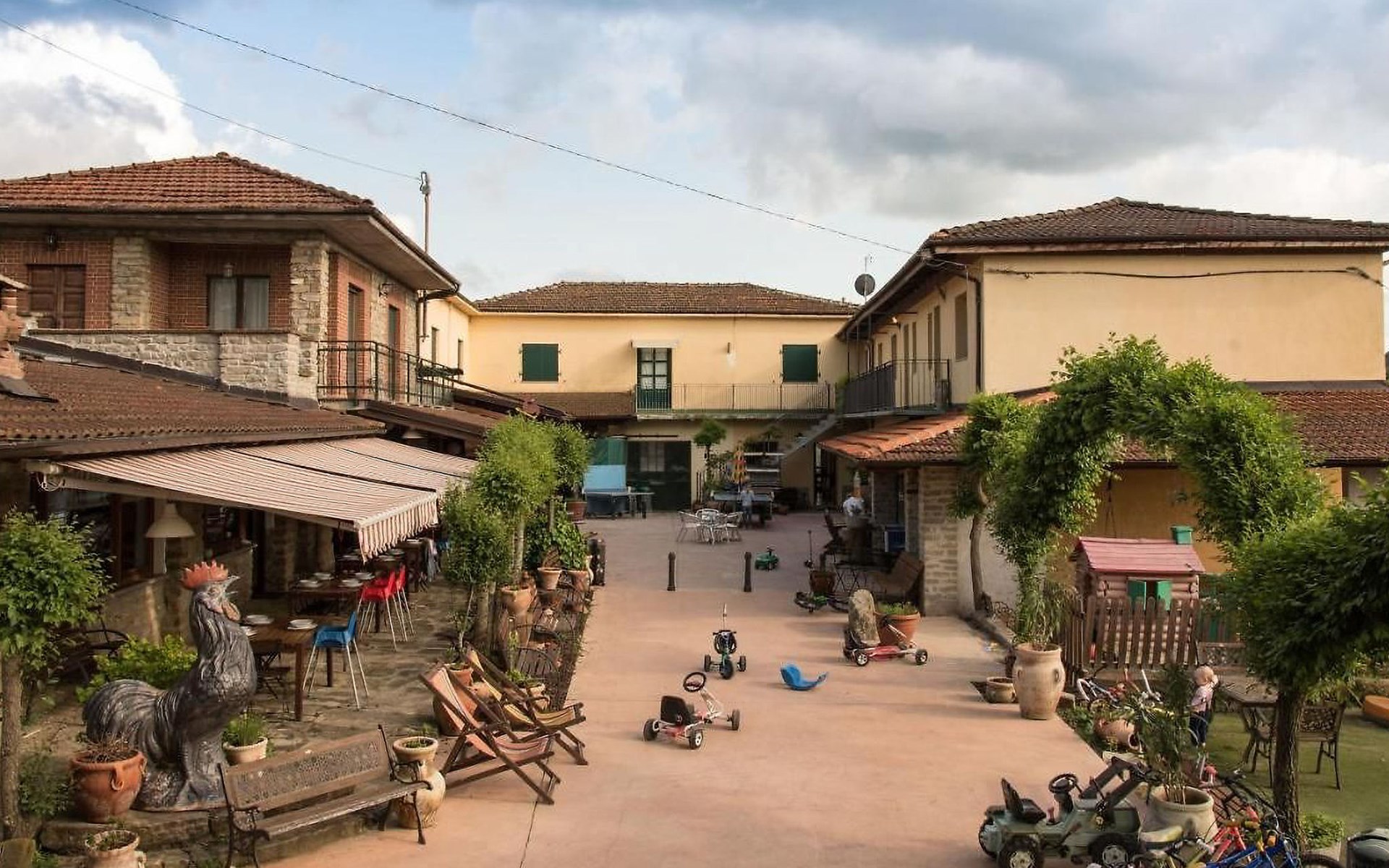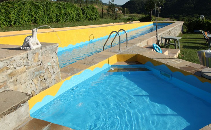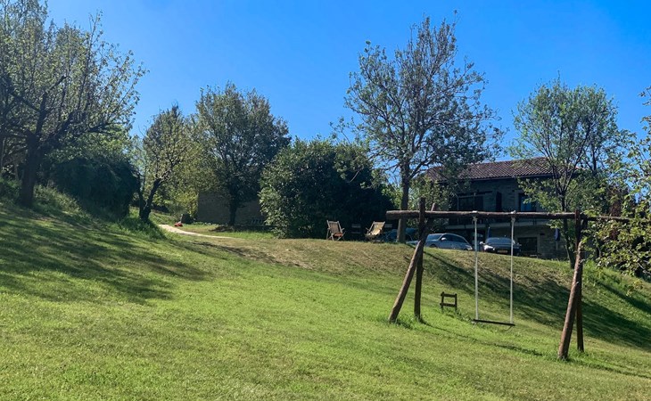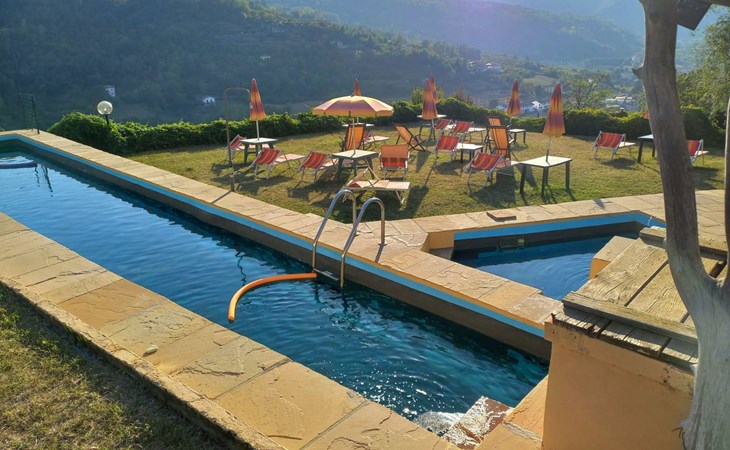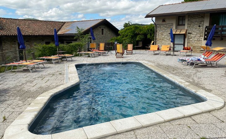 Agriturismo "Il Gallo". Above Cortemilia, 3.5 km from the centre, on top of a hill, in the woods. For shared use: property 20'000 m2, plants and flowers, courtyard, 2 swimming pools (18 x 3 m, depth 80 - 140 cm, seasonal availability: 15.May. - 31.Oct.). Children's playground (slide, swing, sandbox). In the house: restaurant, bar, breakfast room, lounge (all extra), table tennis, washing machine (extra). Breakfast full board half board possible on request (extra). Parking at the house. Supermarket 3.2 km, restaurant, bar, café 5 m, bus stop 3.1 km. Nearby attractions: Alba 35 km, Savona (Liguria) 60 km. Please note: car recommended. Suitable for families. Owner lives in separate semi-detached house. Animals in the neighbourhood.