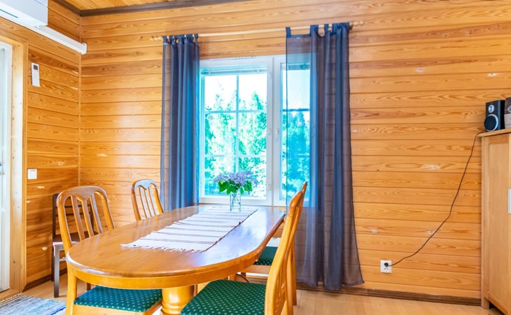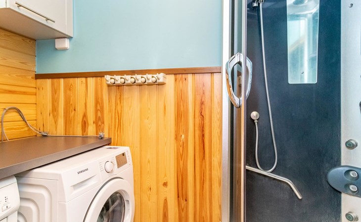 Wooden villa 2009, living room, kitchen, two bedrooms with double bed in each, sauna with wood heated stove, walk-in shower in wash-/utility room, washing machine and tumble-dryer, toilet, terrace.