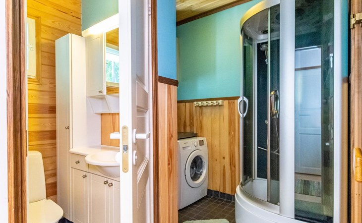 Separate lakeside sauna 2006 with wood heated stove, wood-heated water tank, dressing room, terrace, electric lighting. Waterpipe from the lake. Lakeside sauna is available during 1.5. - 30.10.