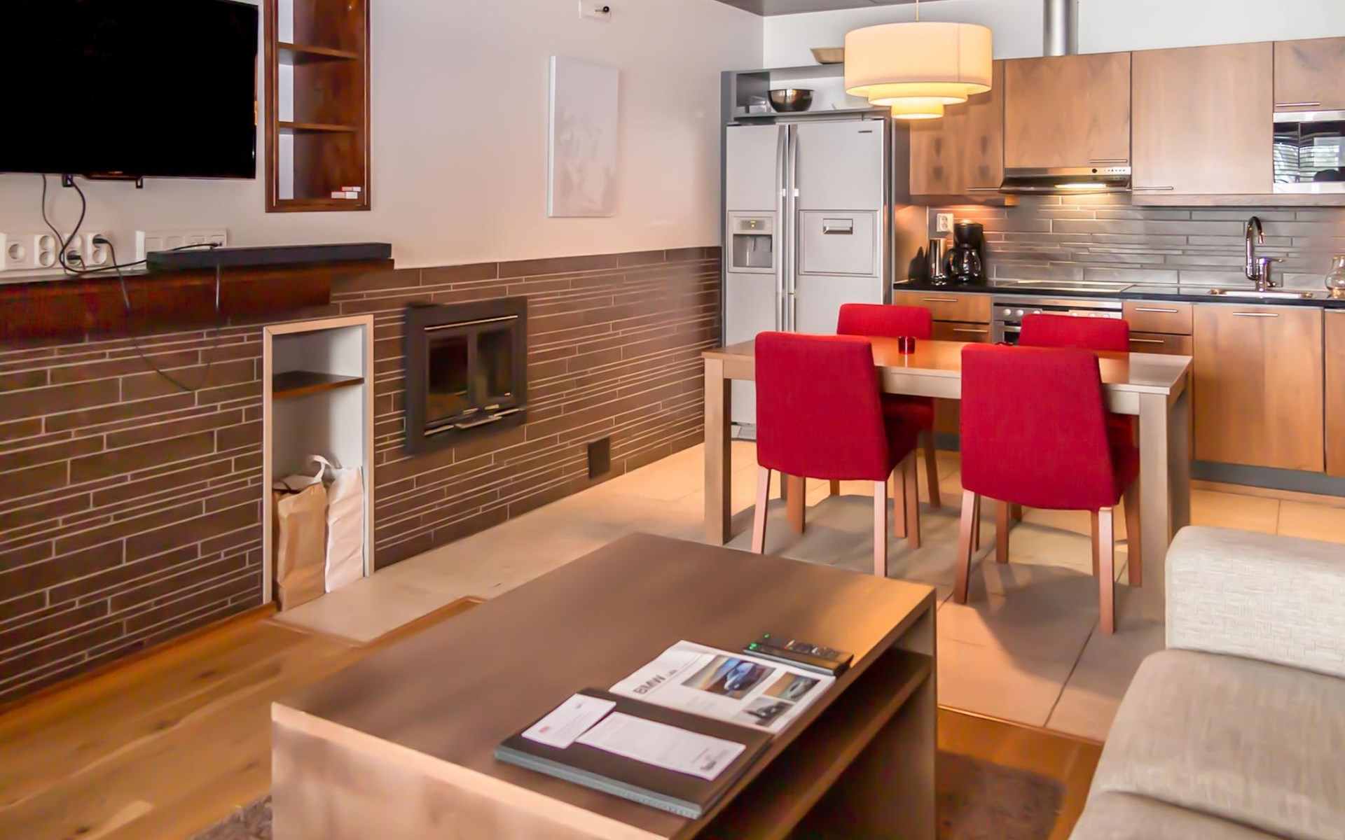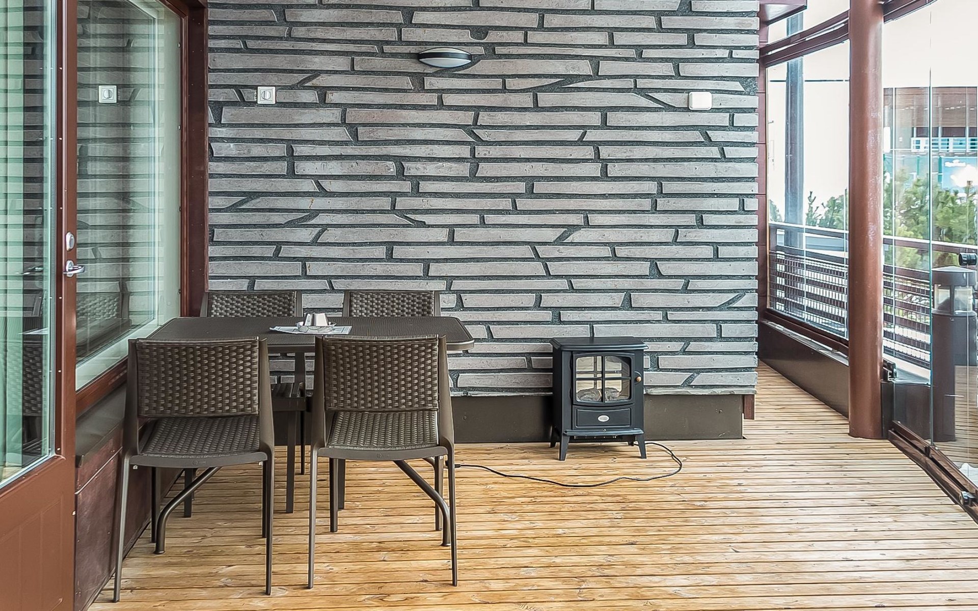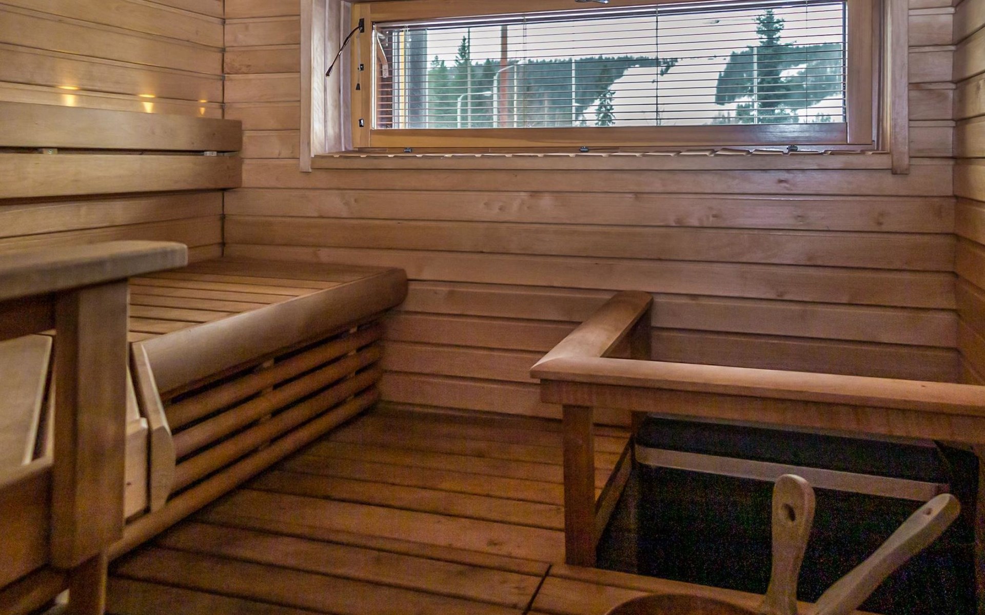 Apartment has sauna with electric stove of the ‘ever-ready’ type, washing room with shower and WC. Final cleaning and bed linen are included in the price. The fireplace in the apartment in not in use.