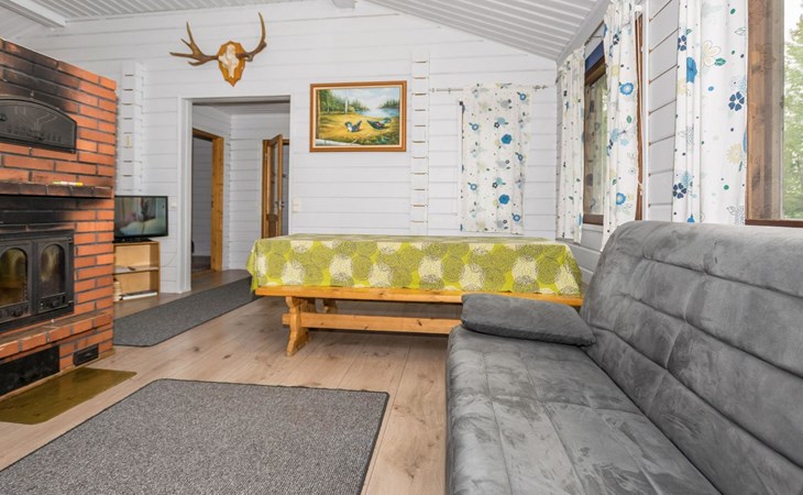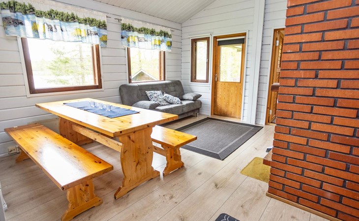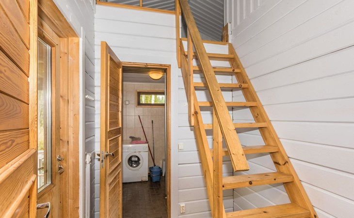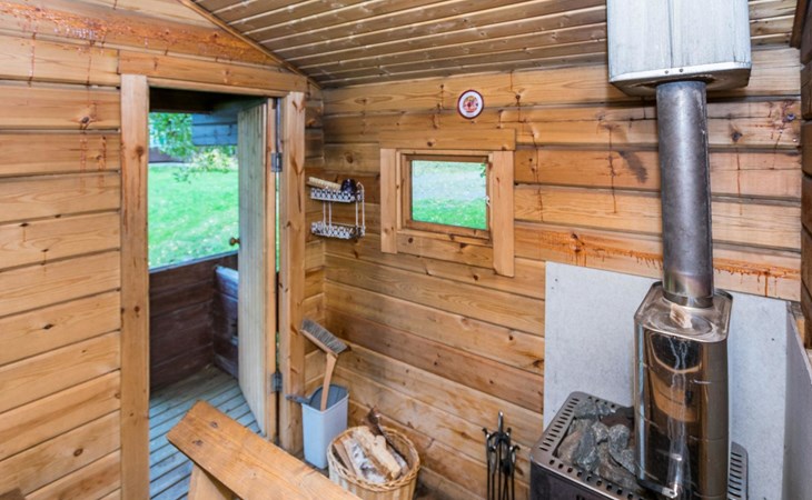 Log cabin 1993, renovated 2012, kitchen, living room, 2 bedrooms; both with double bed. Sleeping loft with 2 mattresses, washroom, dressing room, sauna (electric stove), open veranda.
