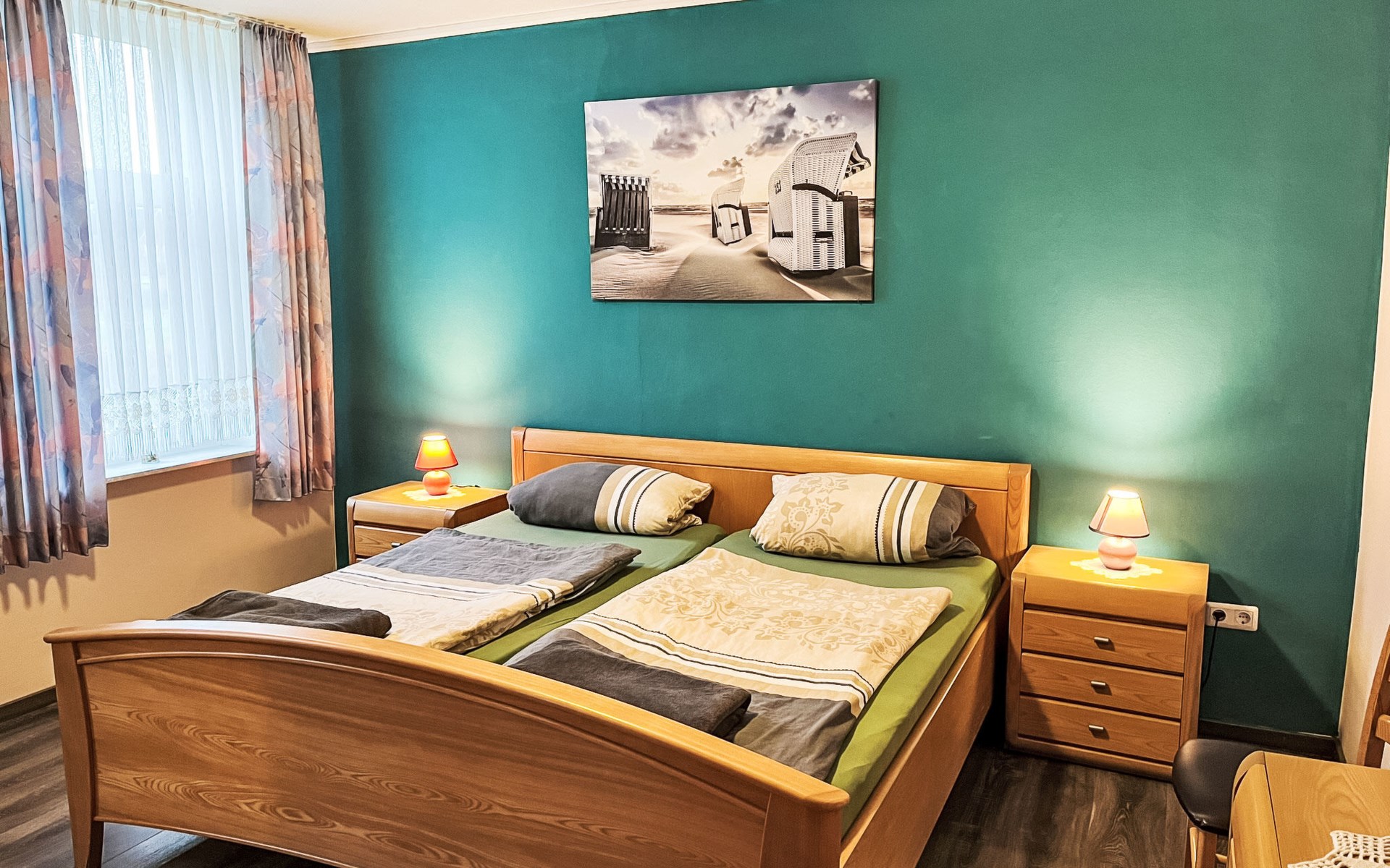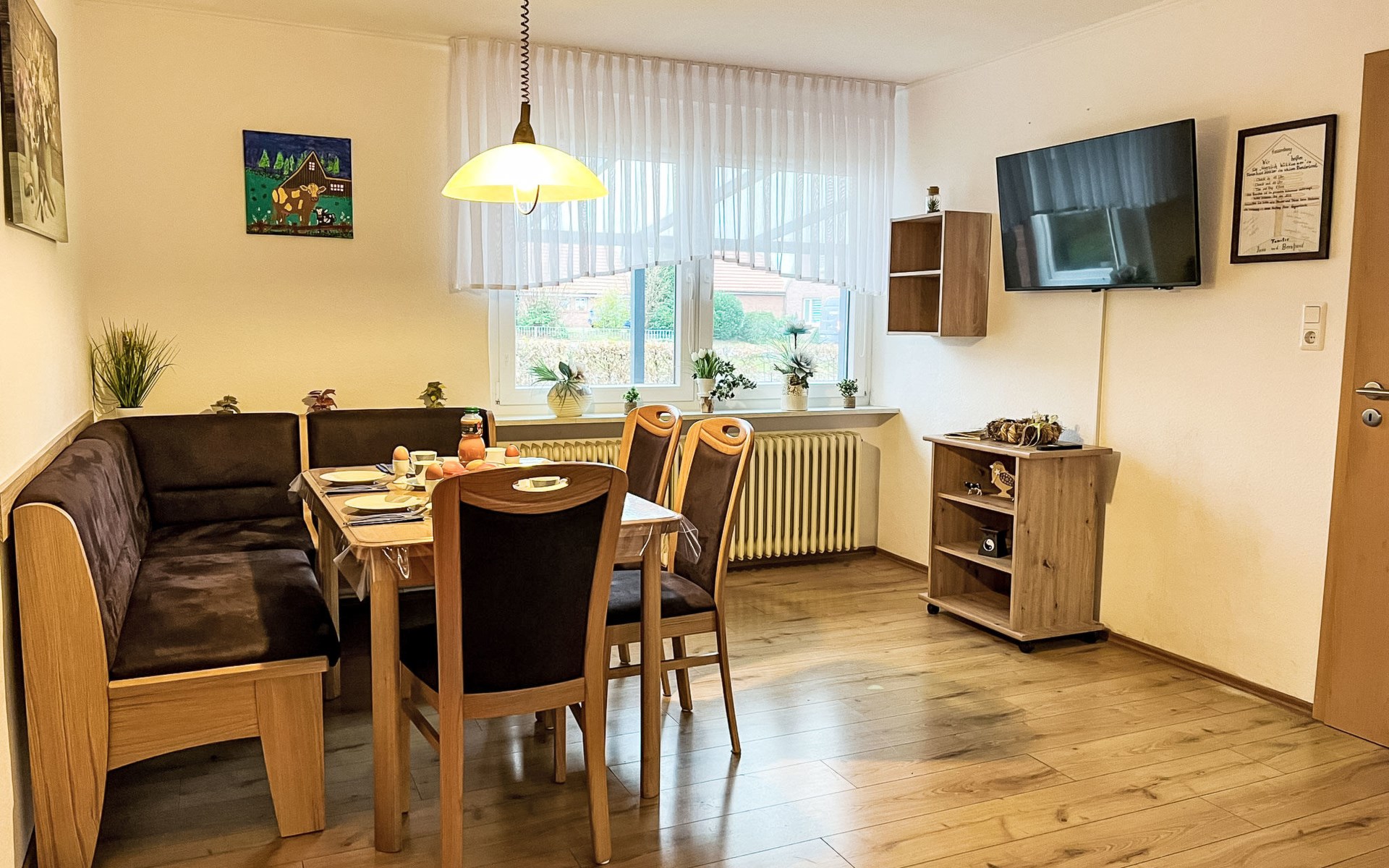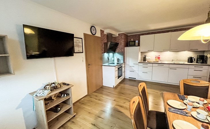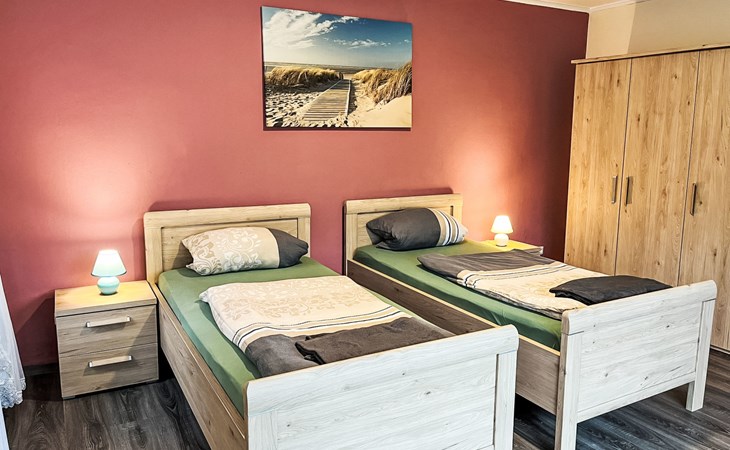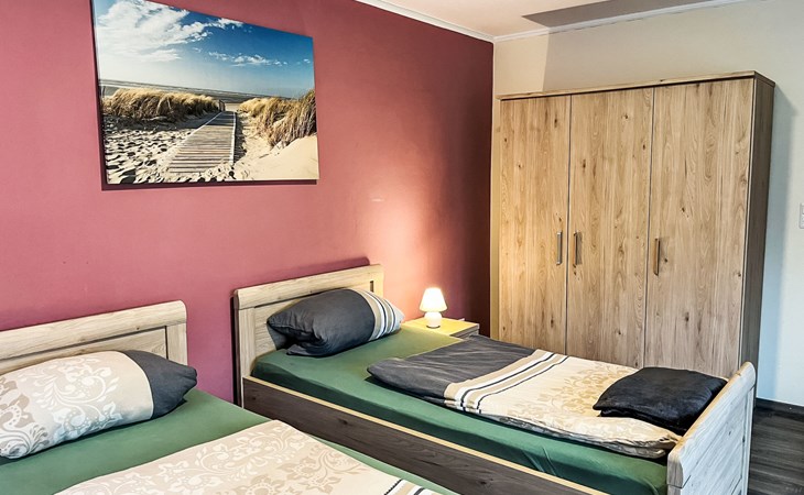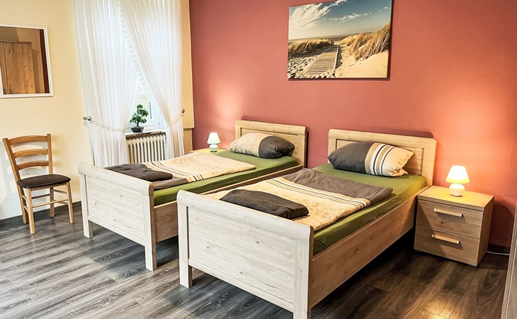 Farmhouse "Kettler". In the district of Tichelwarf, on the outskirts, 7.7 km from the centre of Weener, 18 km from the sea, on a main road. Private: large garden with lawn. In the house: storage room for bicycles, central heating system. Parking at the house. Shop 2 km, supermarket 4 km, restaurant 5 km, bakery 1.5 km, café 1.5 km, bus stop 200 m, railway station "Leer" 19 km, ferry 23 km, sandy beach "Norddeich" 80 km, outdoor swimming pool 6 km, indoor swimming pool 10 km, thermal baths "Thermen Bad Nieuweschans" 10 km, bathing lake "Holtgaste" 10 km. Please note: car recommended. On the estate animal husbandry.