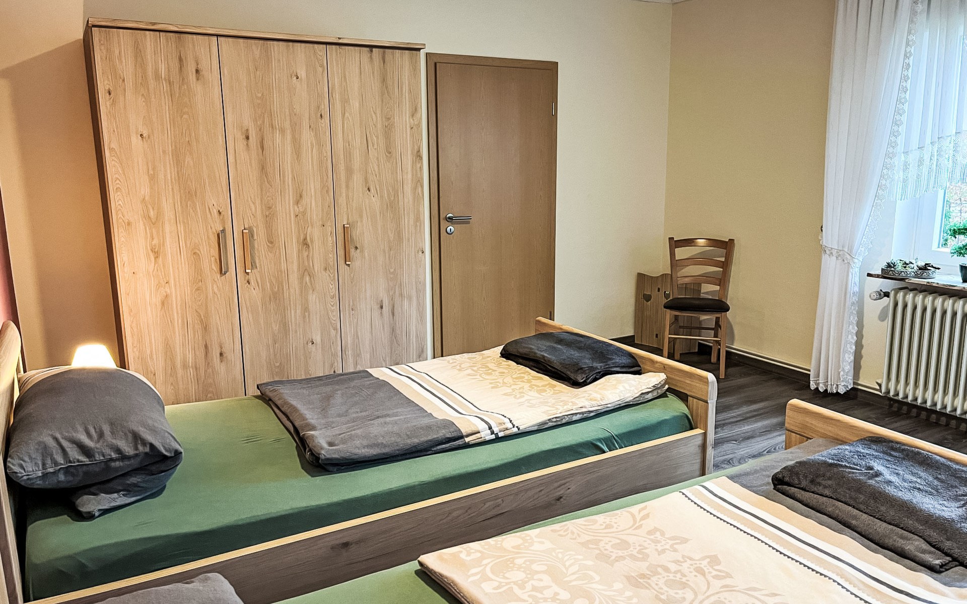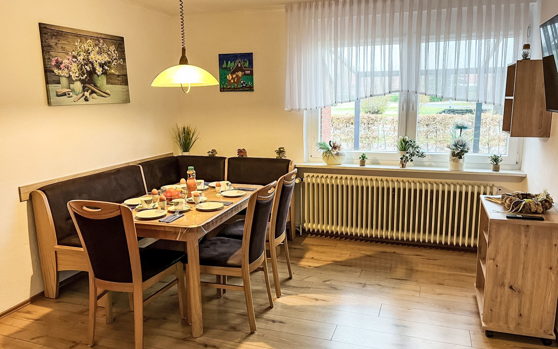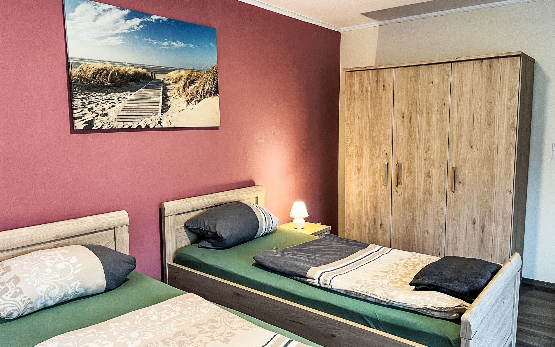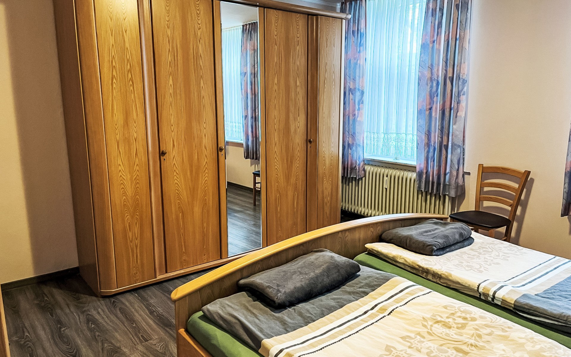 Farmhouse "Kettler". In the district of Tichelwarf, on the outskirts, 7.7 km from the centre of Weener, 18 km from the sea, on a main road. Private: large garden with lawn. In the house: storage room for bicycles, central heating system. Parking at the house. Shop 2 km, supermarket 4 km, restaurant 5 km, bakery 1.5 km, café 1.5 km, bus stop 200 m, railway station "Leer" 19 km, ferry 23 km, sandy beach "Norddeich" 80 km, outdoor swimming pool 6 km, indoor swimming pool 10 km, thermal baths "Thermen Bad Nieuweschans" 10 km, bathing lake "Holtgaste" 10 km. Please note: car recommended. On the estate animal husbandry.