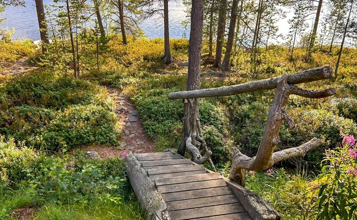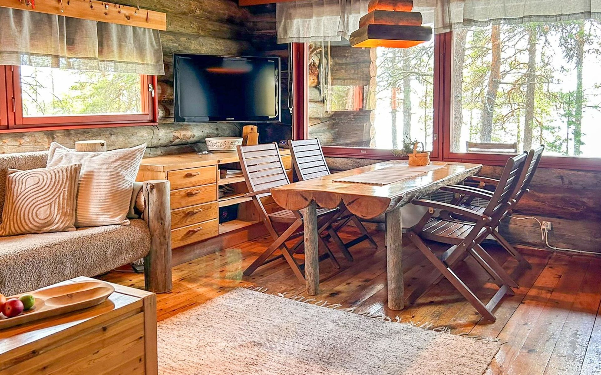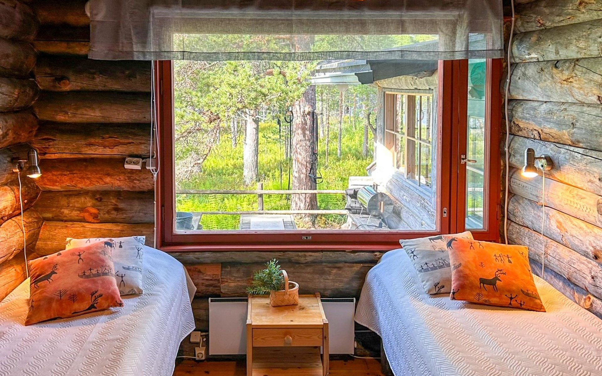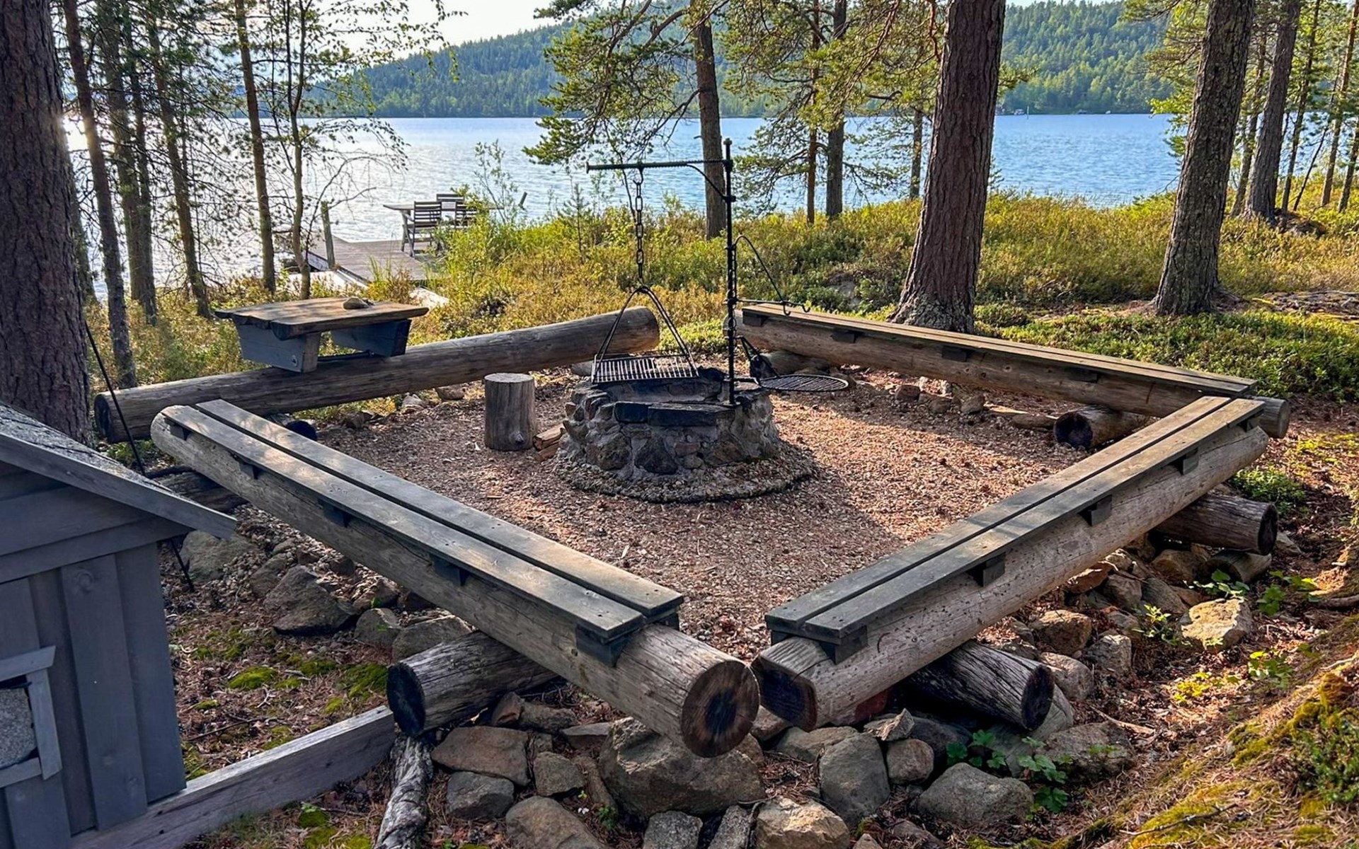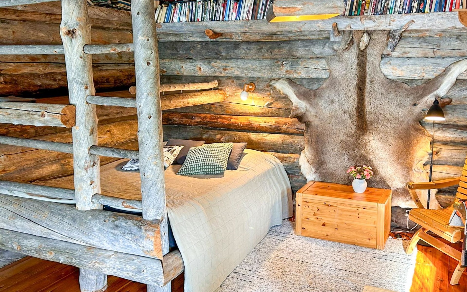Silverlog cottage, built in 1971, expanded later. Living room room with silverlog bunk bed (lower bed 160 cm wide, 80 cm upper bed), 2 bedrooms each with 2 beds, kitchen, sauna (wood-burning stove, heater tank, shower), dressing room with 1 bed, veranda, porch. Eco-toilet inside the cabin, in addition an outdoor toilet. Smoke oven and a fire place.