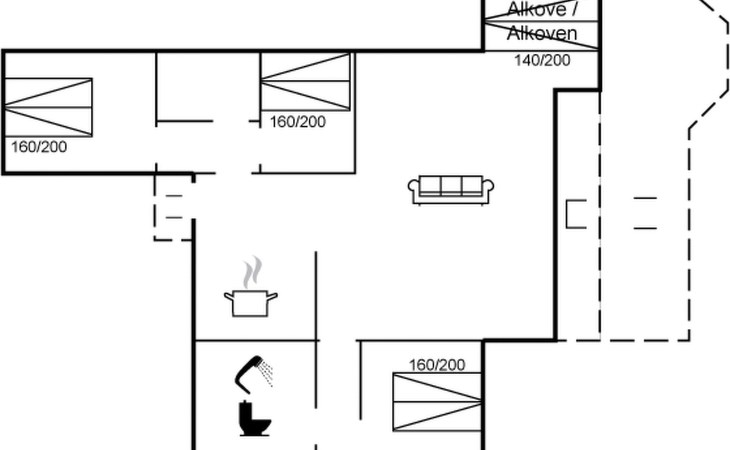 Single-family house, built in 1988. 200 m from the sea. Private: property 6'350 m2, well-kept garden. Terrace (13 m2). In the house: washing machine, tumble dryer. Grocery 700 m. Golf course 2 km. The owner does not accept any youth groups.