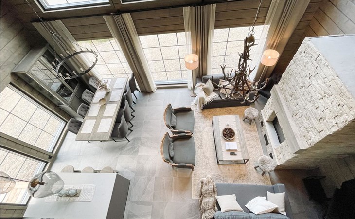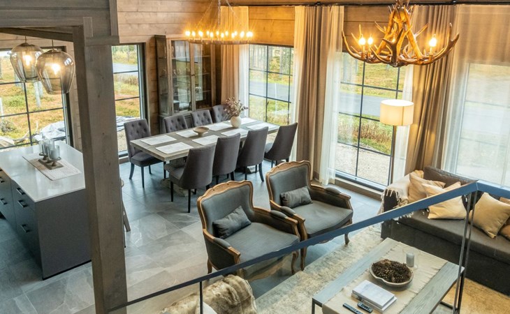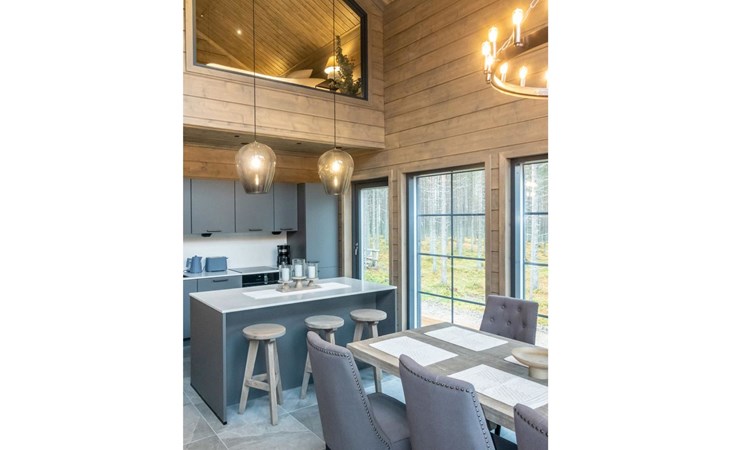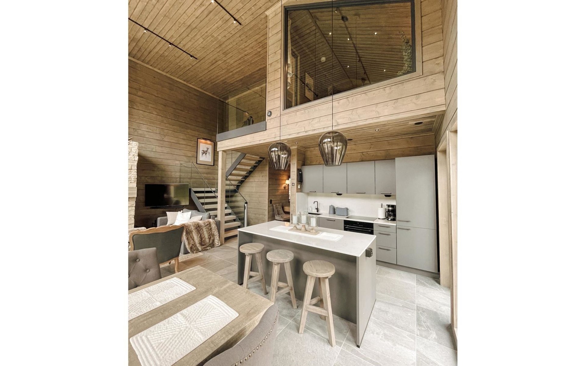 Facilities on two floors. On the first floor, spacious hall with plenty of space for cross-country skiing and downhill skiing equipment. Living room, dining room and kitchen are the heart of this villa. The kitchen is very well equipped, so you can cook and even bake for a larger group.