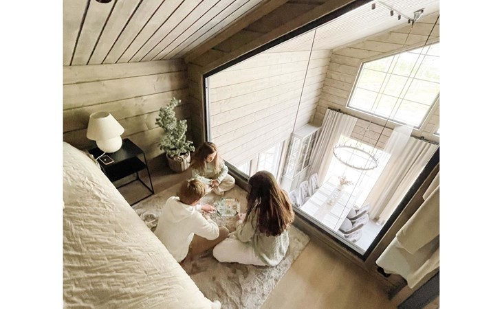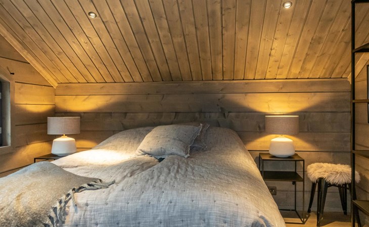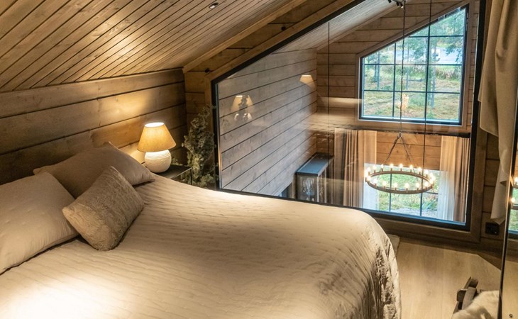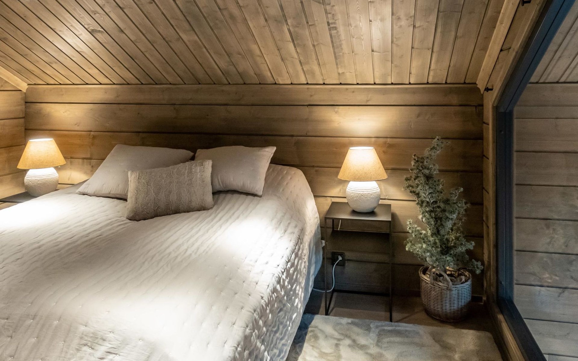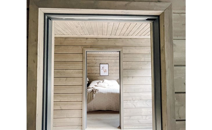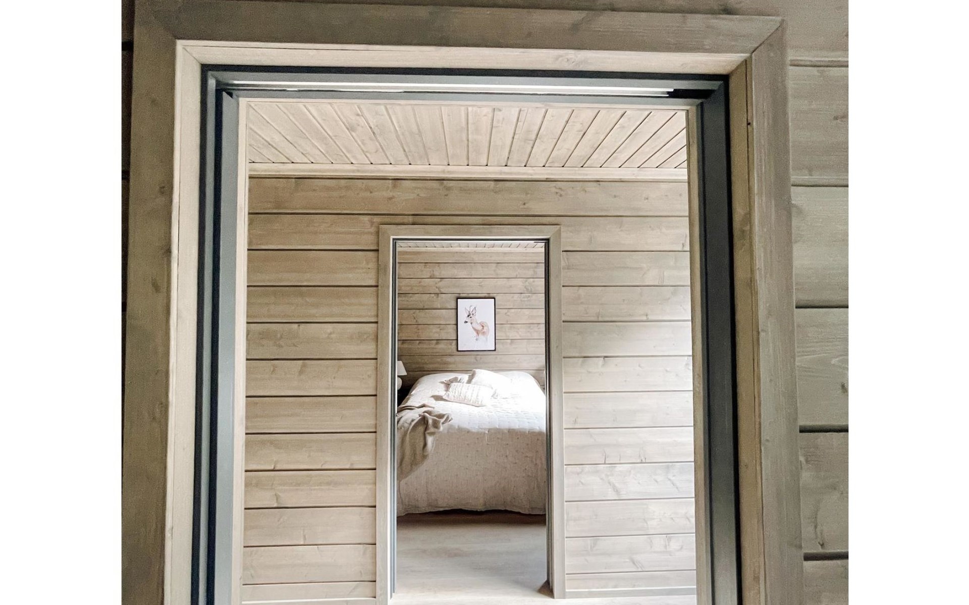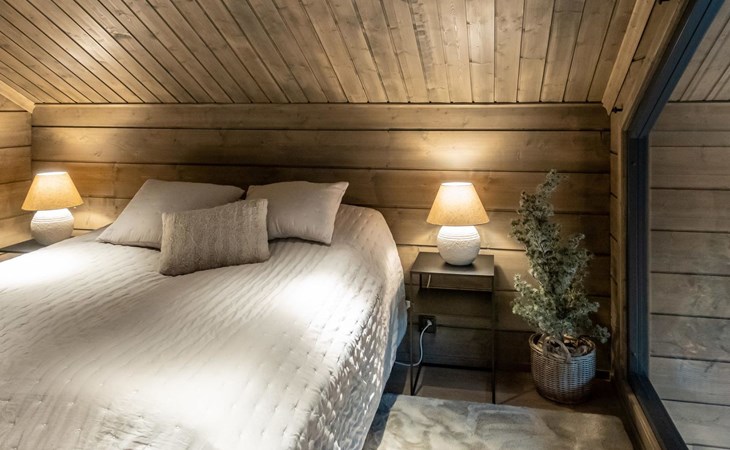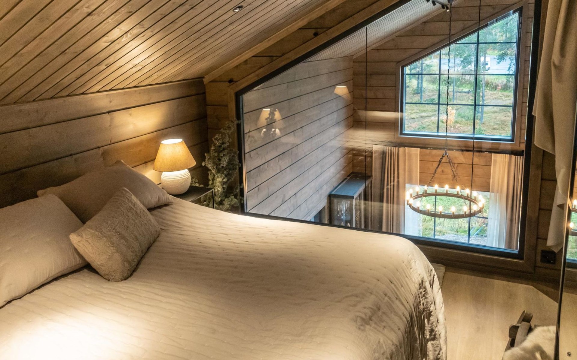 On the ground floor, there is one of Willa's four bedrooms. The bedroom has high-quality 180 cm wide bed and very high-quality pillows and blankets. The room is wonderfully bright thanks to the floor-to-ceiling window, but at night the bedroom can be darkened with a blackout curtain.