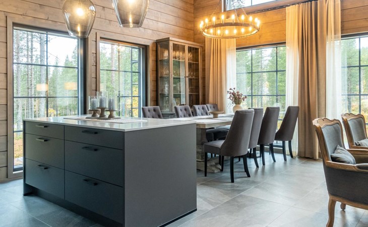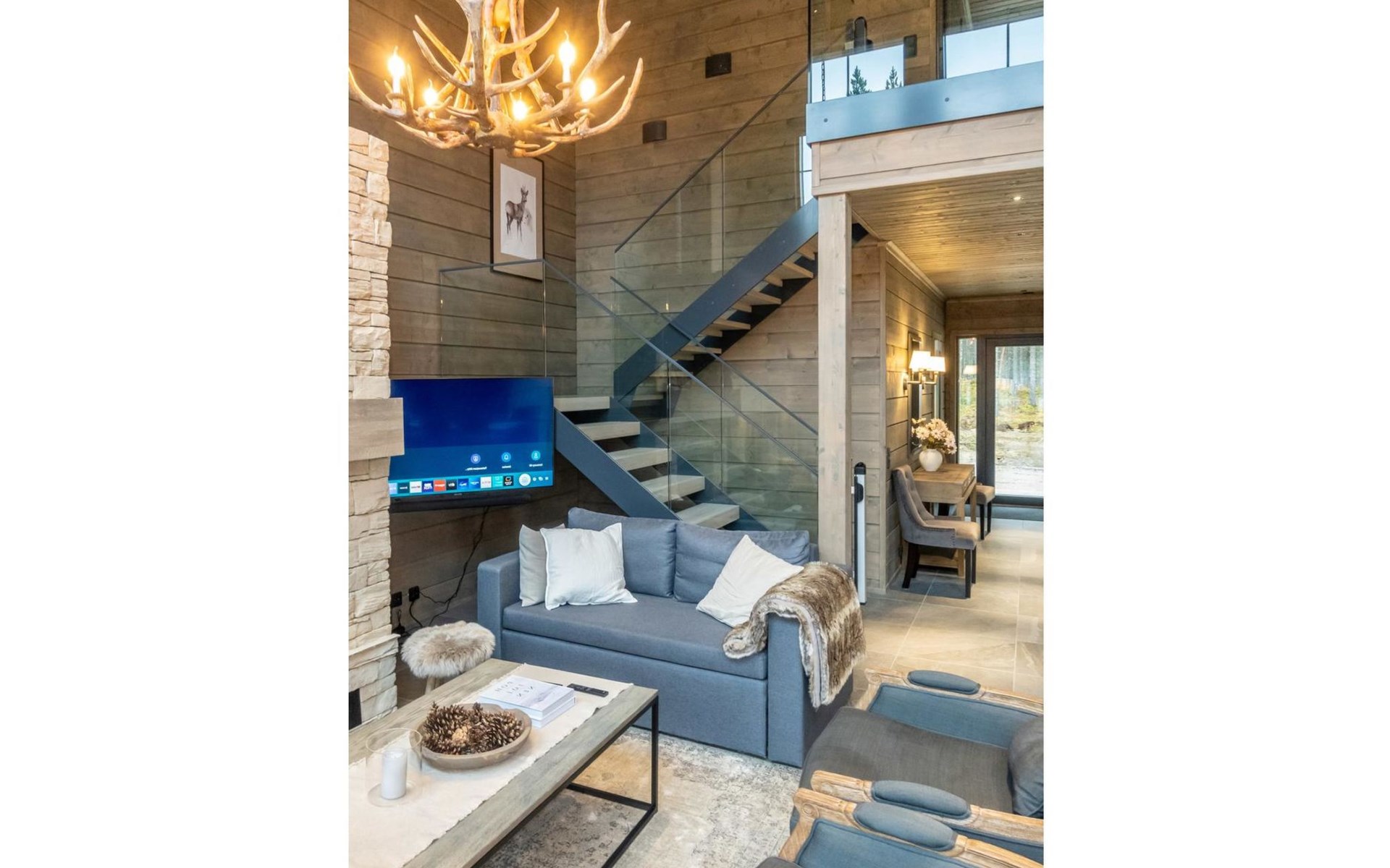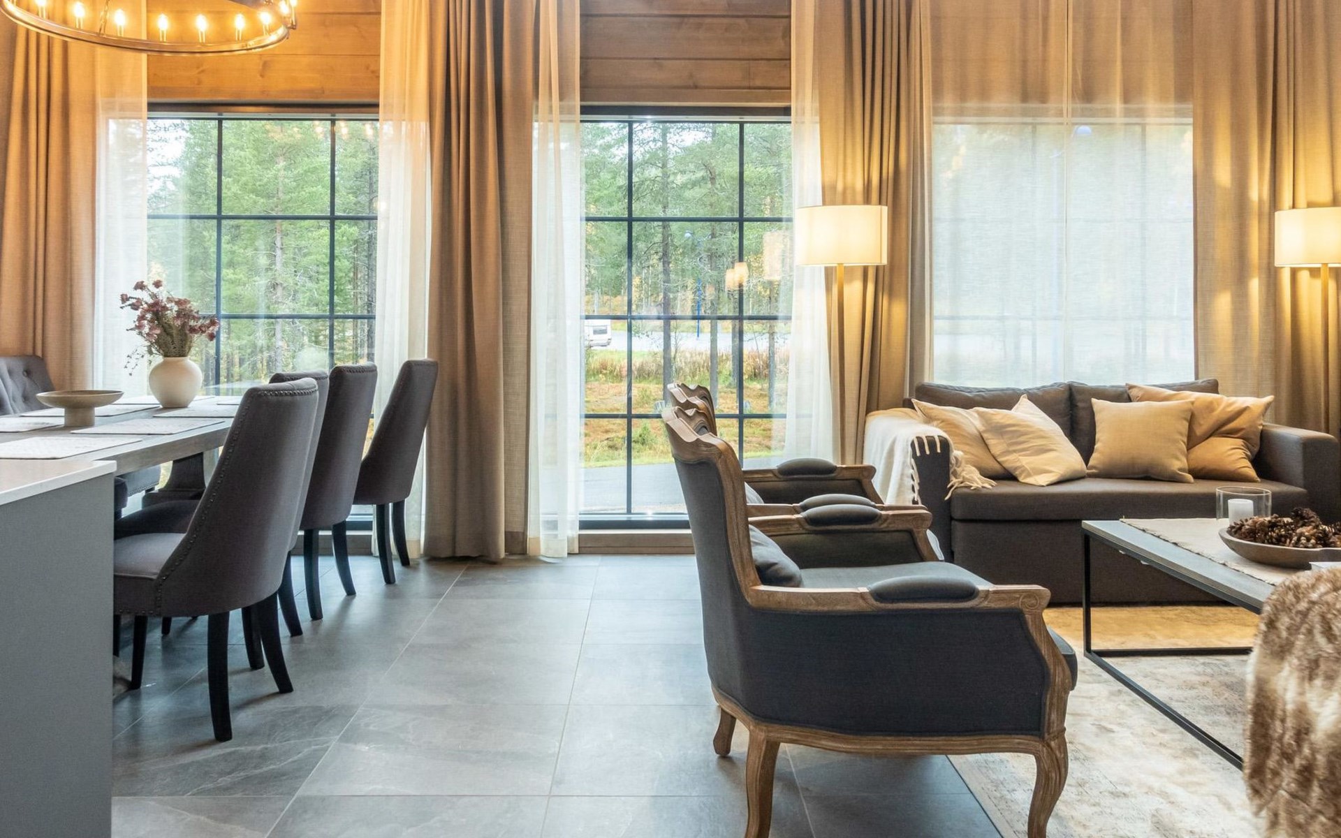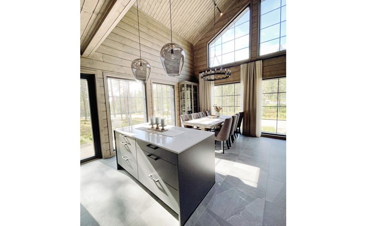 You can enjoy of Levi's fell view from the dining area, as well as from the living room thanks to large windows. From the windows, you can see the gondola and West Point ski lifts and Santa's cabin while you are enjoying of your morning coffee, for example. The bus stop is right near the cabin and the Levi Skibus operates every half hour between the ski slopes and the center of Levi.
