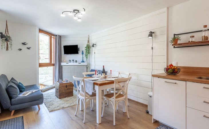 Tignes Lavachet: Apartment block "Savoy (Lavachet)", 4 storeys. In the district of Le Lavachet, in a quiet, sunny position in the residential district, excellent location: right in the centre but still quiet, 1.2 km from the lake, 150 m from the skiing area, south-west facing position. In the house: lift, storage room for skis, central heating system. Supermarket, shopping centre, restaurant, bar, bakery, café 100 m, 5 minute walk to the centre, bus stop 200 m, park "Stationnement Tignes Lavachet" 180 m, indoor swimming pool 1.5 km. Walking paths from the house 50 m, chair lift, skisport facilities 150 m, slopes 200 m, ski rental 50 m, ski bus stop 150 m, ski school, ski-kindergarten 800 m. Nearby attractions: Ski Quick 40 m. Well-known ski regions can easily be reached: Tignes & Val d'Isère 150 m. Please note: ski bus (free of charge).