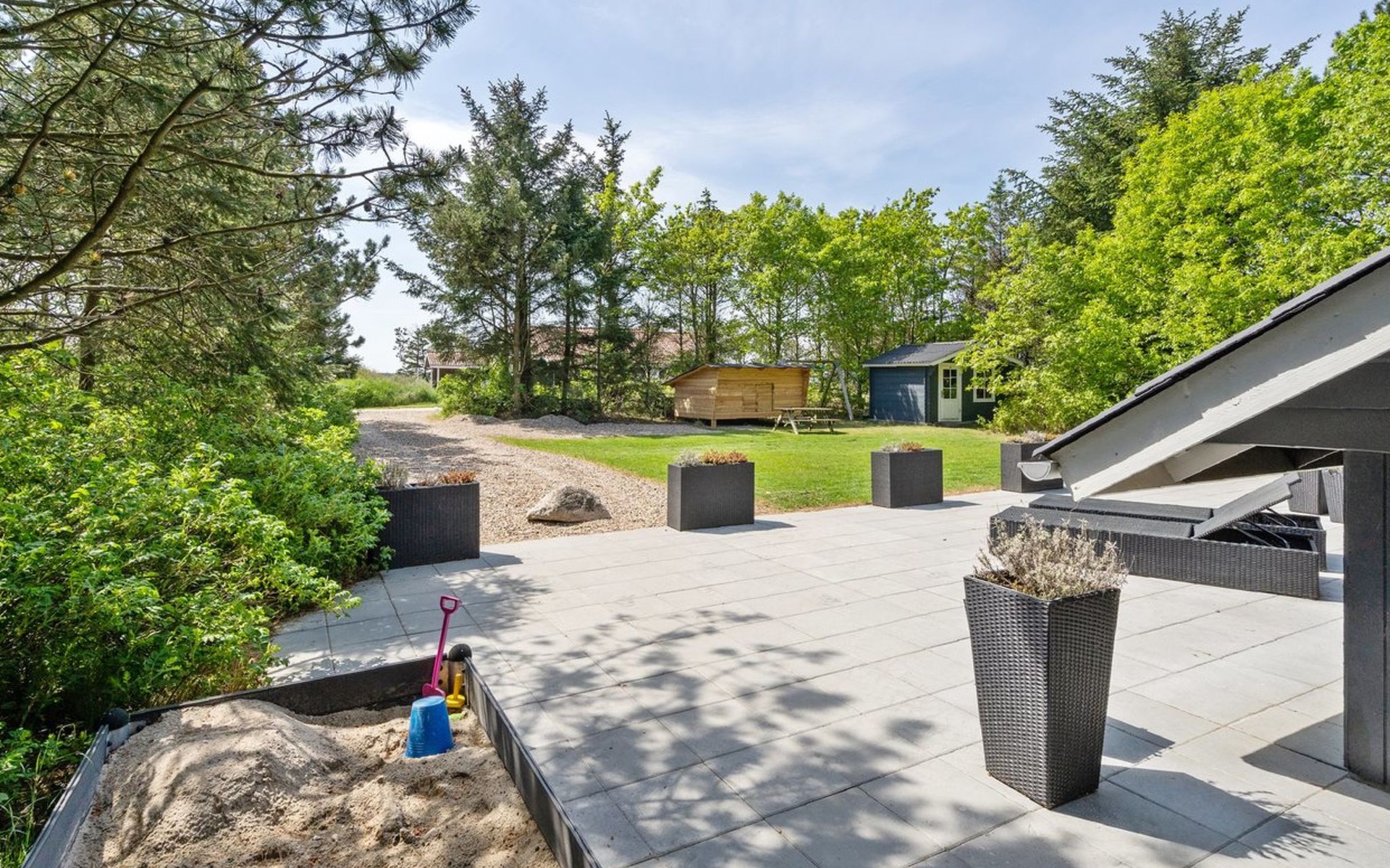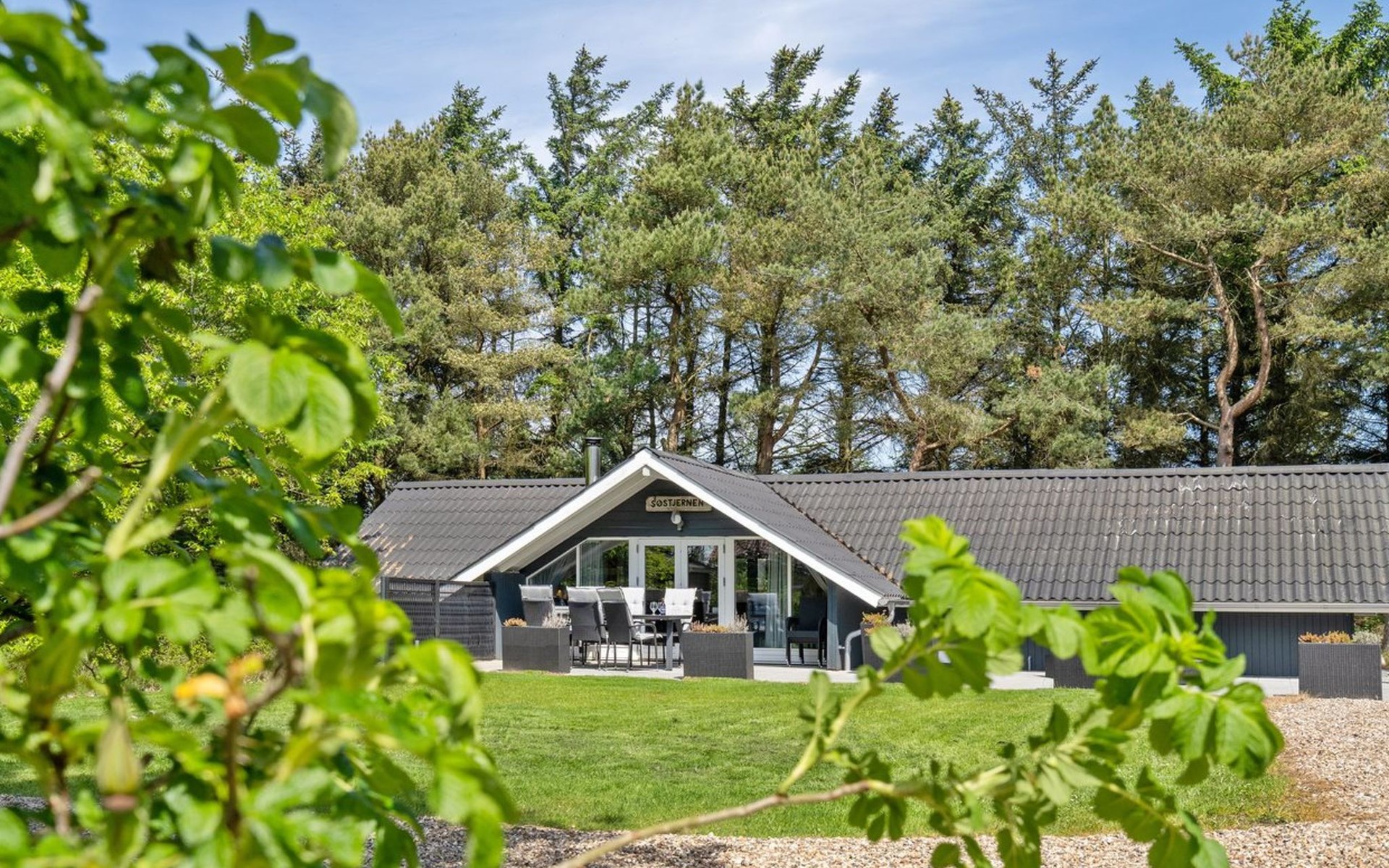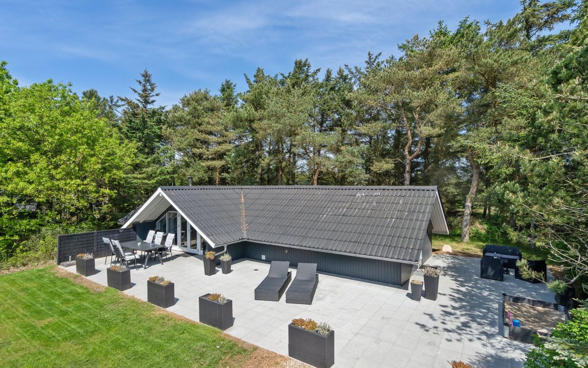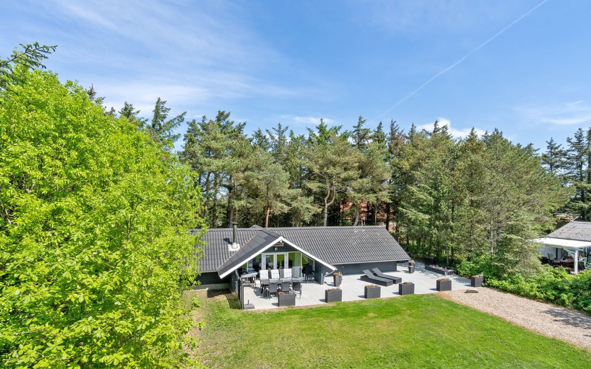 Single-family house, built in 1976. 900 m from the sea. Private: natural state property 1'420 m2. Terrace (110 m2), children's playground (swing). In the house: washing machine, tumble dryer. Parking at the house. E-charging station. Grocery 1 km. The owner does not accept any youth groups.
