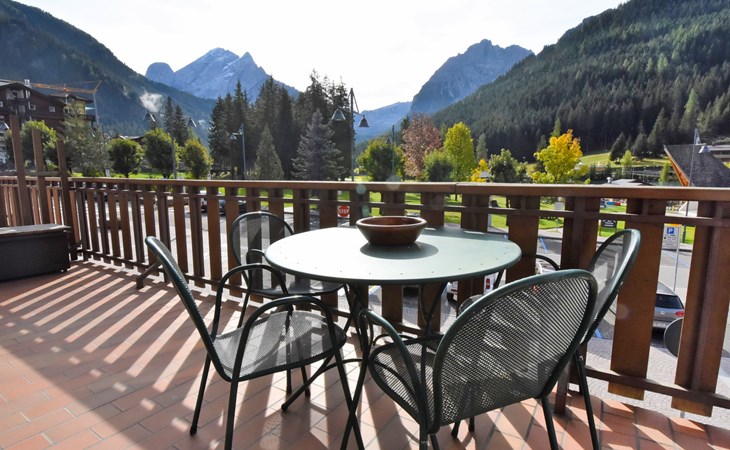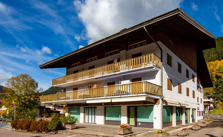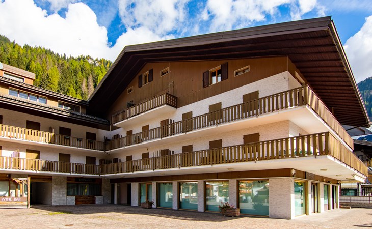 Comfortable apartment house "Condominio al Parco", 4 storeys. In the centre of Canazei, in a sunny position, excellent location: right in the centre but still quiet, 600 m from the skiing area. In the house: lift, central heating system, heating available only from 01.Dec. - 01.May.. Motor access to the house. Public parking on the road extra. Shop, grocery 500 m, supermarket 200 m, restaurant 50 m, bar 10 m, café 100 m, bus stop "ski bus" 50 m. Chair lift, ski rental 500 m, ski school 500 m, children's playground 100 m. Nearby attractions: Lago di Carezza 24 km, Sella Ronda 500 m. Please note: lift to 3rd floor.