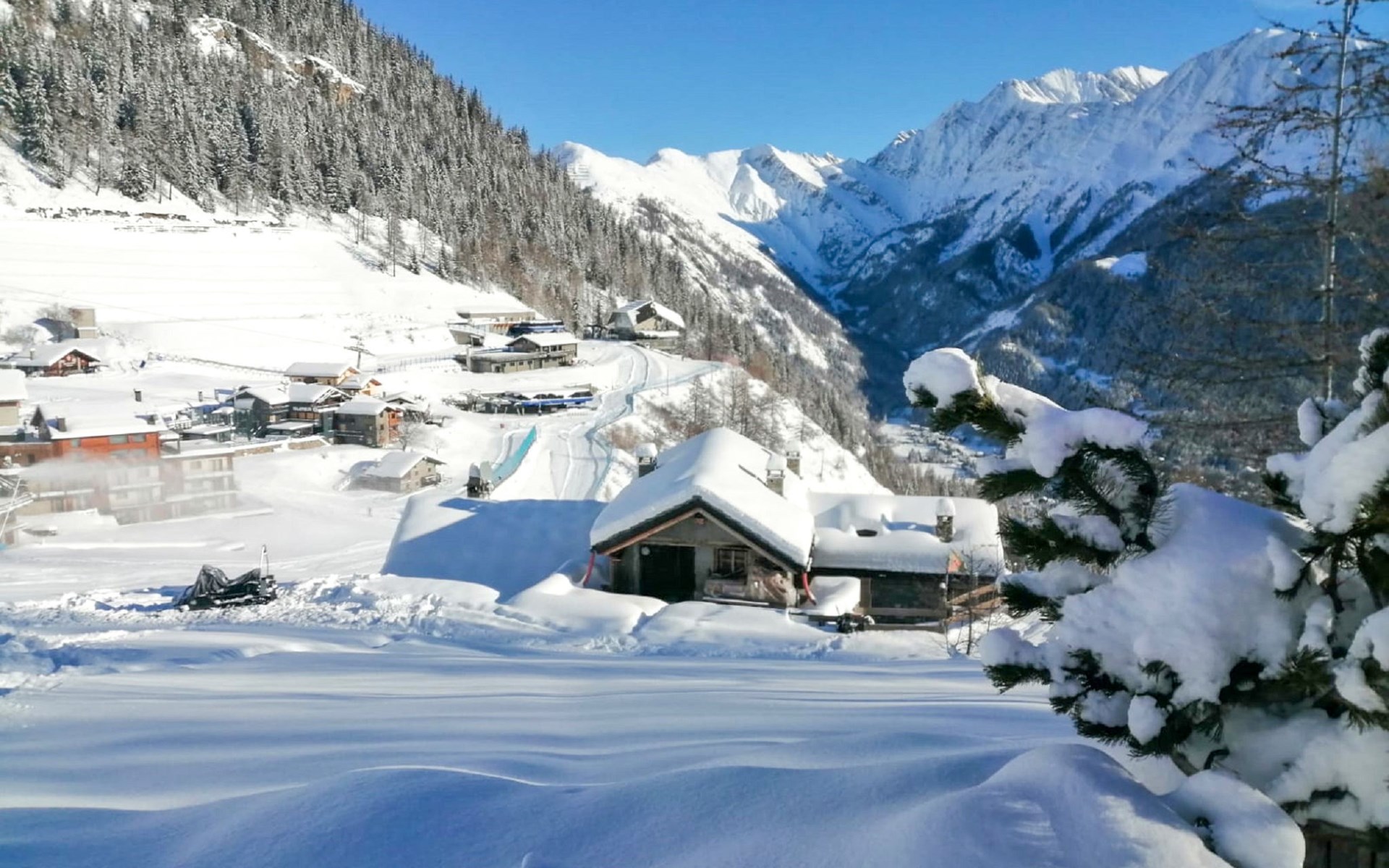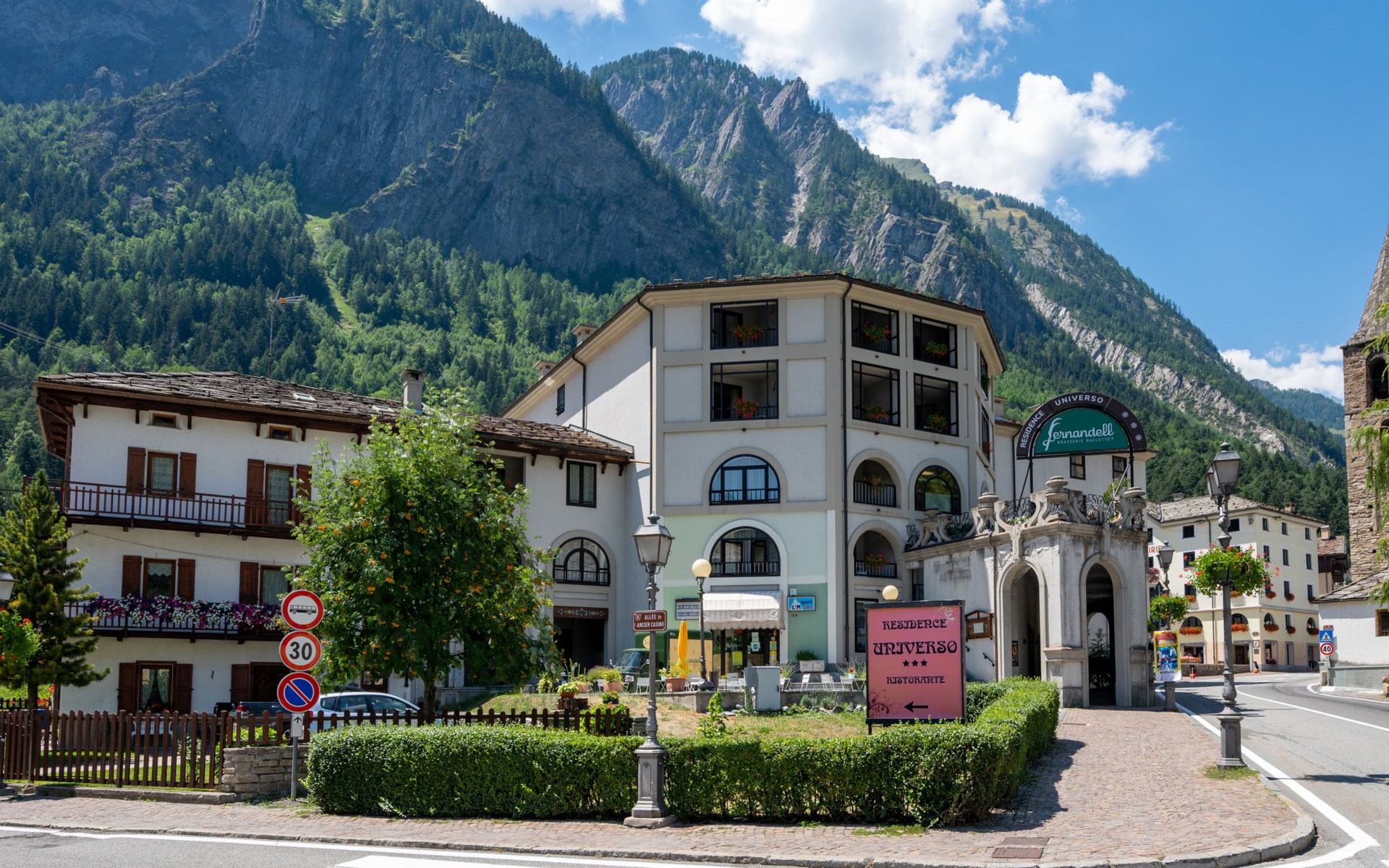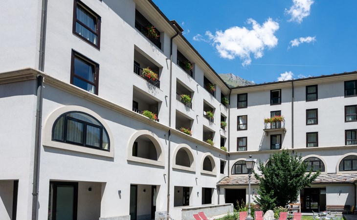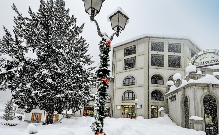 Beautiful residence "Universo", 1'000 m a.s.l.. In the centre of Pre Saint Didier, 6 km from the centre of Courmayeur. In the house: reception, WiFi, sauna (extra). Lift, storage room for skis, central heating system, heating available only from 15.Oct. - 15.Apr.. Bus stop "Pré Saint Didier" 500 m, indoor swimming pool 50 m, thermal baths "QC Terme" 100 m. Cable car 4.9 km, gondola lift 6.3 km, ski bus stop 50 m. Nearby attractions: Sky Way Monte Bianco 8.3 km. Well-known ski regions can easily be reached: Courmayeur 6 km, La Thuile 10 km. Please note: the photograph shows a typical example. Additional accommodations can be booked.