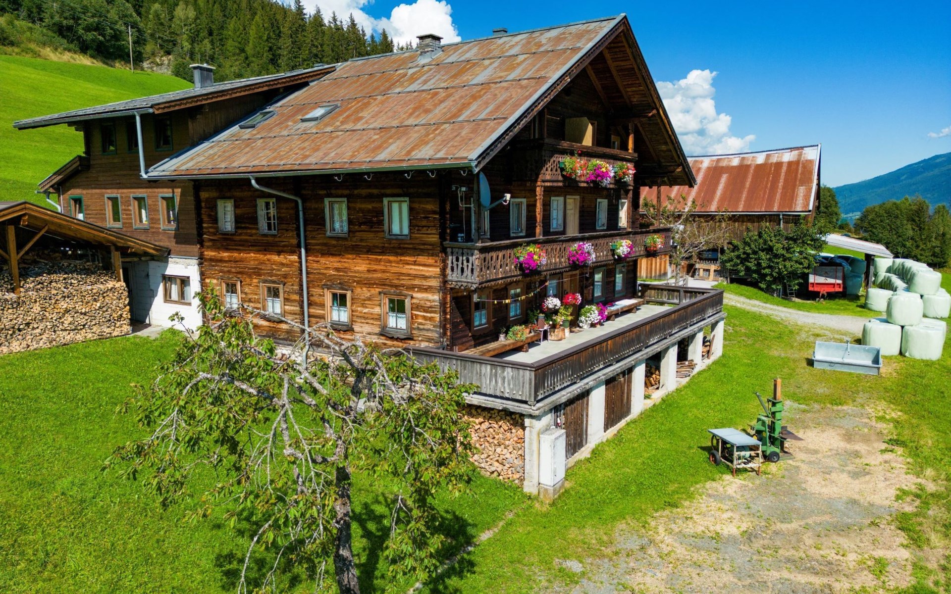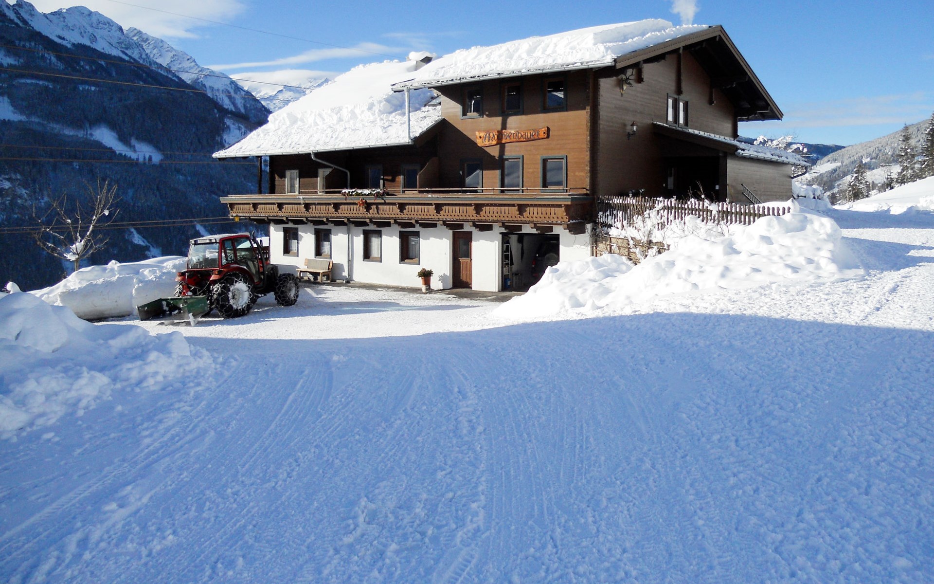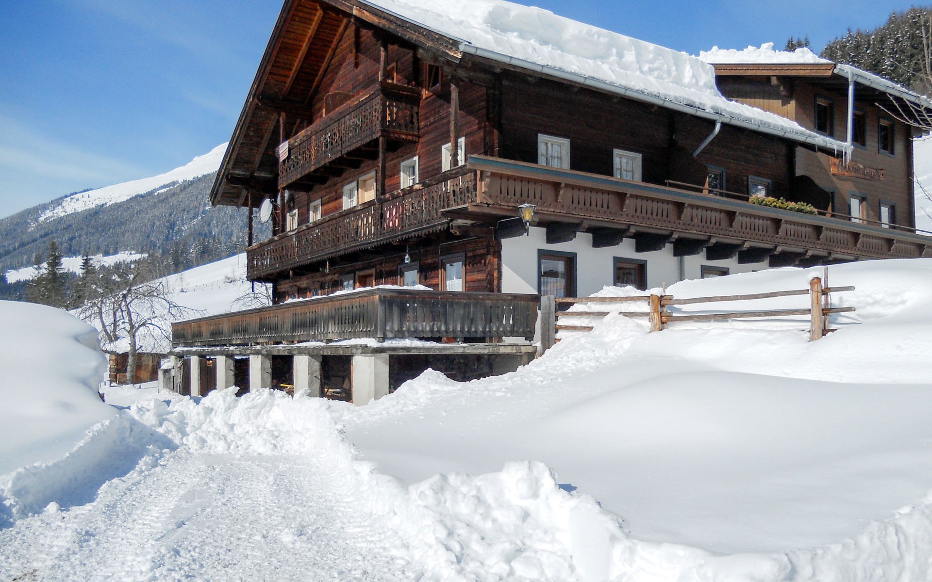 House "Moosen", 1'200 m a.s.l., detached. 3 km from the centre of Neukirchen, 11 km from the centre of Bramberg, 50 km from the centre of Kitzbühel, on a slope, 4 km from the lake. For shared use: natural state property 13'000 m2. Table tennis. In the house: table tennis, storage room for bicycles, storage room for skis, ski boot dryer. Bread roll service. Parking at the house. Shop 3 km, bus stop "Neukirchen" 2.7 km, railway station "Rosenthal" 5.3 km, bathing lake 4 km. Mountain railway 3 km, ski lift 3 km, ski bus stop 80 m, cross country ski track 3 km. On the estate animal husbandry. Please note: the owner lives in the same residence. Valley station for access to the Wildkogel hiking world or ski arena 3 km. Wood-coal central heating. Note: The landlord allows in the period 24.04.-23.10. bringing a pet.