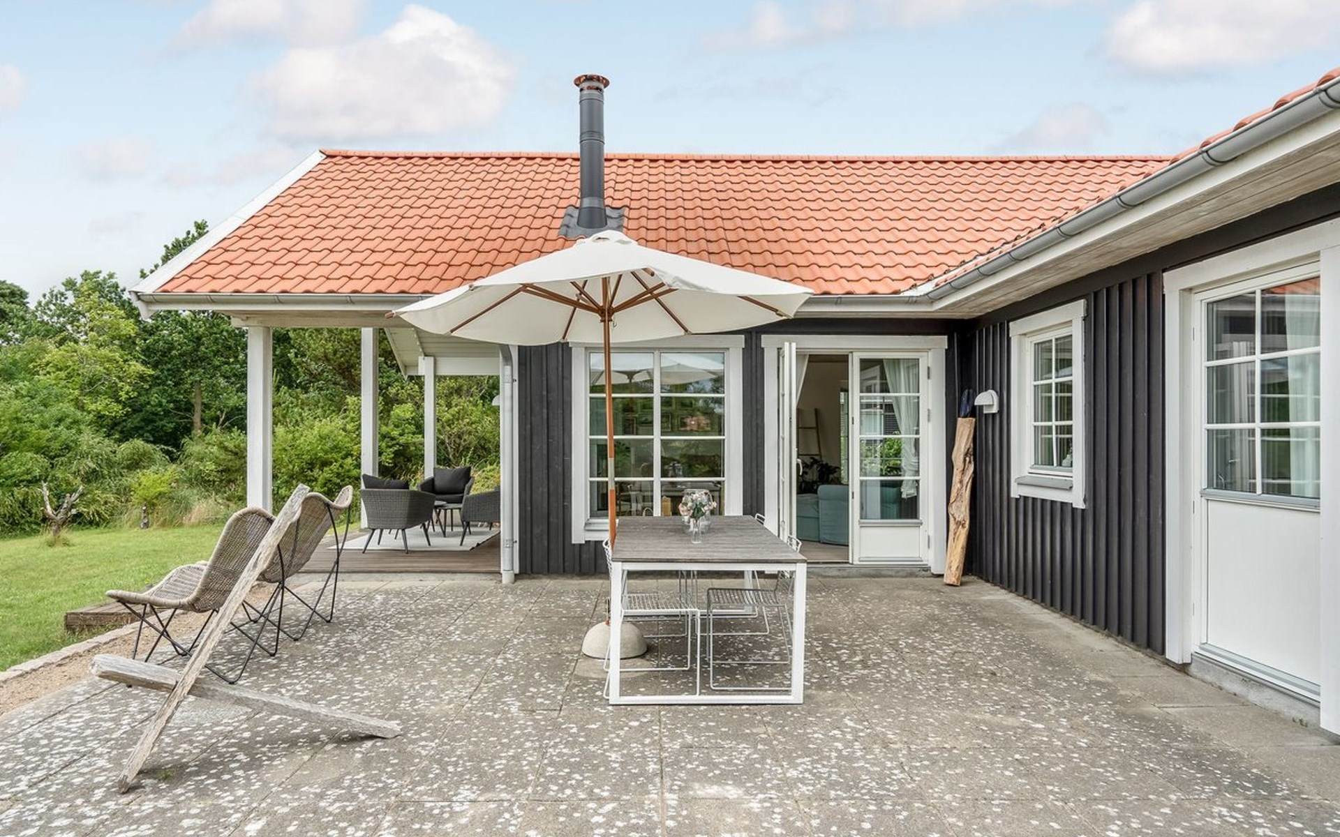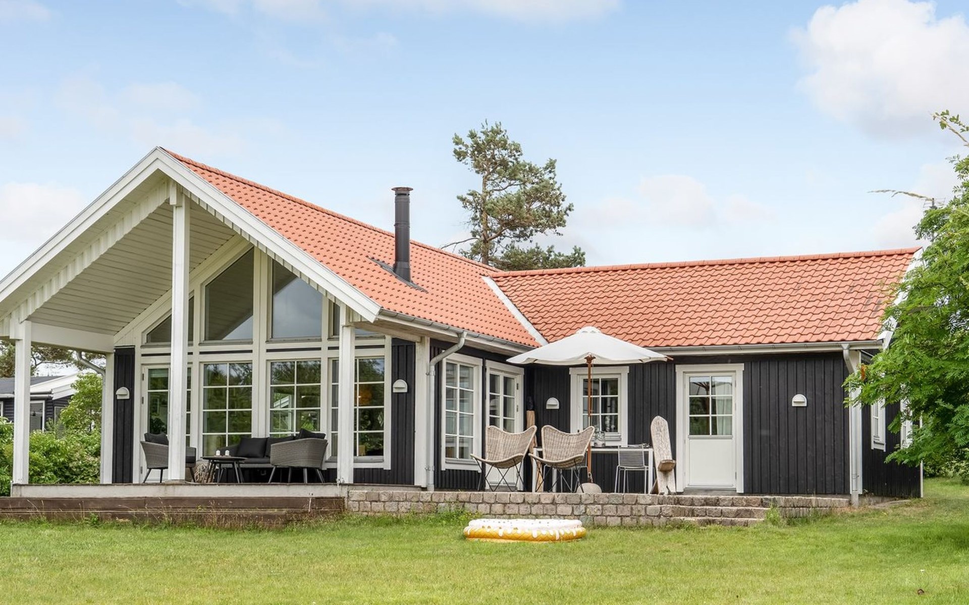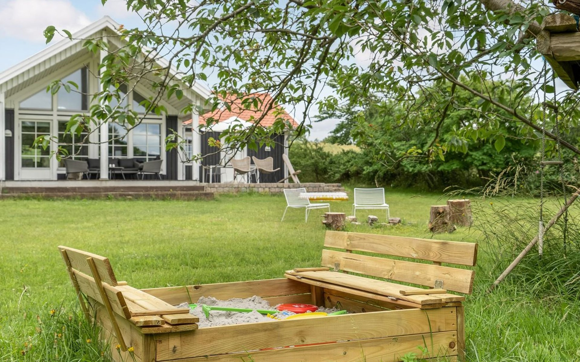 Single-family house, built in 2007. Private: property 1'156 m2, well-kept garden. Terrace (16 m2), barbecue, children's playground (swing). In the house: washing machine. Parking at the house. Grocery 2 km. Golf course 3.5 km. The owner does not accept any youth groups.