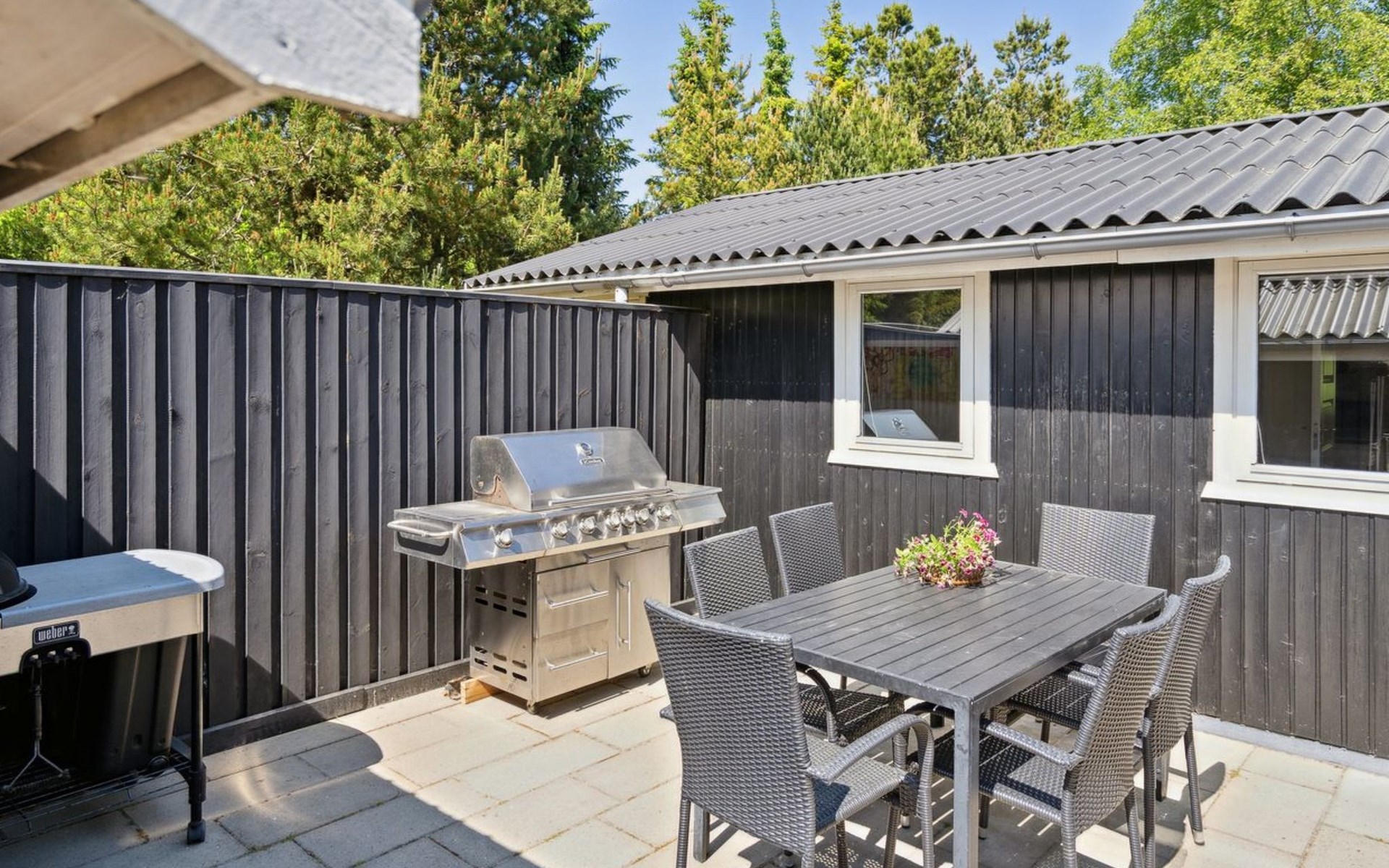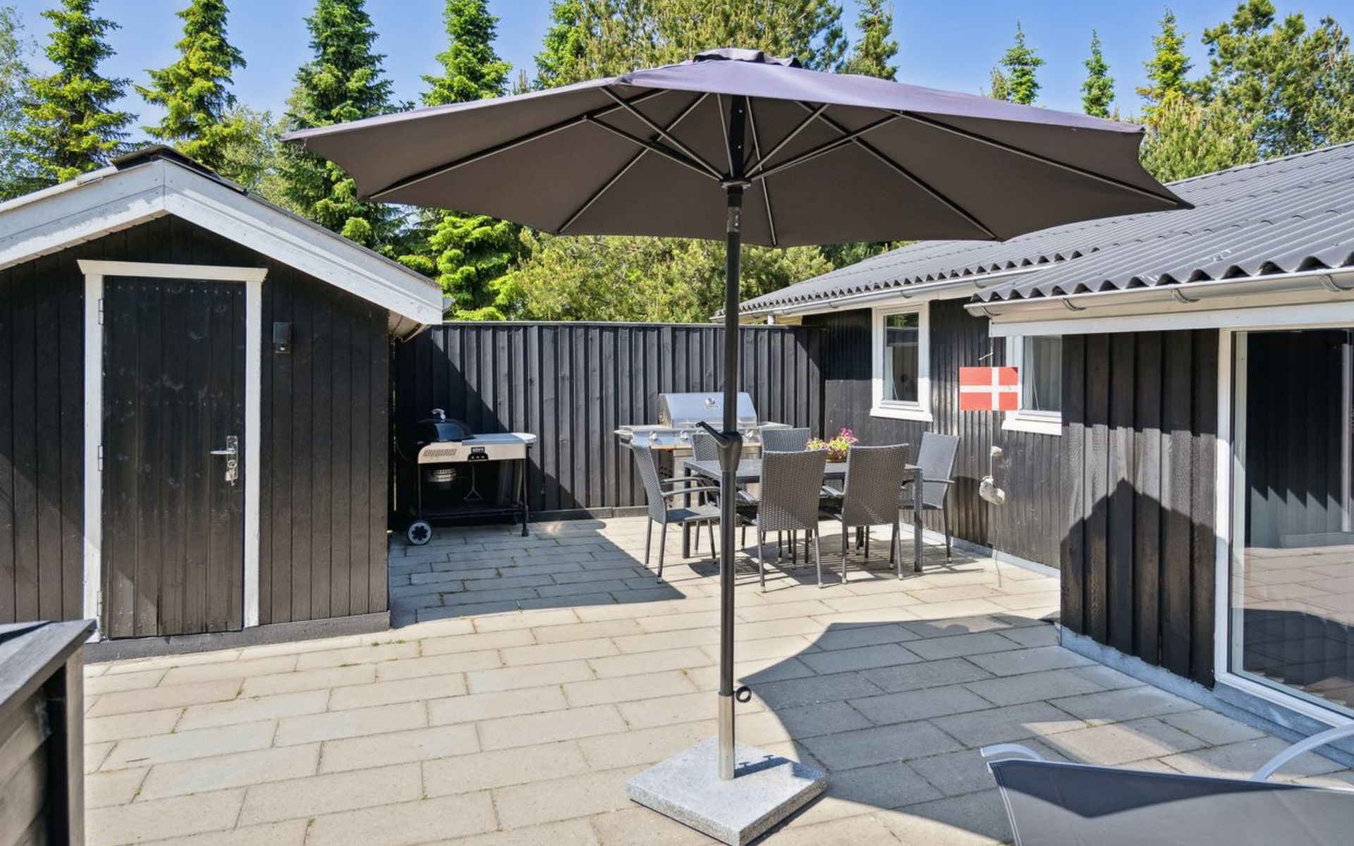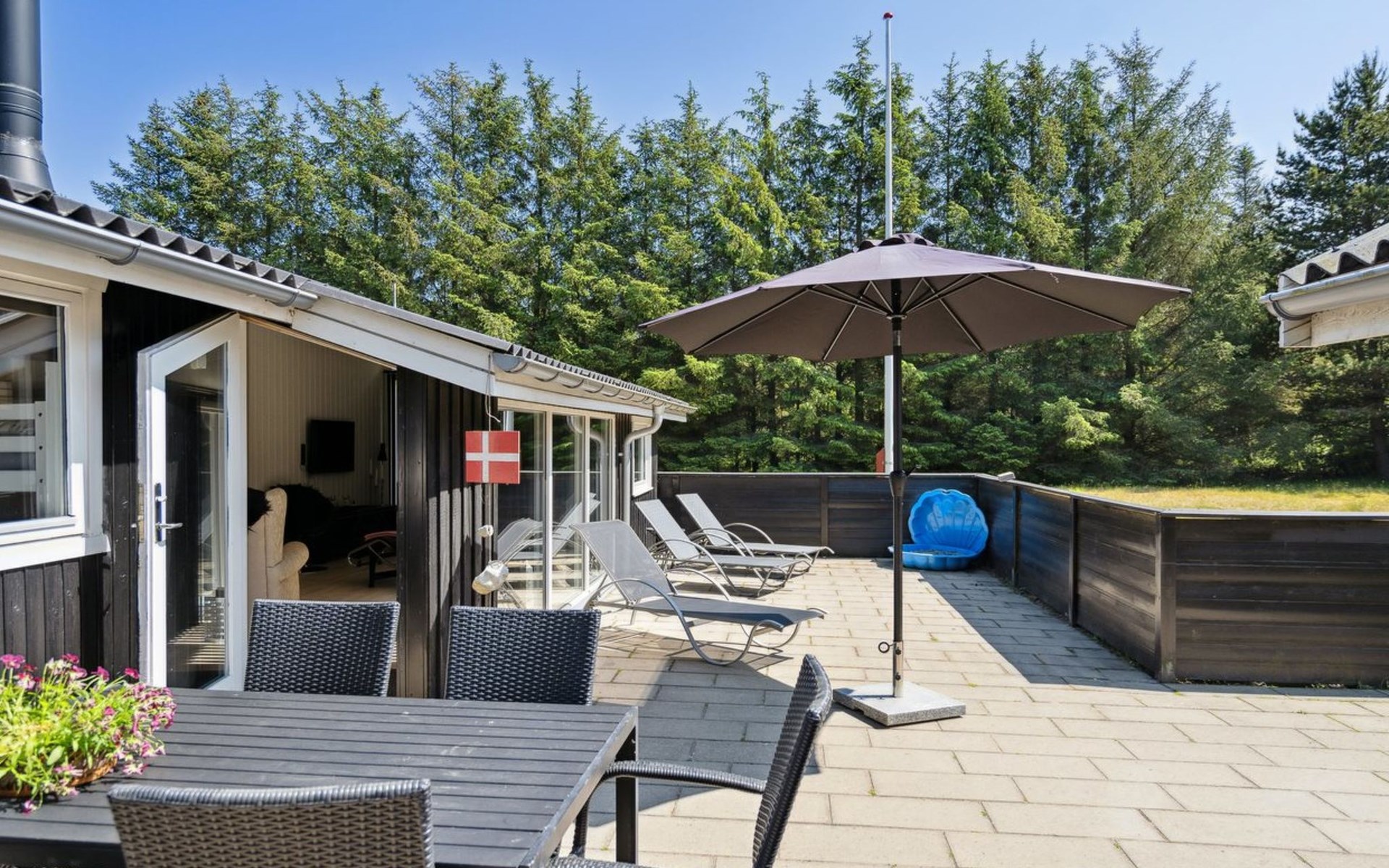 Single-family house, built in 1970. 250 m from the sea. Private: natural state property 2'550 m2. Terrace (50 m2), children's playground (swing). In the house: washing machine. Parking at the house. Grocery 600 m. The owner does not accept any youth groups.