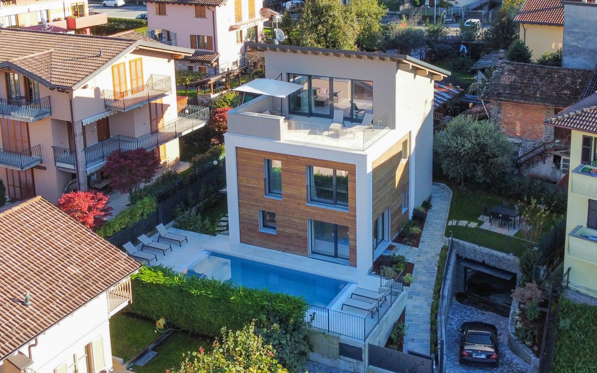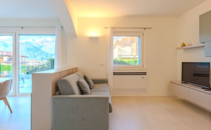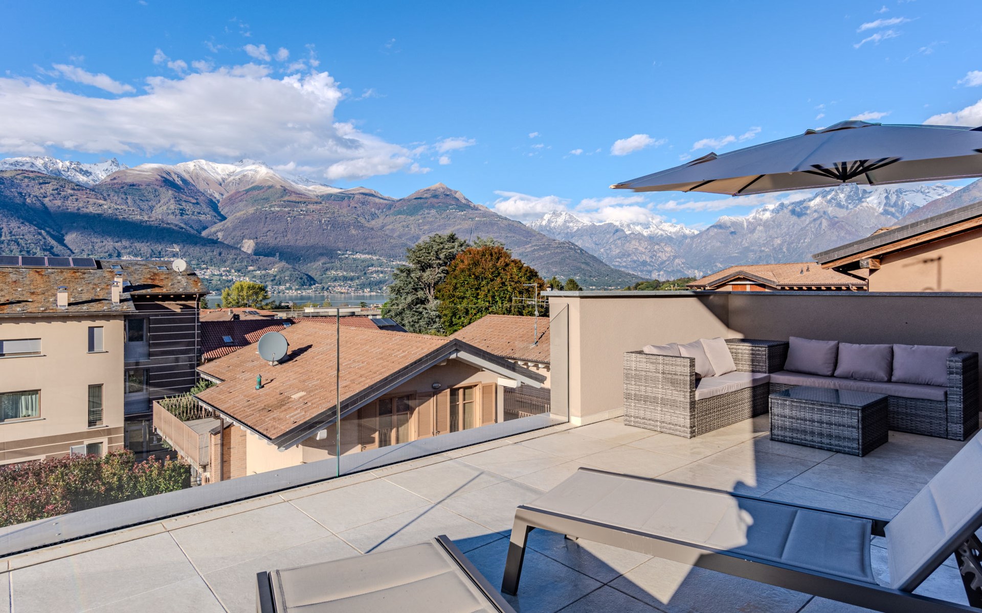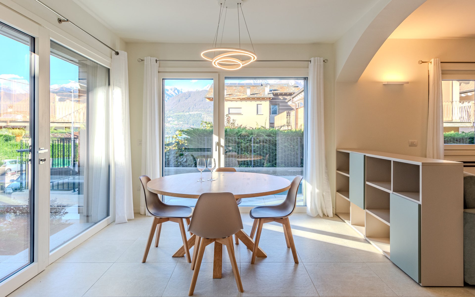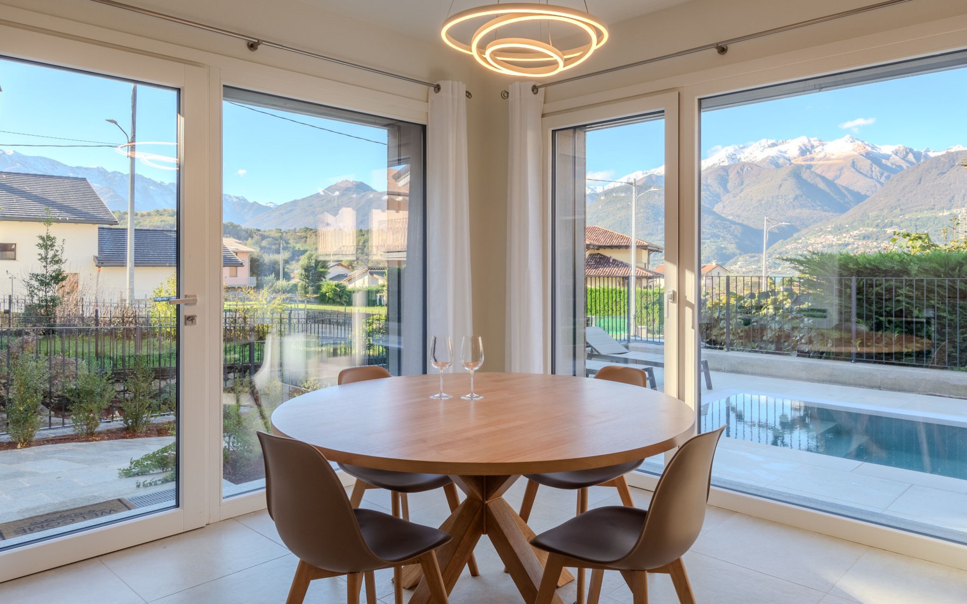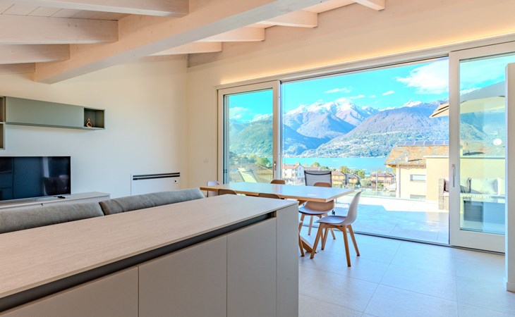 Large, modern house "Uliveto", 3 storeys, built in 2023. 650 m from the centre of Colico, 38 km from the centre of Lecco, 69 km from the centre of Como, in a central, elevated position, 700 m from the lake. Private: property 300 m2 (fenced) with lawn, swimming pool angular (3 x 8 m, depth 140 cm, seasonal availability: 01.Apr. - 30.Oct.). Outdoor shower, pool maintenance by the owner/gardener. In the house: storage room for bicycles. Linen change (suppl. charge extra). Room cleaning on request (extra). Parking (for 3 cars) on the premises, single garage. Supermarket 1.5 km, restaurant 450 m, bar 500 m, bakery, pedestrian zone 600 m, bus stop 900 m, railway station "Colico" 1 km, ferry 600 m, grass beach "Lido di Colico" 700 m. Golf course (18 hole) 37 km, surf school 1.5 km, riding stable 3.4 km, children's playground 1.1 km. Nearby attractions: Forte Montecchio Nord, Abbazia di Piona, Torri di Fontanedo. Well-known ski regions can easily be reached: Madesimo, Livigno. Well-known lakes can easily be reached: Lago di Mezzola. Hiking paths: Pian di Spagna, Monte Legnone. The owner does not accept any youth groups.